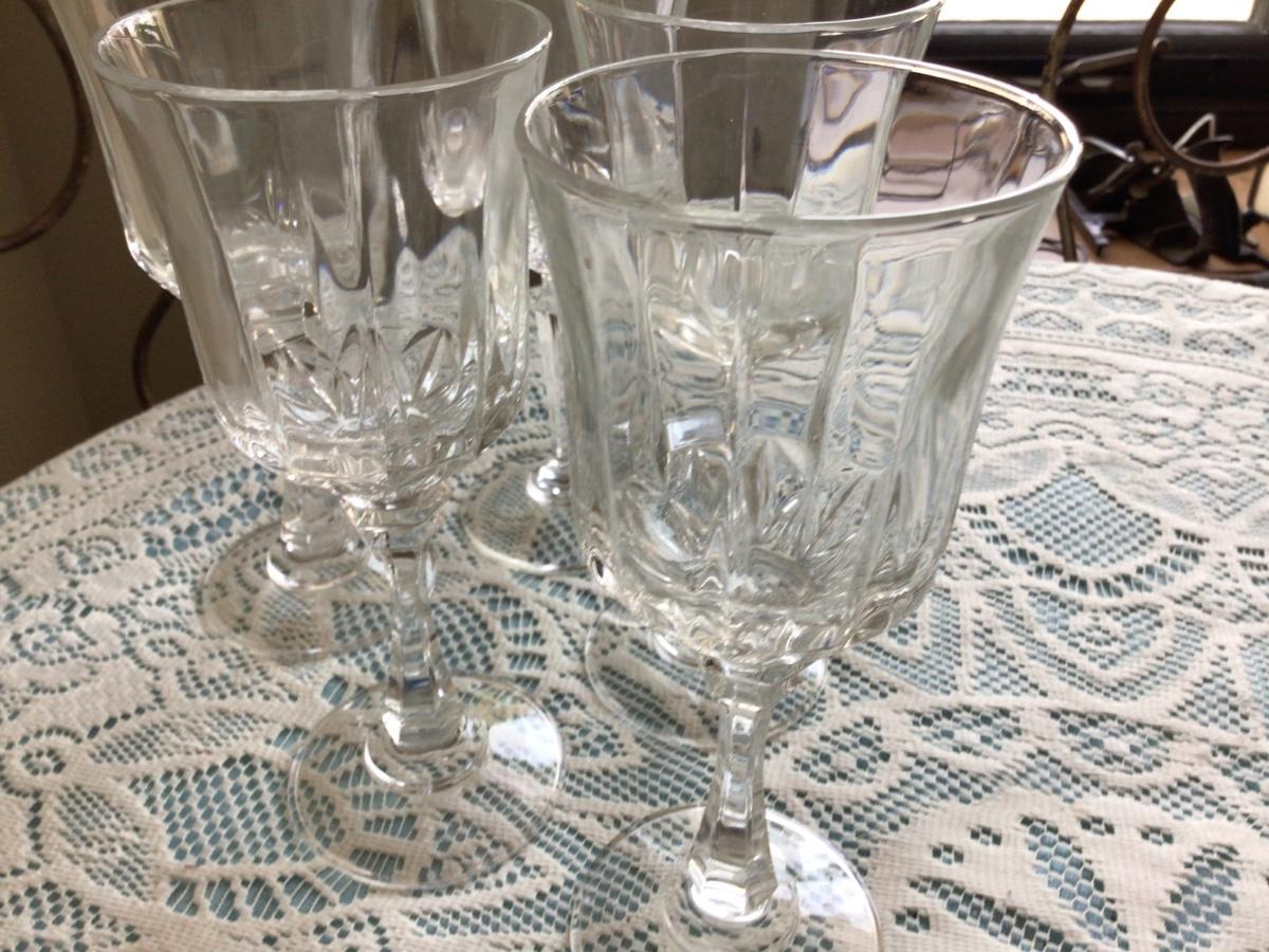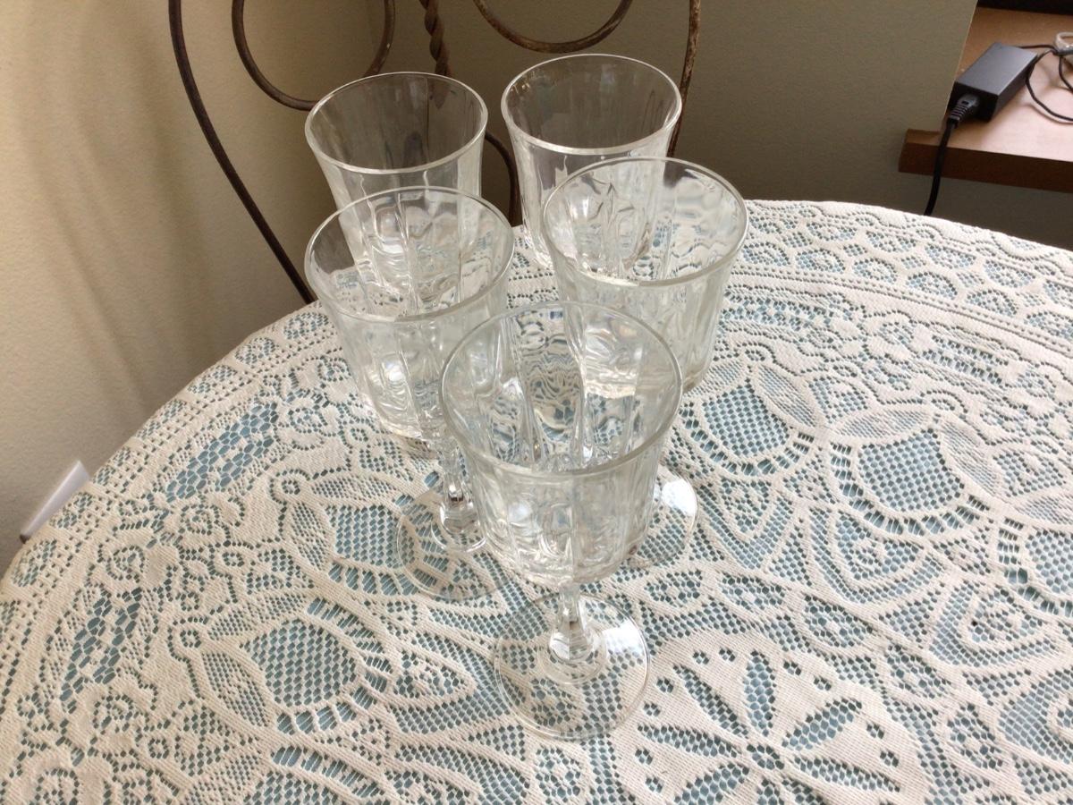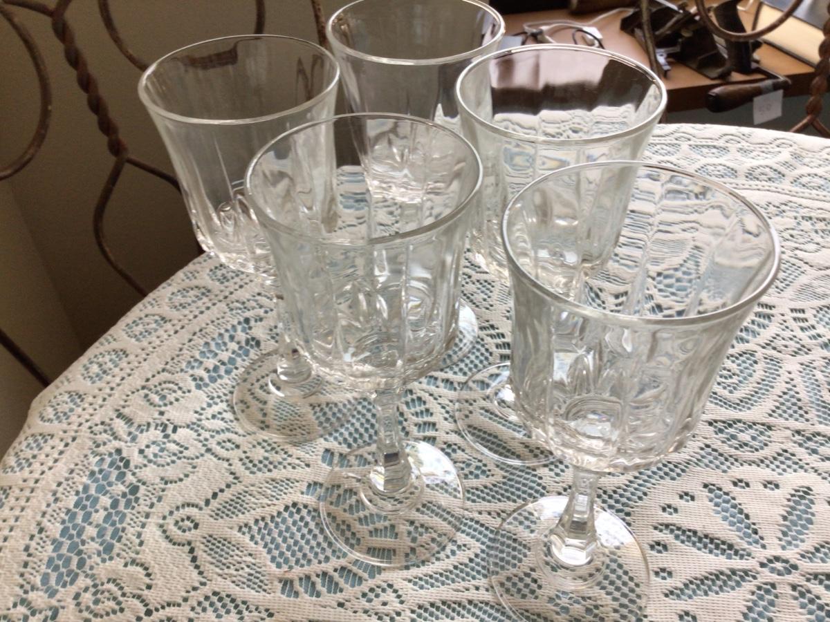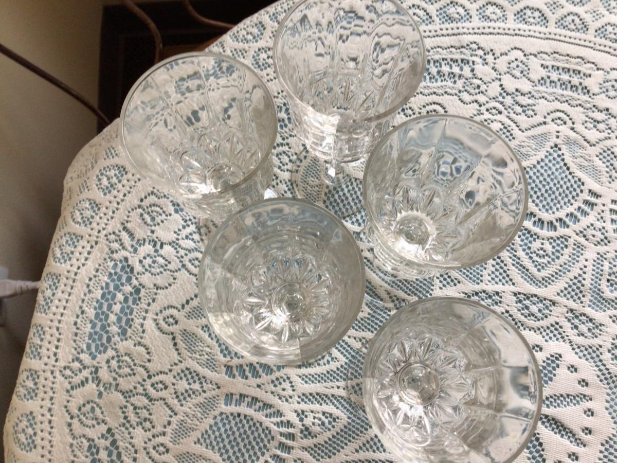 You get five lead crystal clear glass juice glasses. All in good condition no chips or cracks.