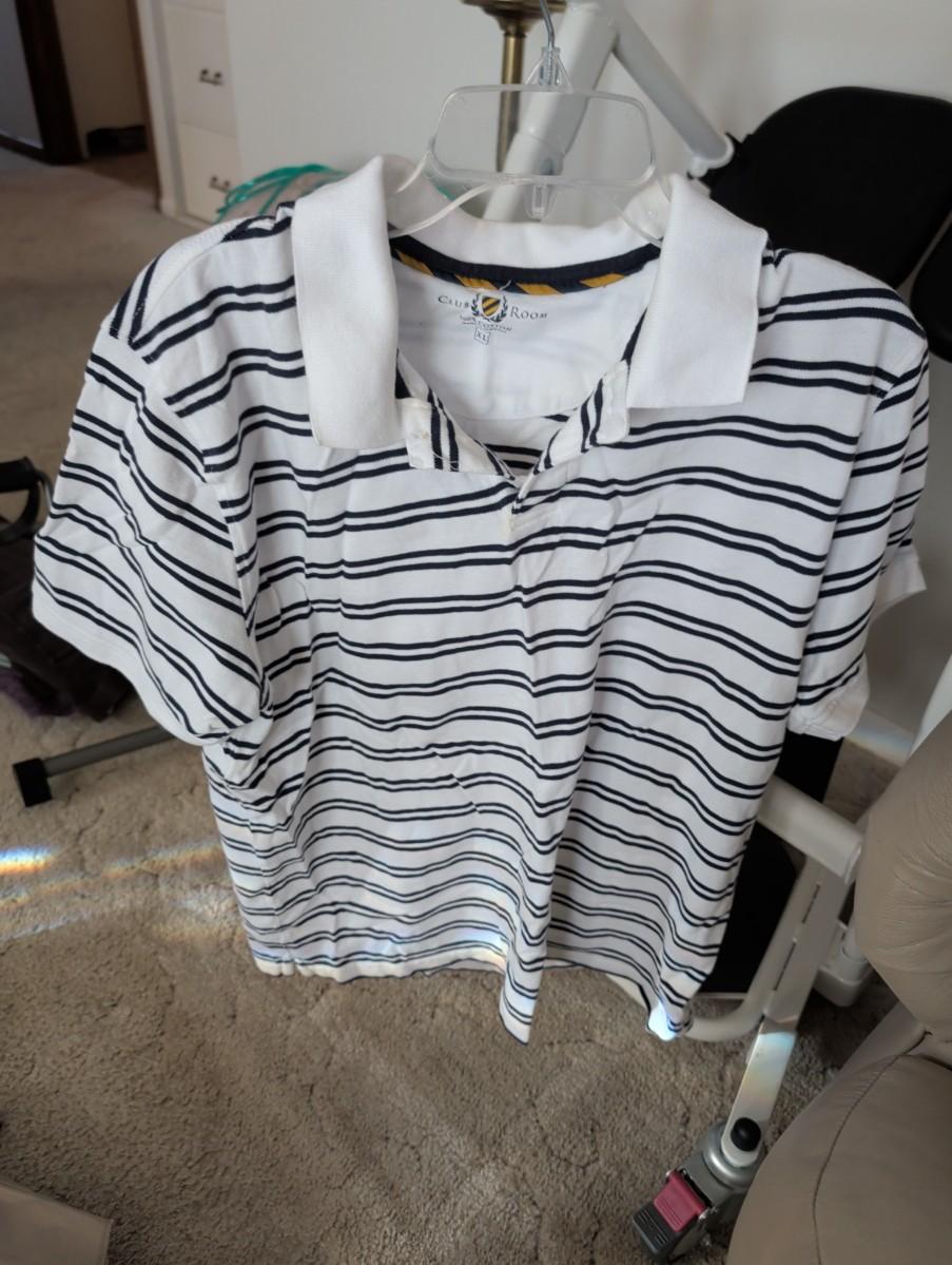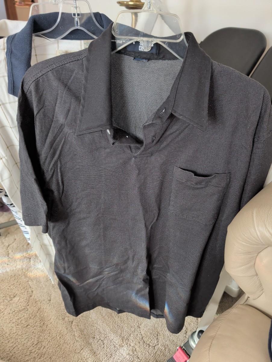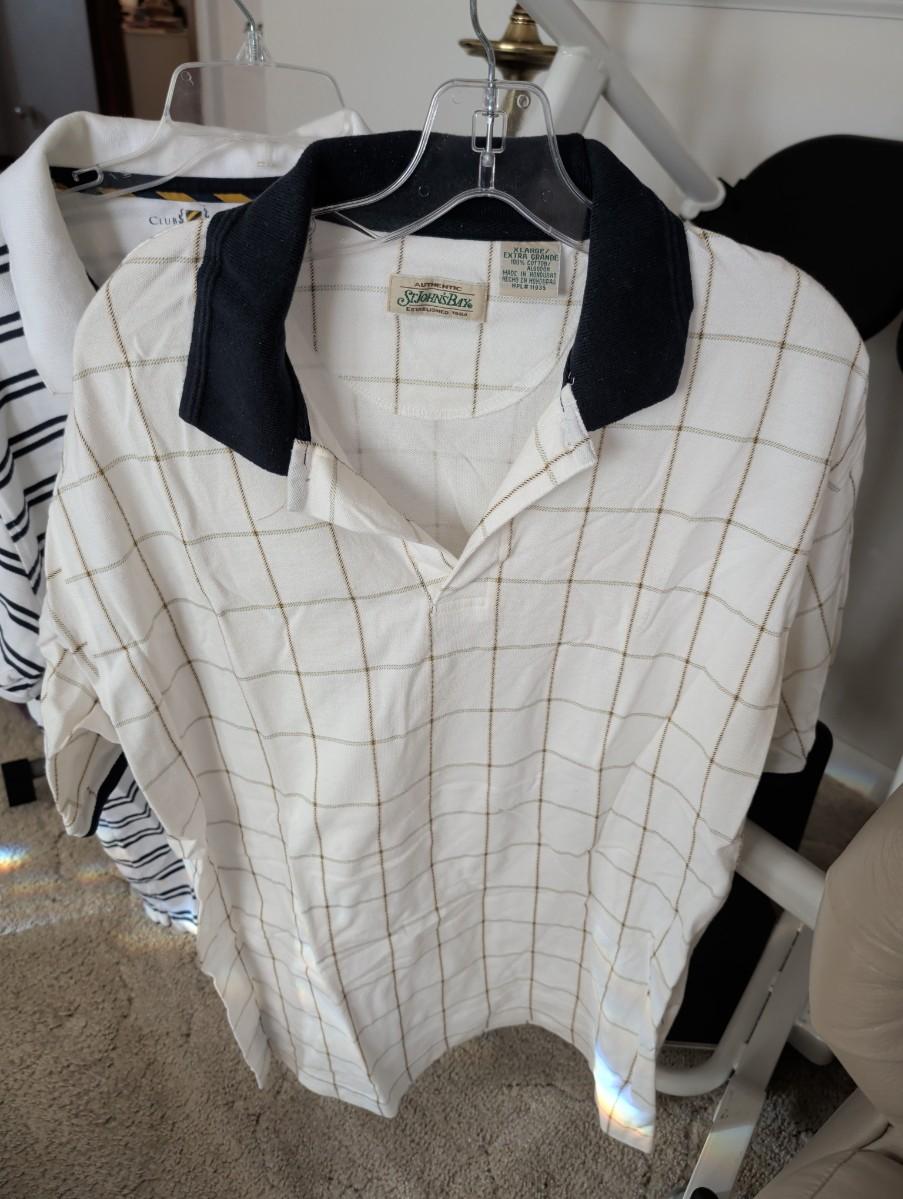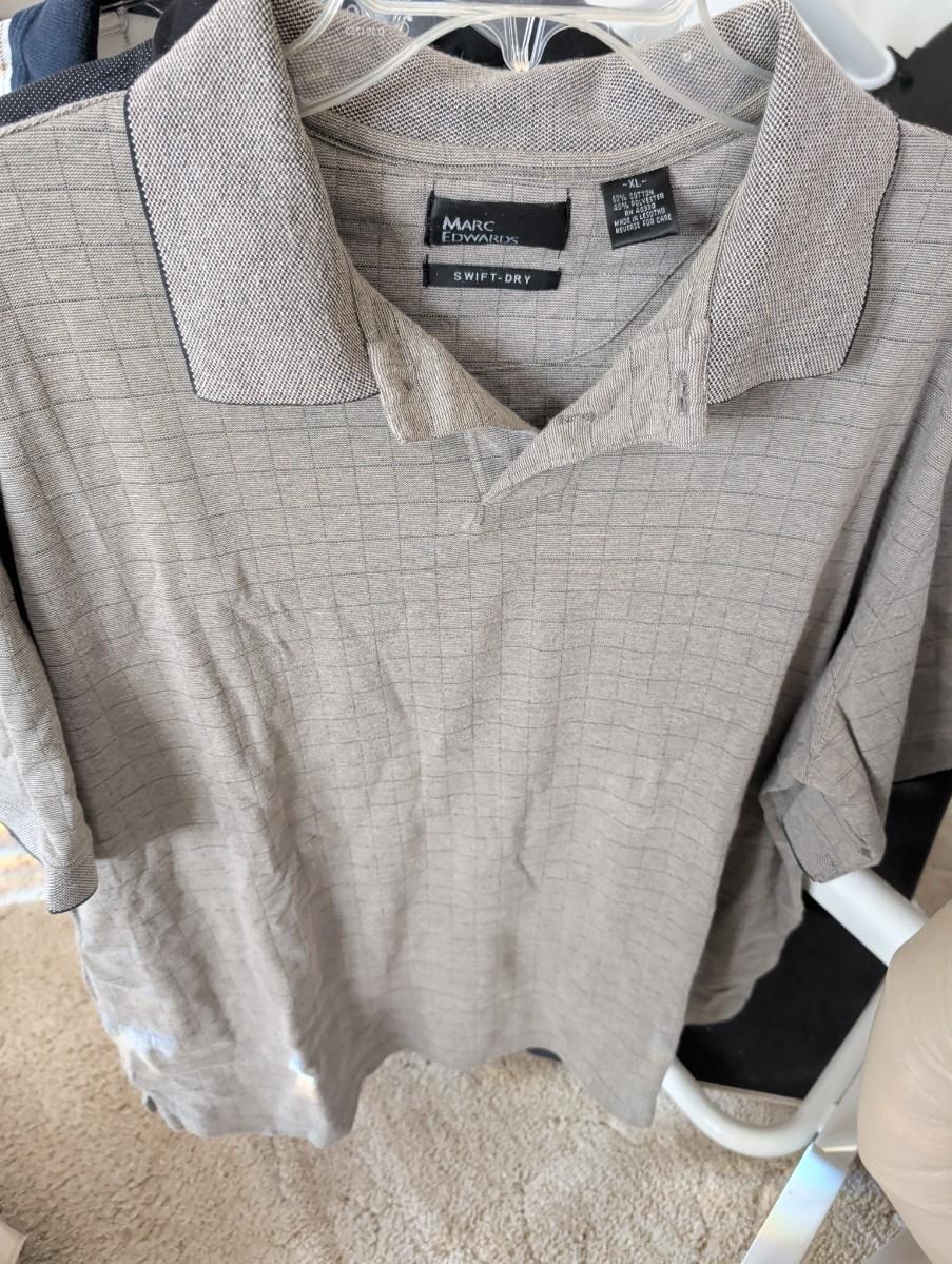 Five like new men's polo style shirts, Four are XL, and one L, Club Room, St. John's Bay, Oak Creek, Marc Edwards, Princess Cruises.