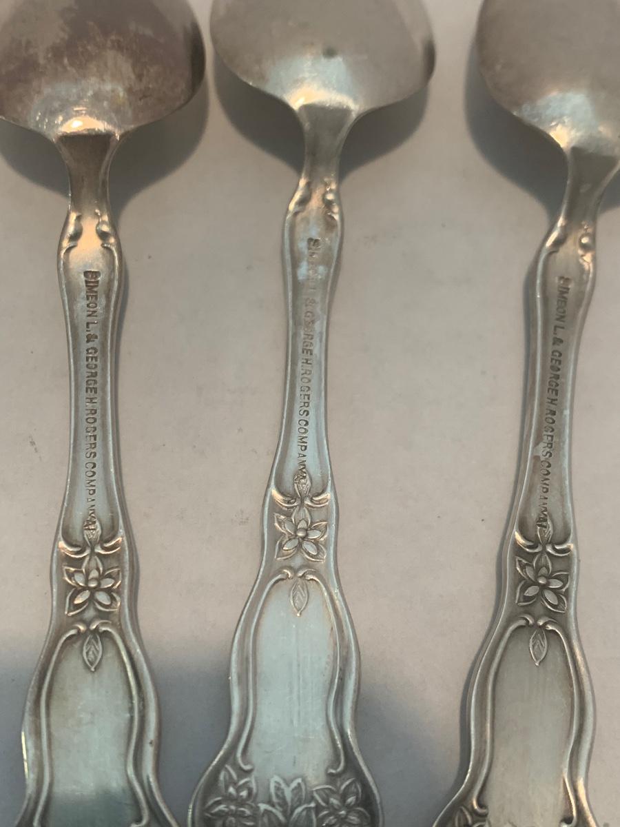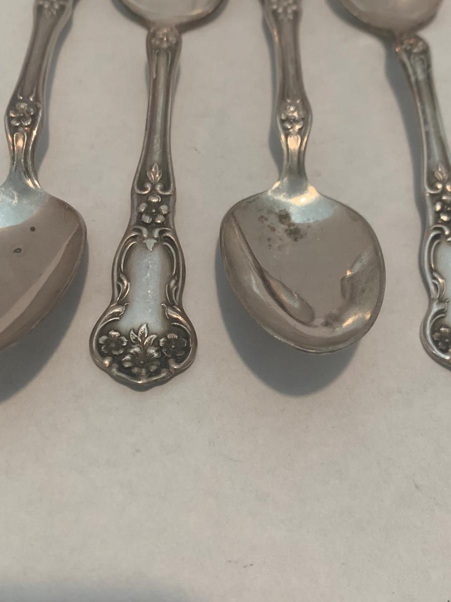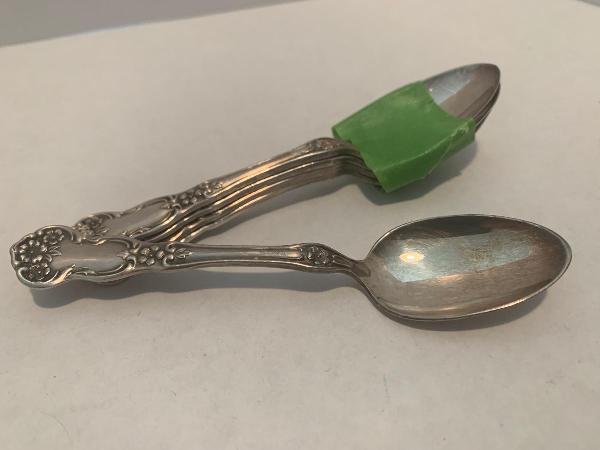 FIVE Miniature Spoons Simeon L. & George Rogers 5" each.