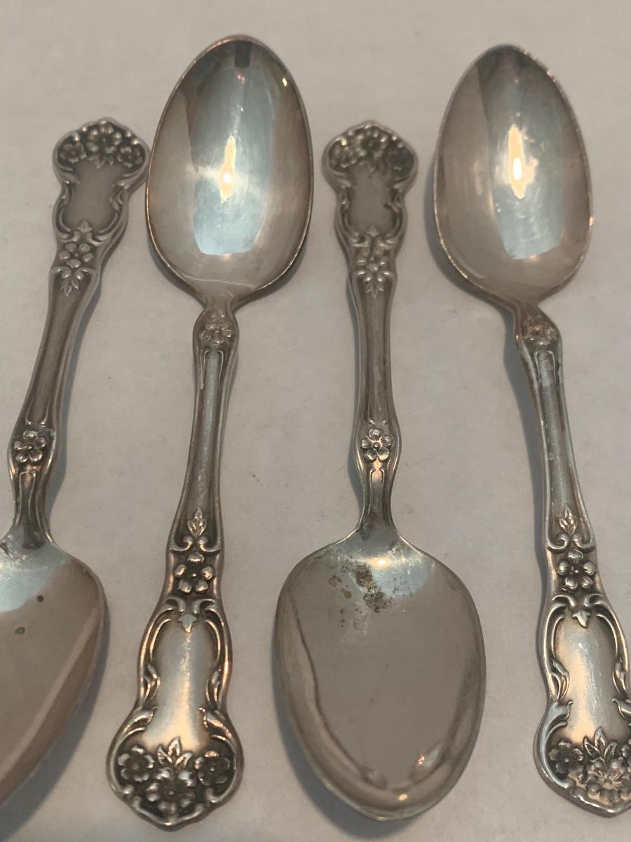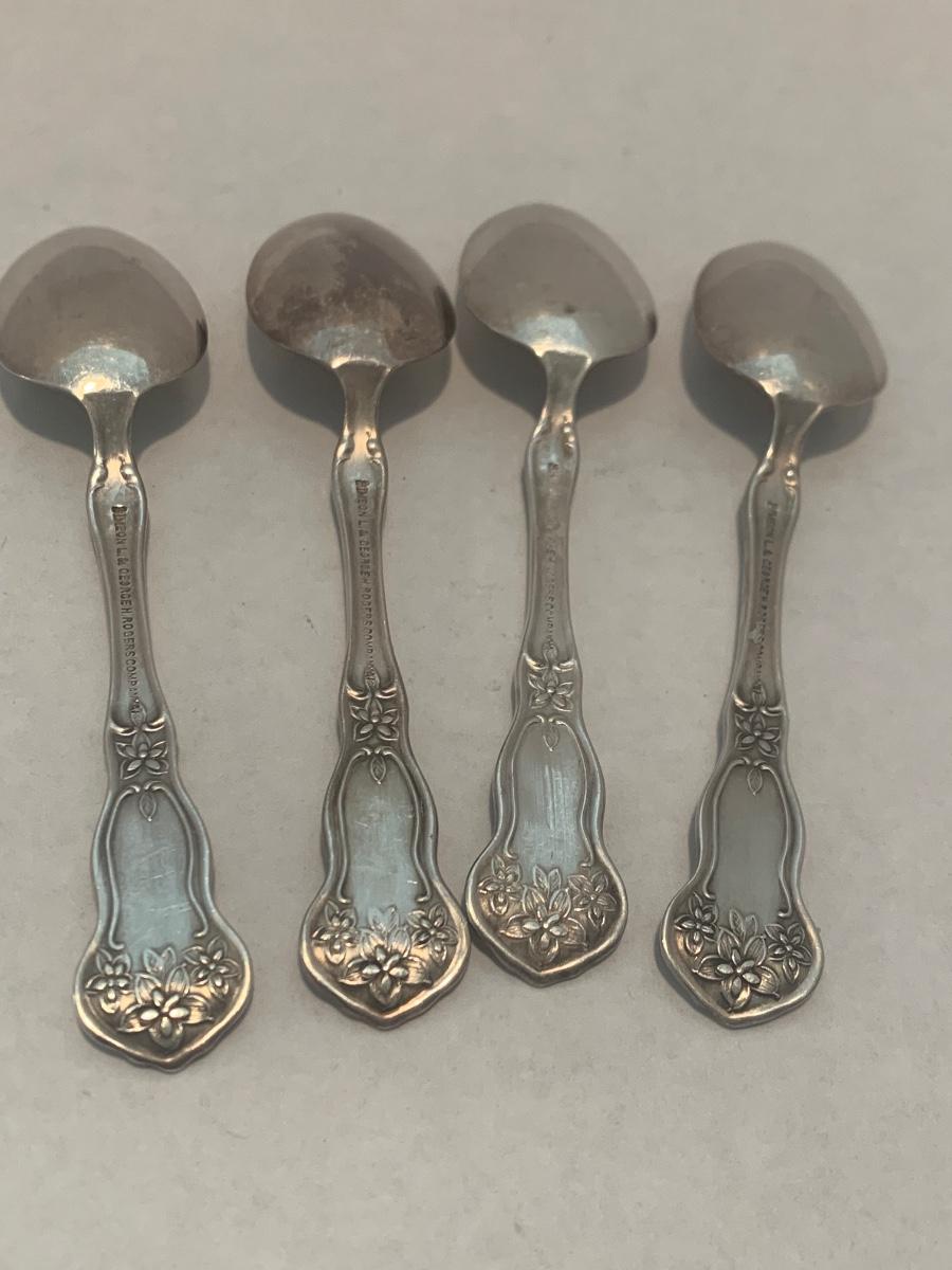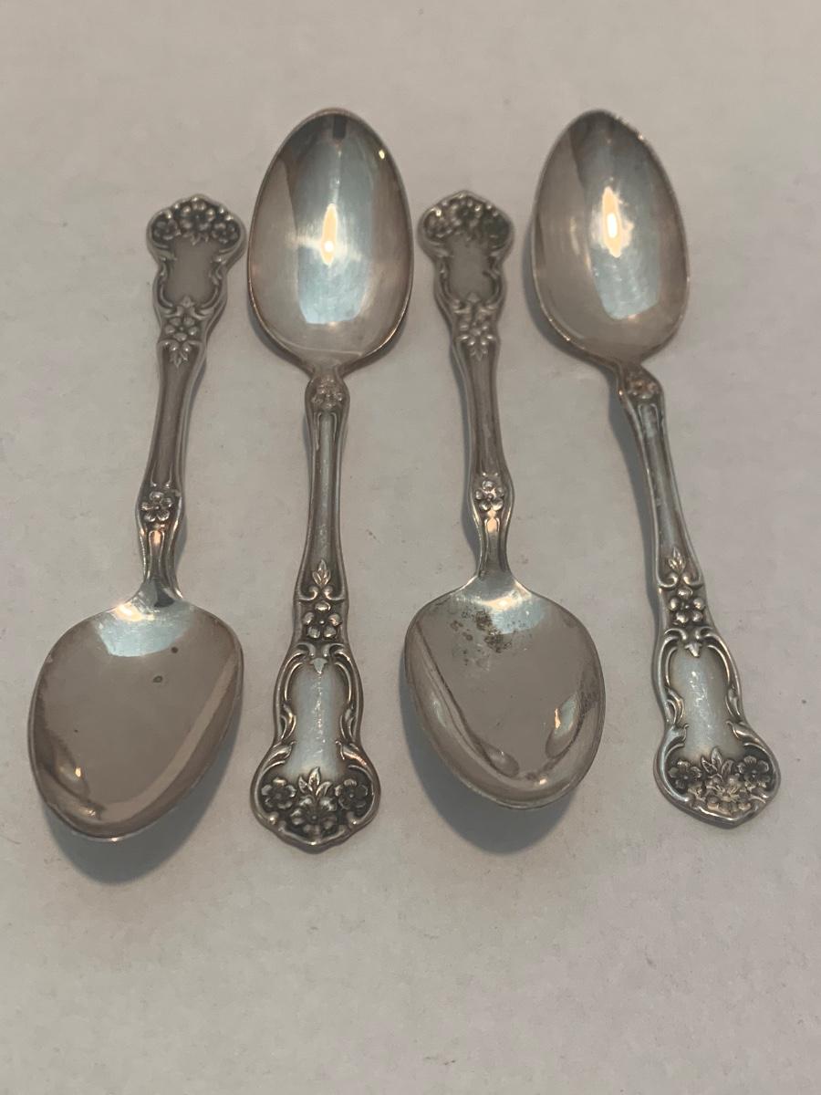 FIVE Miniature Spoons Simeon L. & George Rogers 5" each.