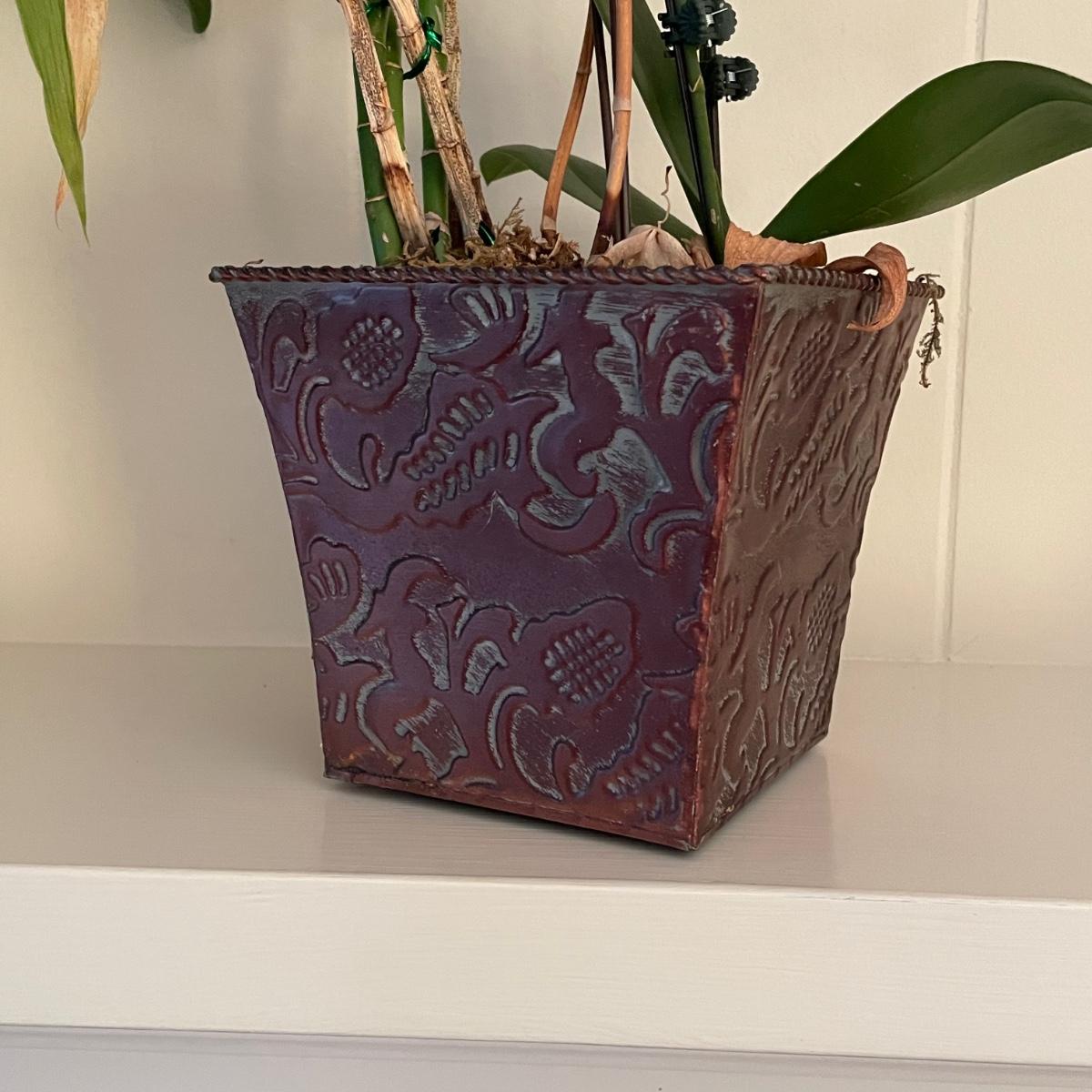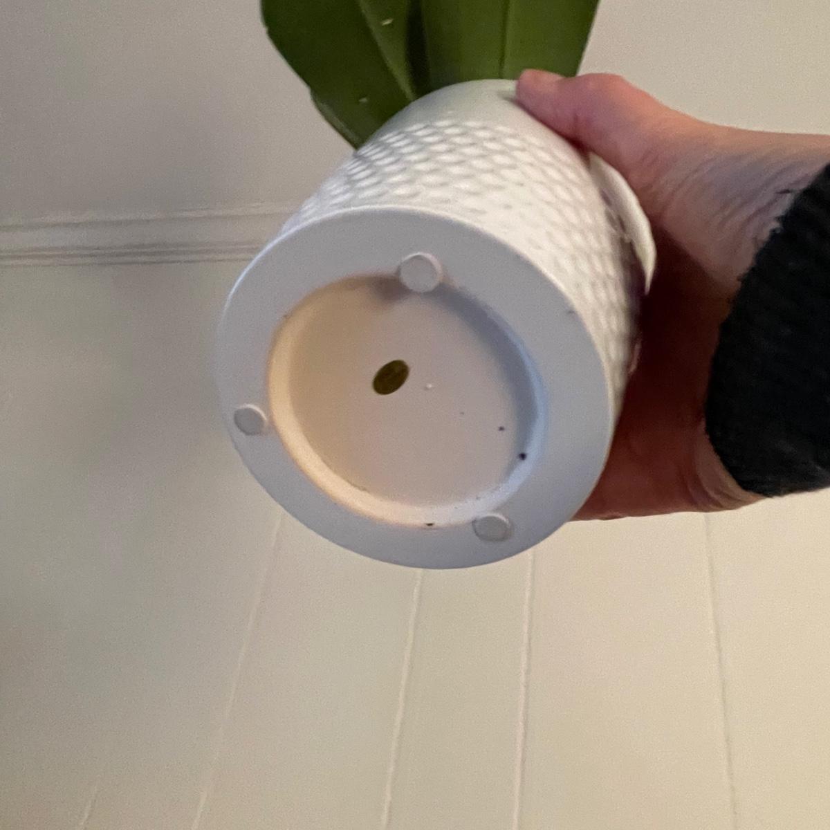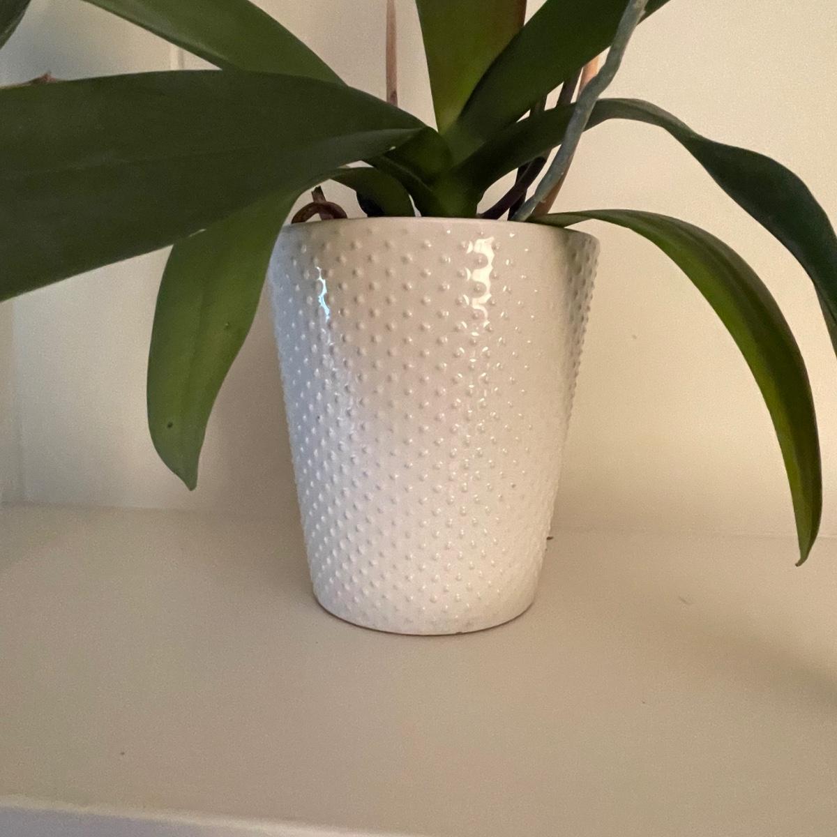 Flowering plant measures 21” tall, pot measures 4” x 4” x 6”. Last photo is taken just before start of auction.