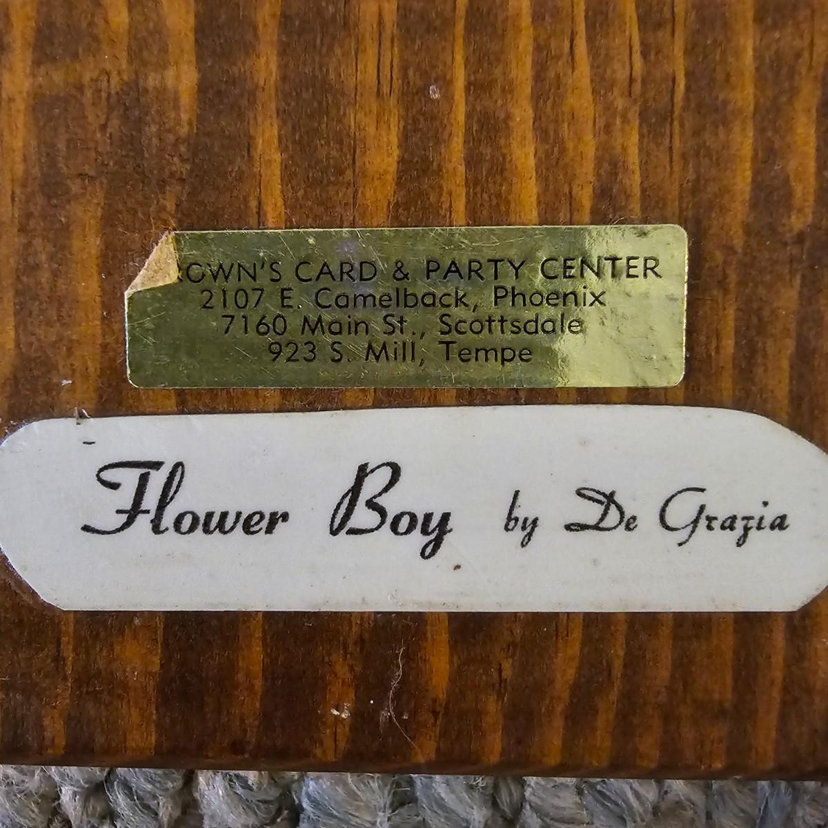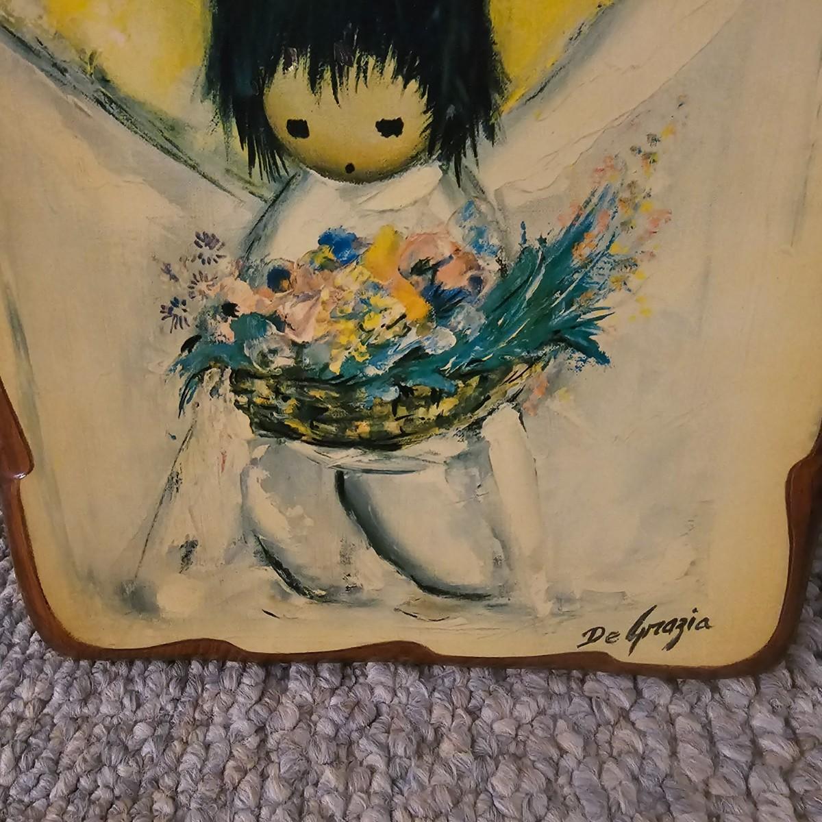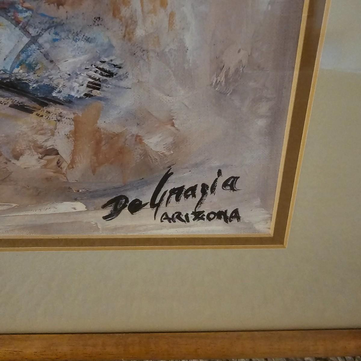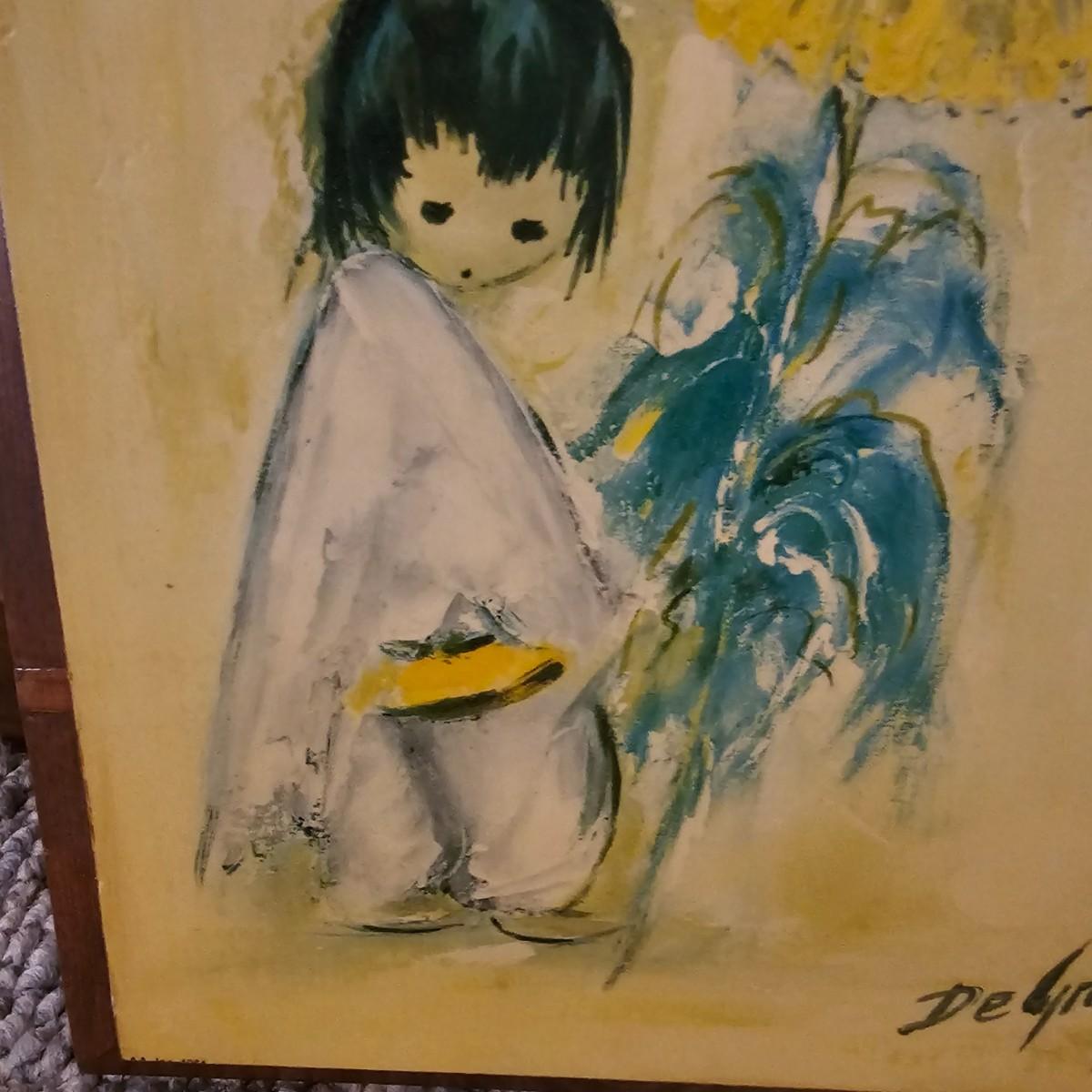 Two traditional framed images and three what appear to be decoupage over prints on solid wood background. Image of 'Apache Mother' is signed and is personalized and hand signed by artist in lower left corner. Measures 18.5" x 21.5". 'Bringing in the Sheep' is similar, signed print with hand signed personalization measuring 27.5" x 18.5". Three delightful flower children are 9" x 12" to 10" x 13". Prints appear to be signed. See photos for details. Shipping available. Shipping can be costly. We suggest contacting our preferred local shipping provider, Postage Express, with dimensions and getting an estimate before bidding: (828) 255-9250 or shipping@postageexpressnc.com.