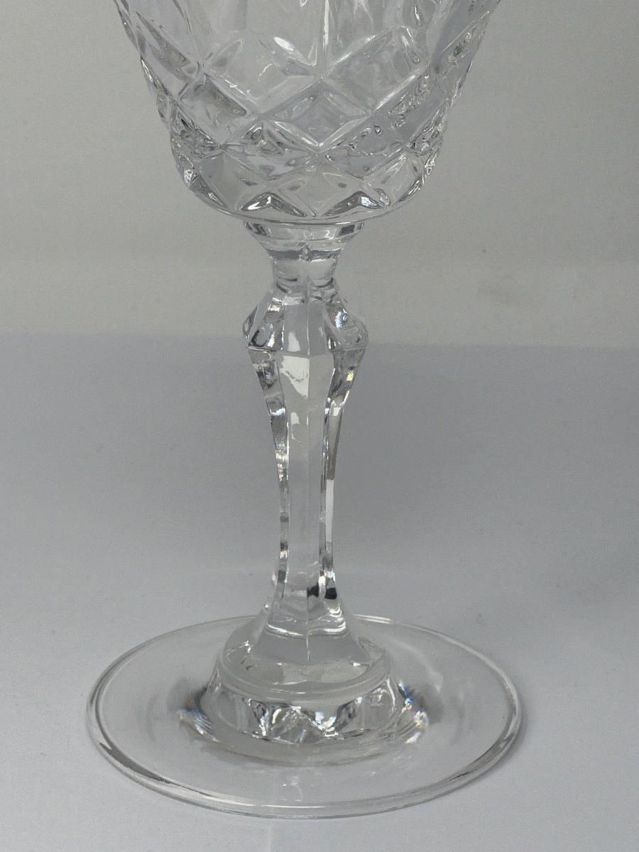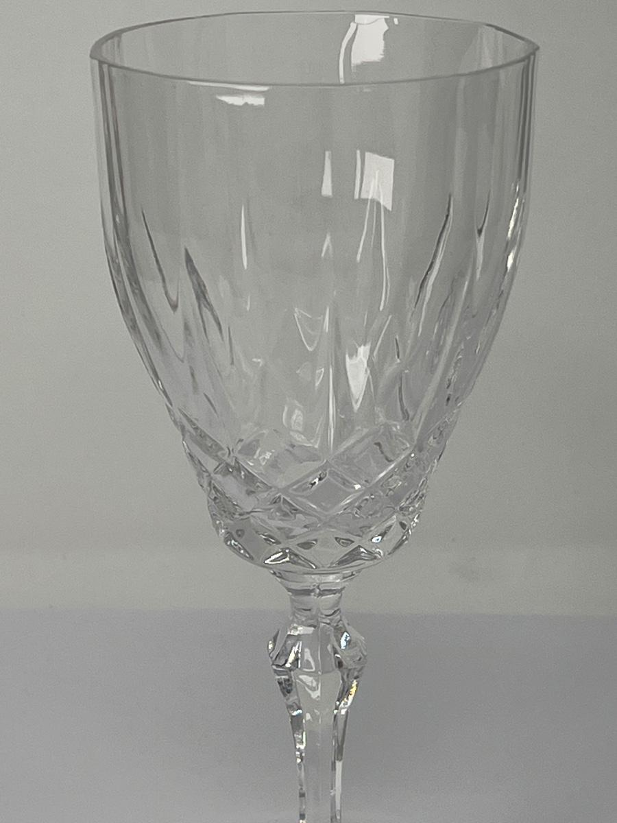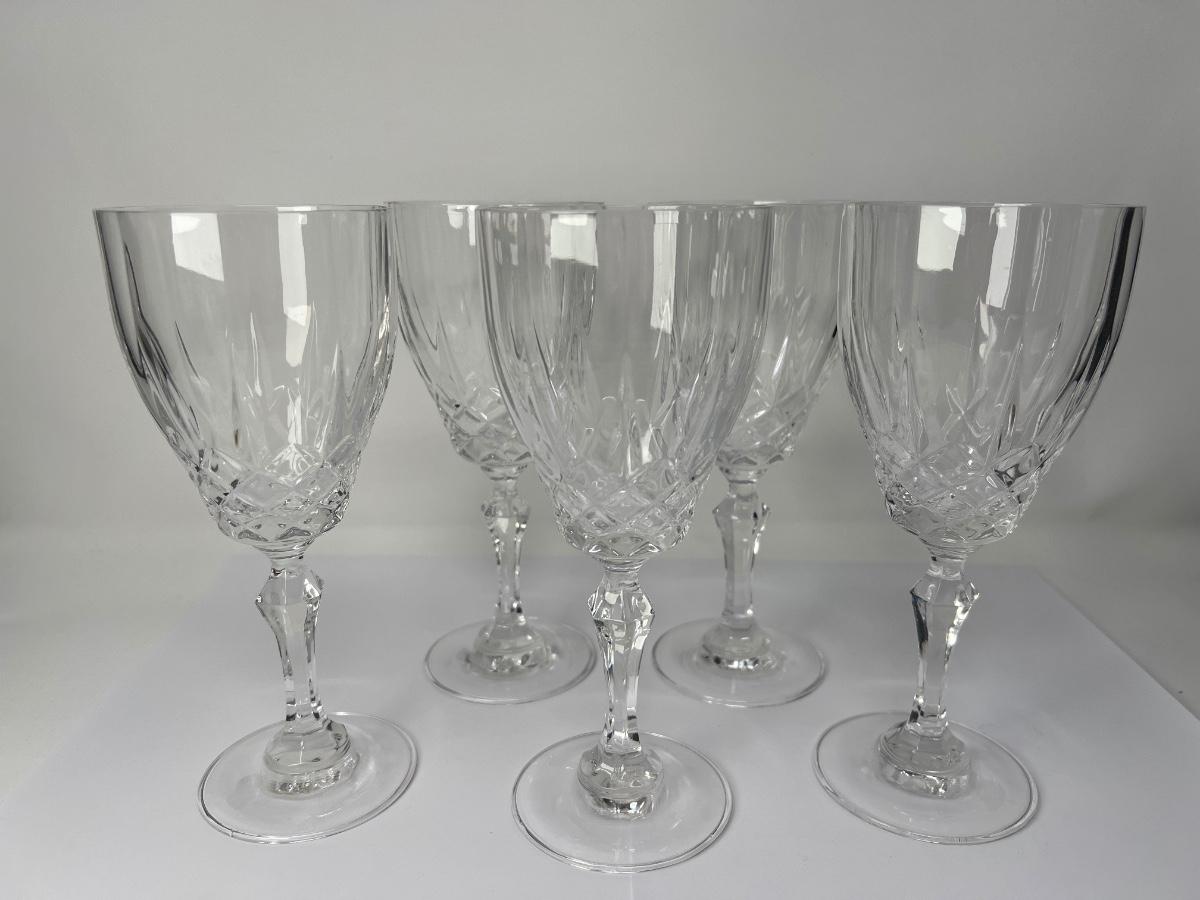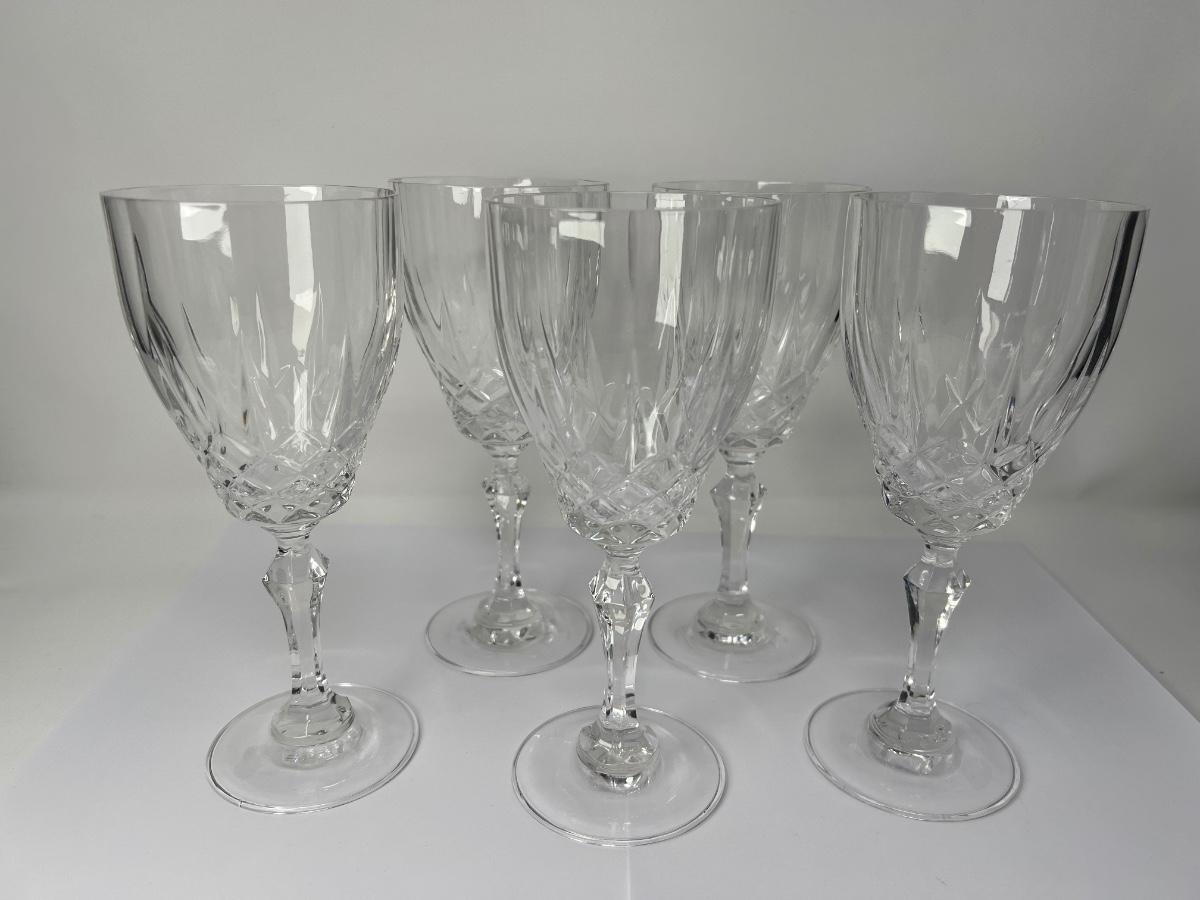 Five crystal clear pedestal goblets that are 7-3/8” tall. Appear to be the Nobility pattern from Kristal Zajecar.
