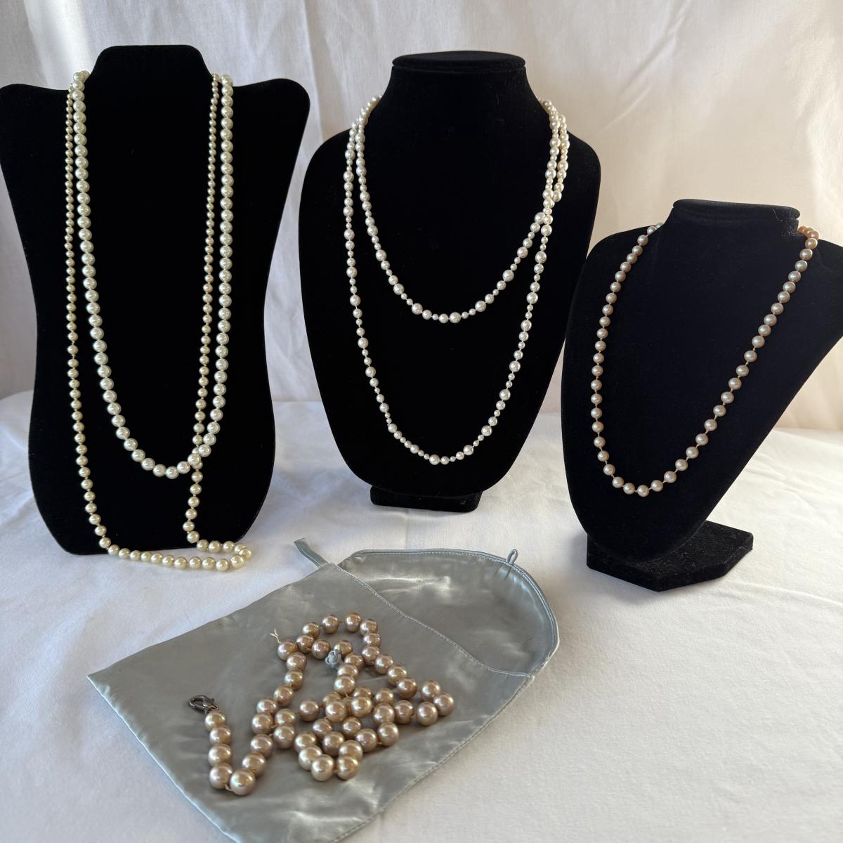 Five Pearl Necklaces with 10K Clasp (K-HS)