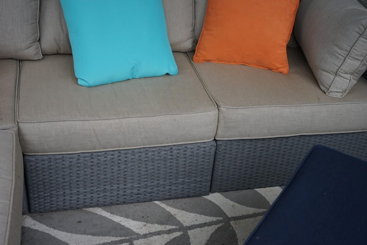 FIVE PIECE WICKER RESIN PATIO SECTIONAL W/ OTTOMAN GREY TONES WITH BEIGE CUSHIONS