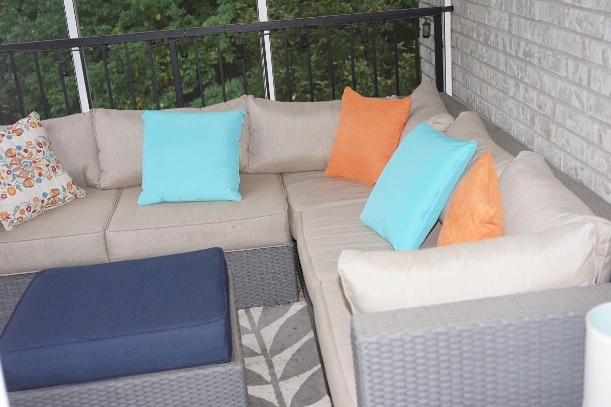 L shaped sectional with an ottoman is very cleans are in good condition.