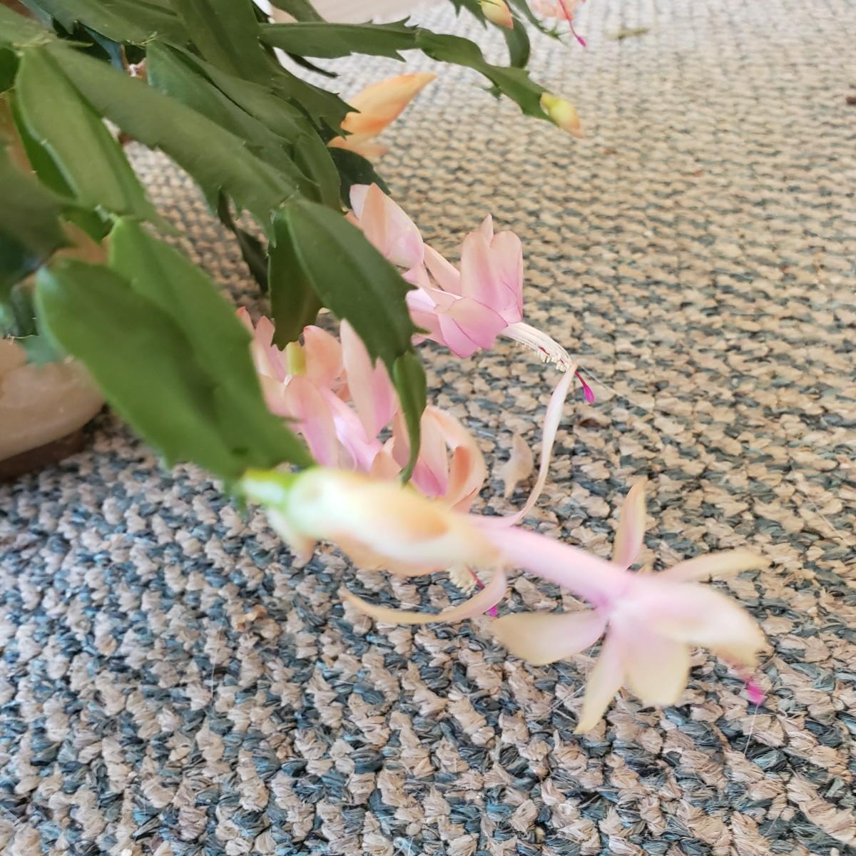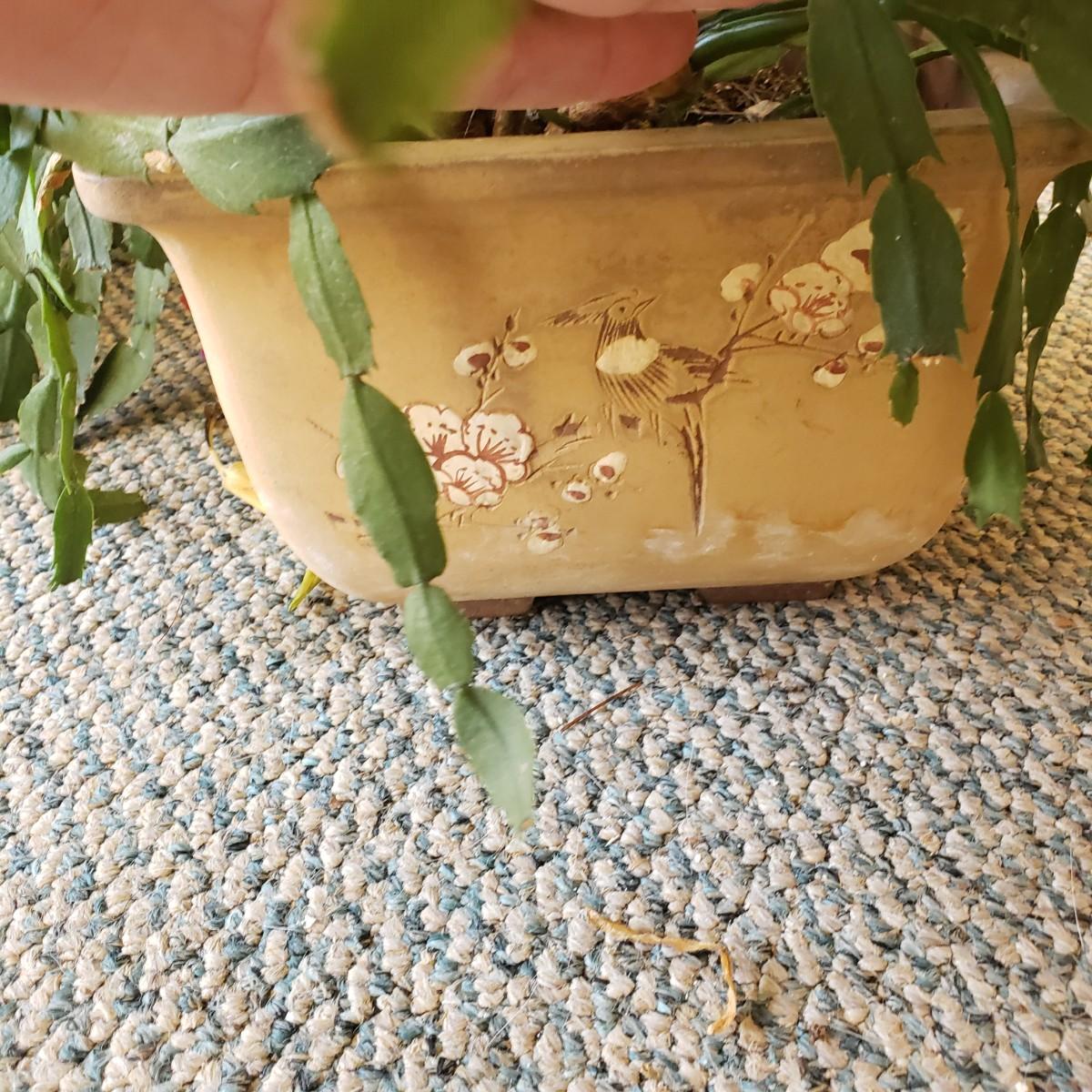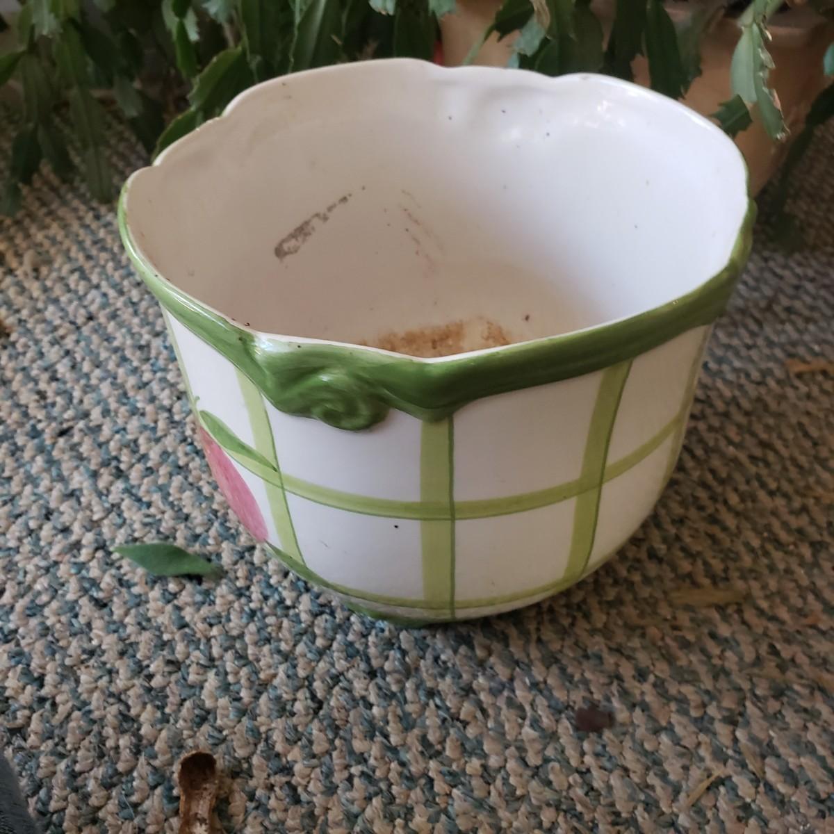 This lot has five plants, ready for your love! There are two Christmas Cactus that are in bloom! One is red and the other is pink. The red one is in its original pot, while the pink one is in a terra cotta pot with white flowers on it. The pink plant pot measures 8" x 8" x 6"H. The Hoya plant has the longest tendrils. The Hoya is in a white ceramic pot. The potho is in a circular terra cotta pot. The panda plant is also in its original plastic pot, then placed in a ceramic pot. Plant stand not included, but you can bid on them in another lot!