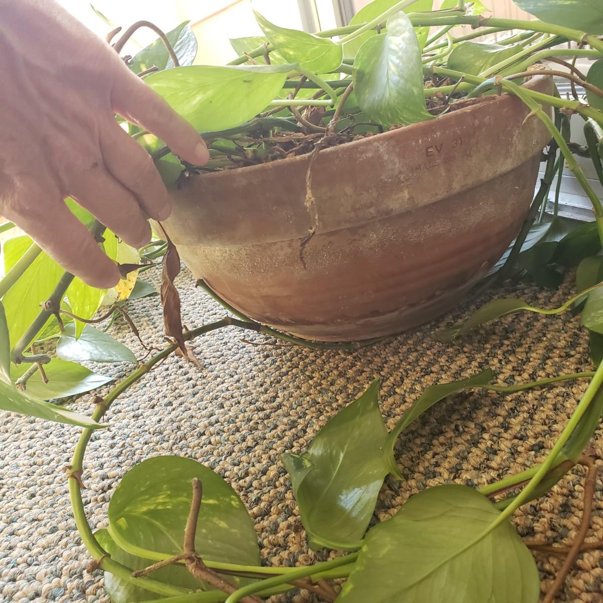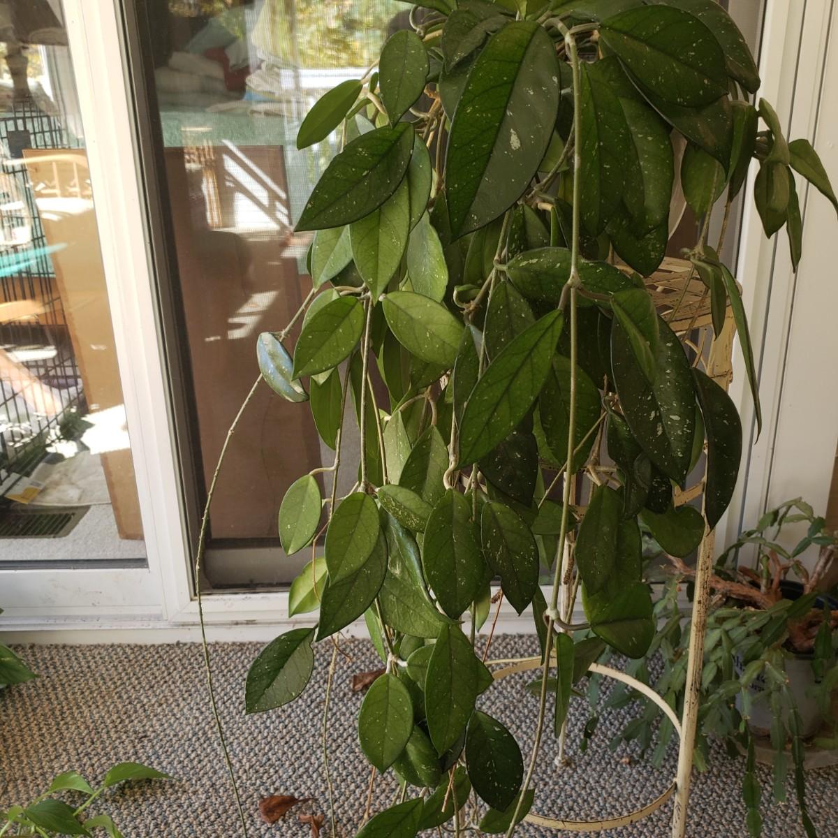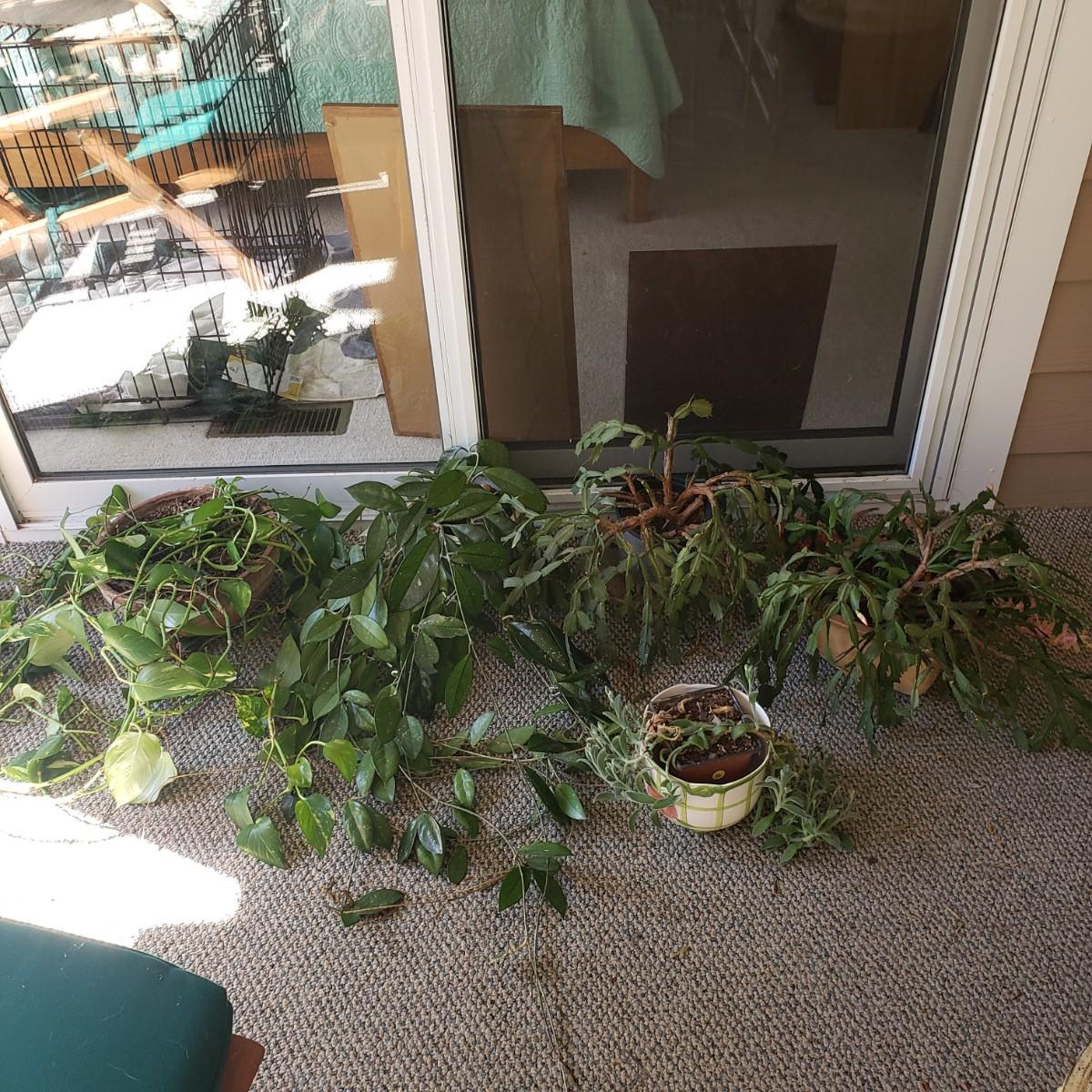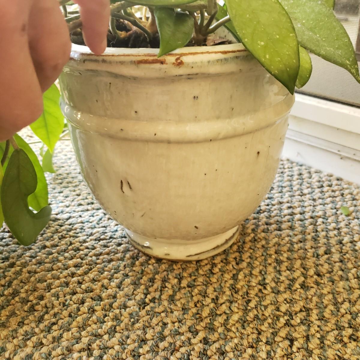 This lot has five plants, ready for your love! There are two Christmas Cactus that are in bloom! One is red and the other is pink. The red one is in its original pot, while the pink one is in a terra cotta pot with white flowers on it. The pink plant pot measures 8" x 8" x 6"H. The Hoya plant has the longest tendrils. The Hoya is in a white ceramic pot. The potho is in a circular terra cotta pot. The panda plant is also in its original plastic pot, then placed in a ceramic pot. Plant stand not included, but you can bid on them in another lot!