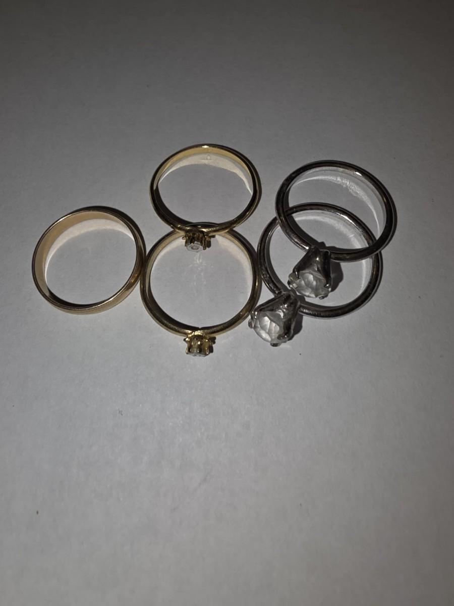 Size 7. Cubic zirconia and gold and silver tone sets.