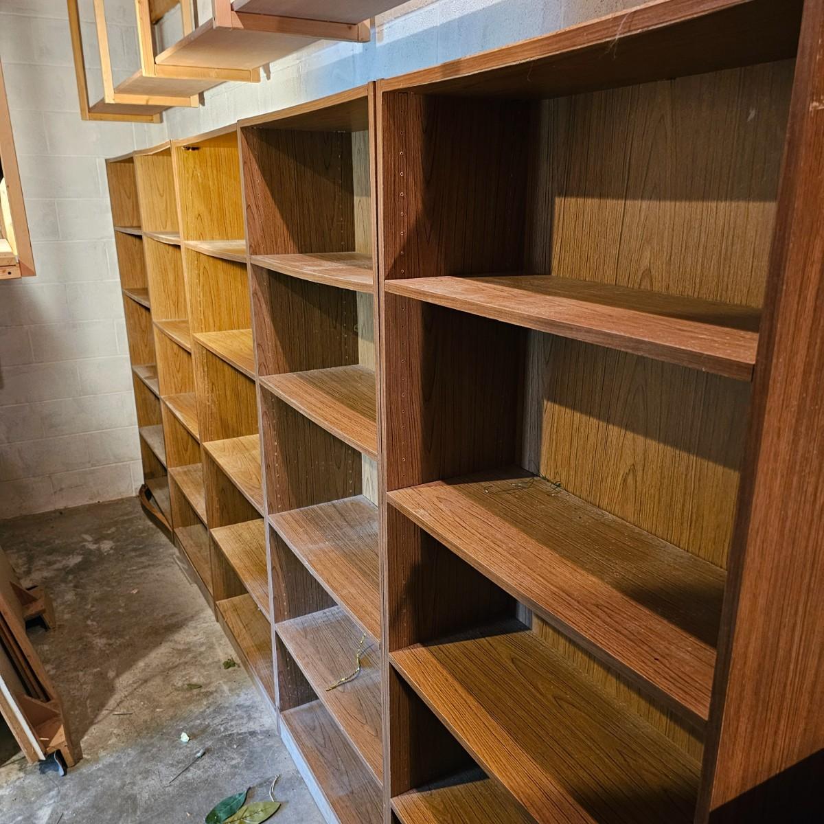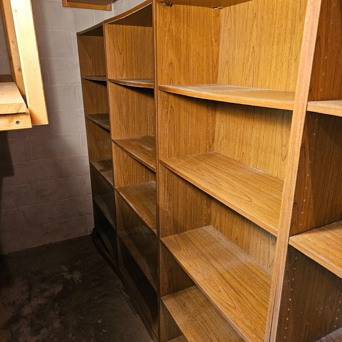 Five sets of generic particle board shelf units with four individual shelves each. The units all measure 30"W x 12"D x 72"H. All need cleaning. One unit has delaminated base piece. See photos for details. Local pickup only. Winning bidder must bring assistance to help move and load this item due to its weight and/or size. These items are located in the basement with a flight of stairs or alternatively a garden path with approximately 15 steps that can be used to go around the side of the house.