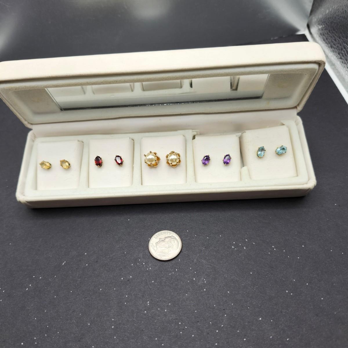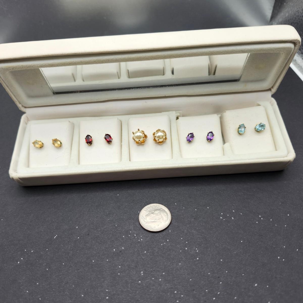 Lovely collection of vintage earrings, with citrine, rubellite tourmaline, amethyst, sappgire, and pearls.