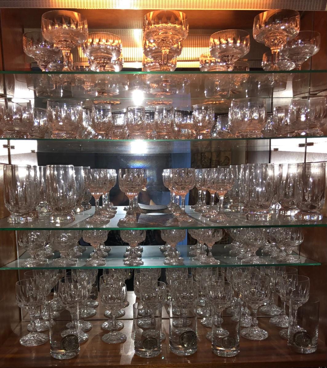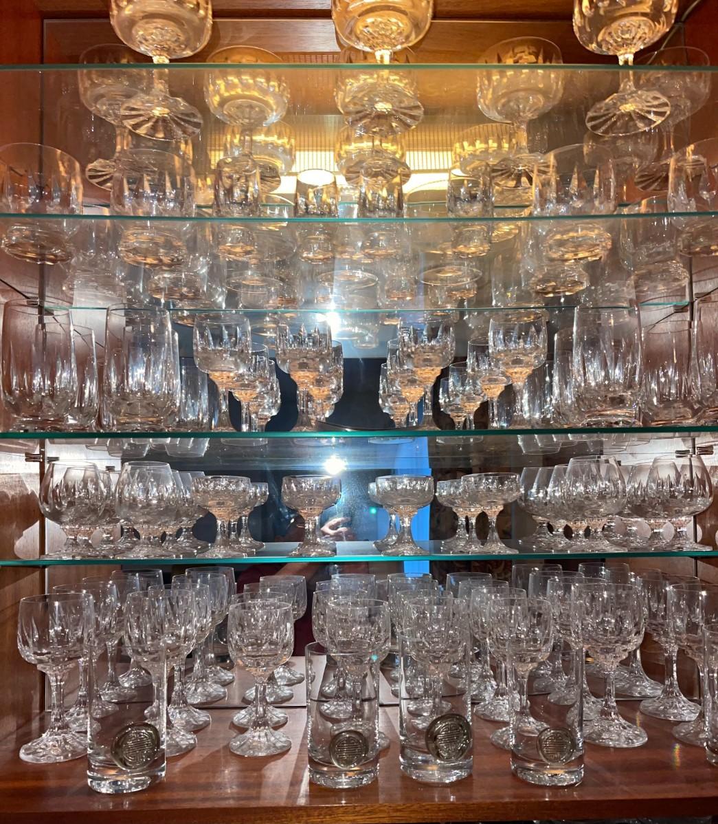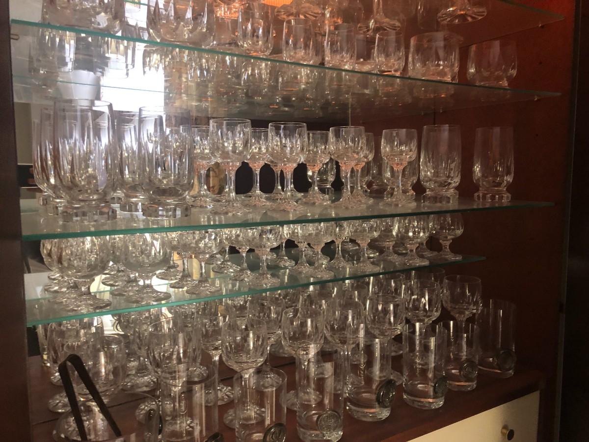 Five Shelf Lot of Crystal Cut Glass Drinkware