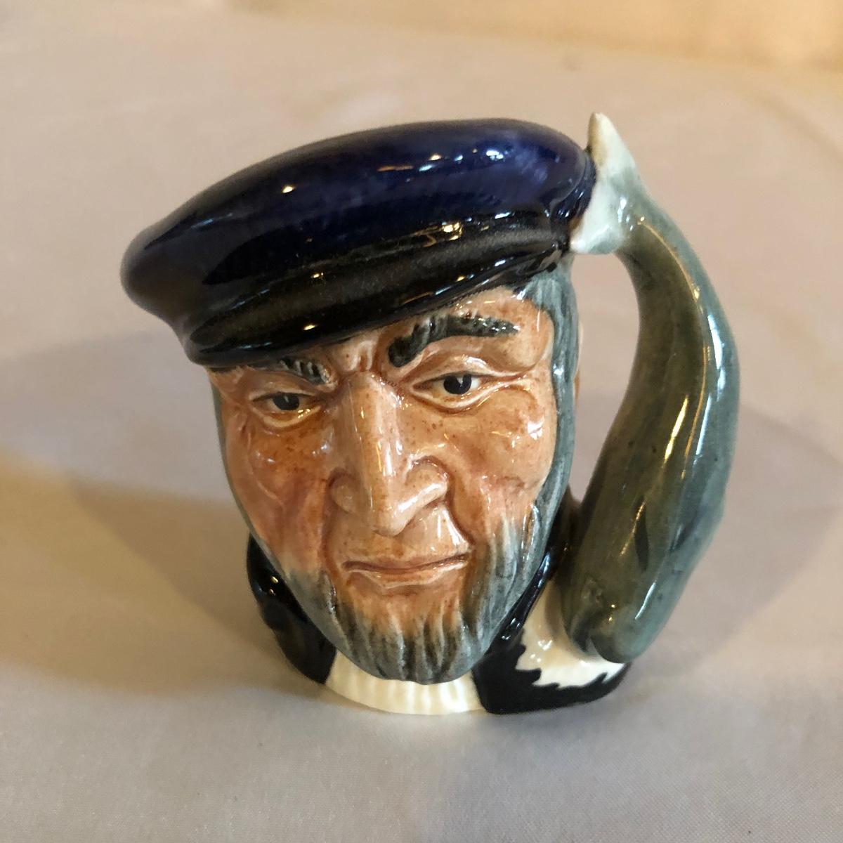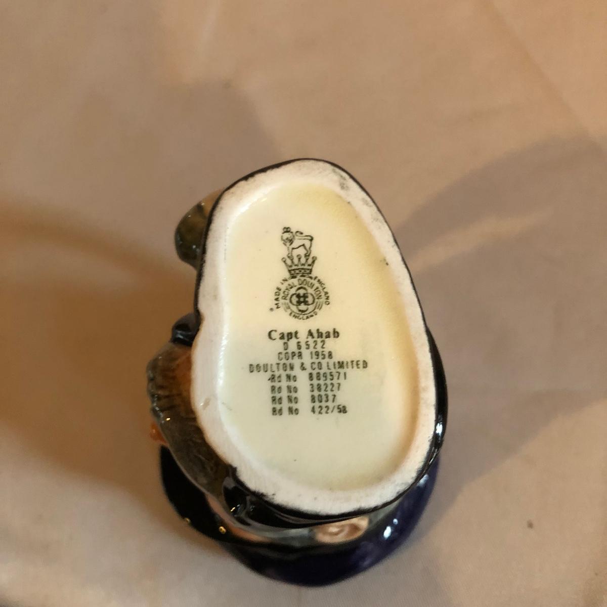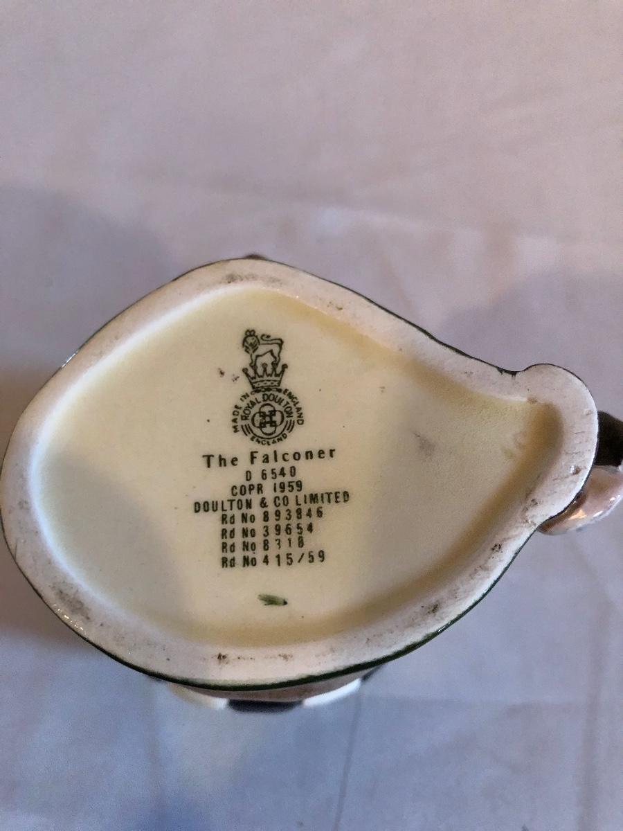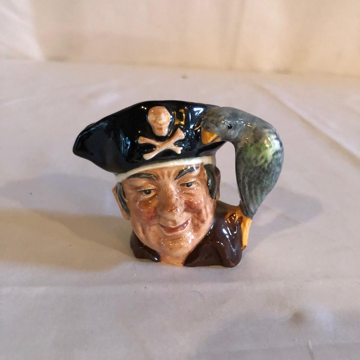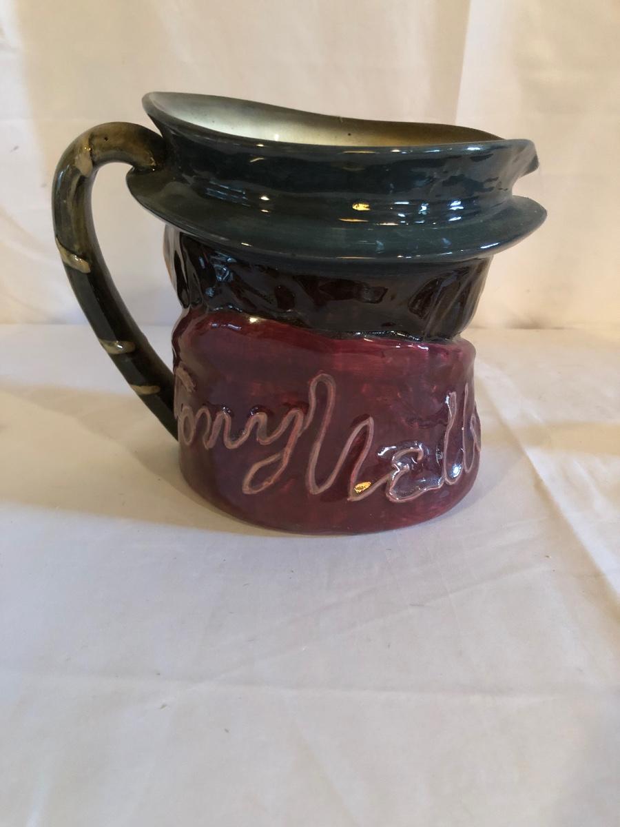 Lot includes Tony Weller mug, The Falconer mug, Pied Piper mug, Captain Ahab mug and Long John Silver Mug. All are Marked Royal Doulton. Largest mug measures 7” x 8” x 6.5”.