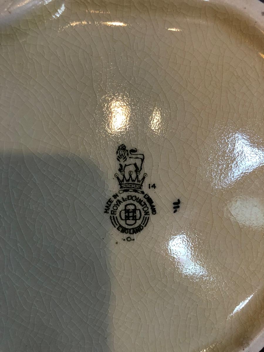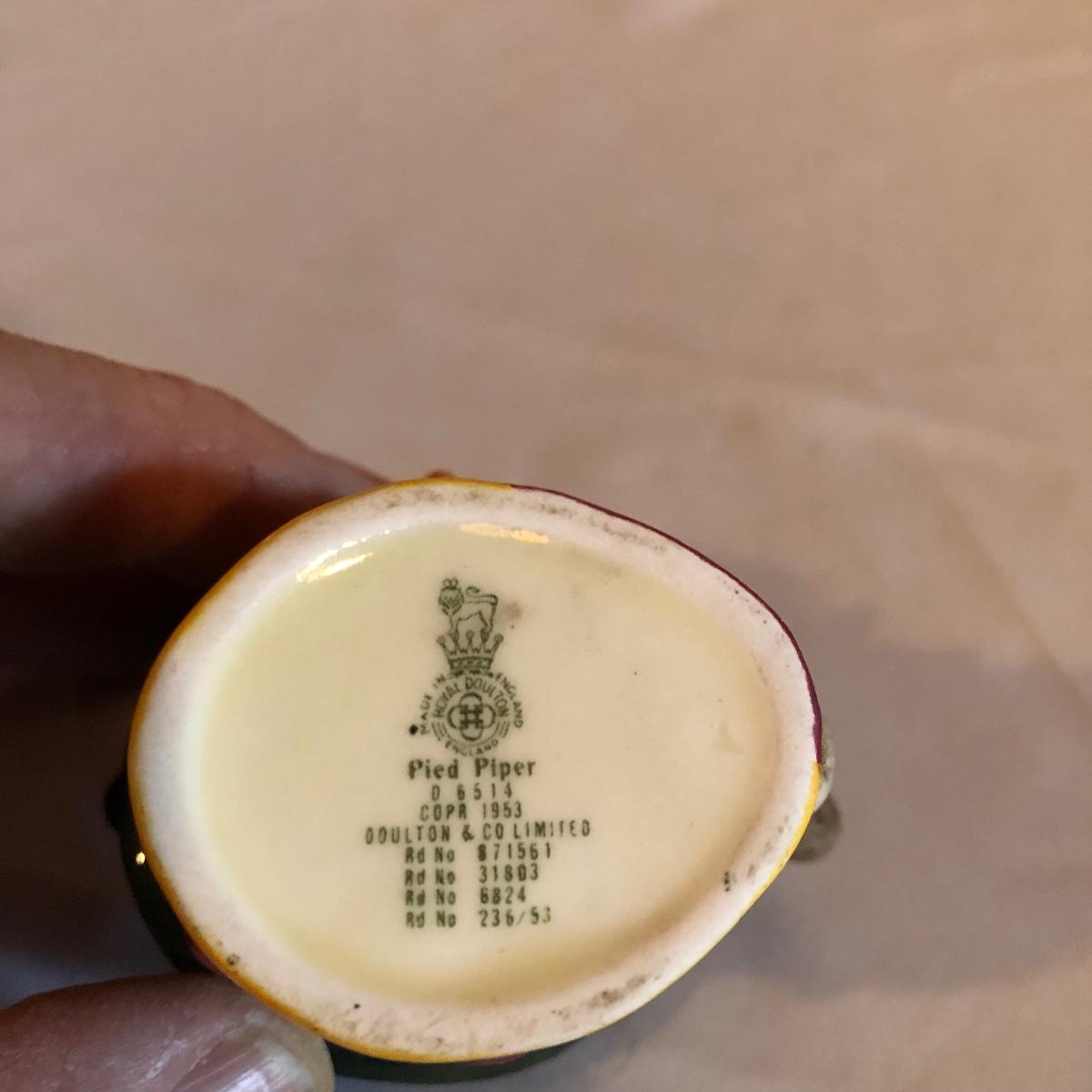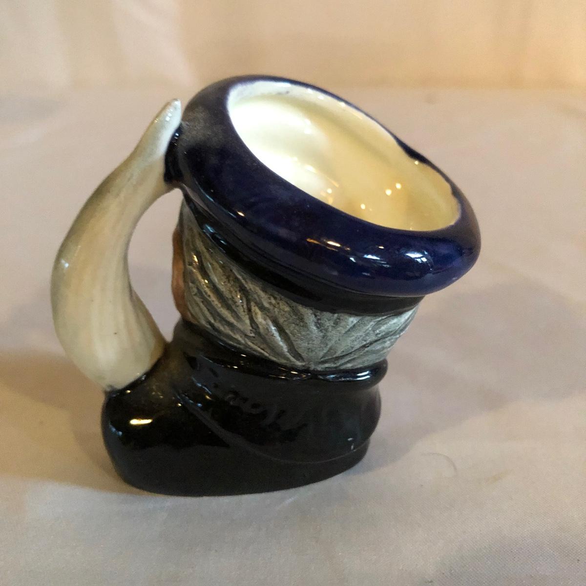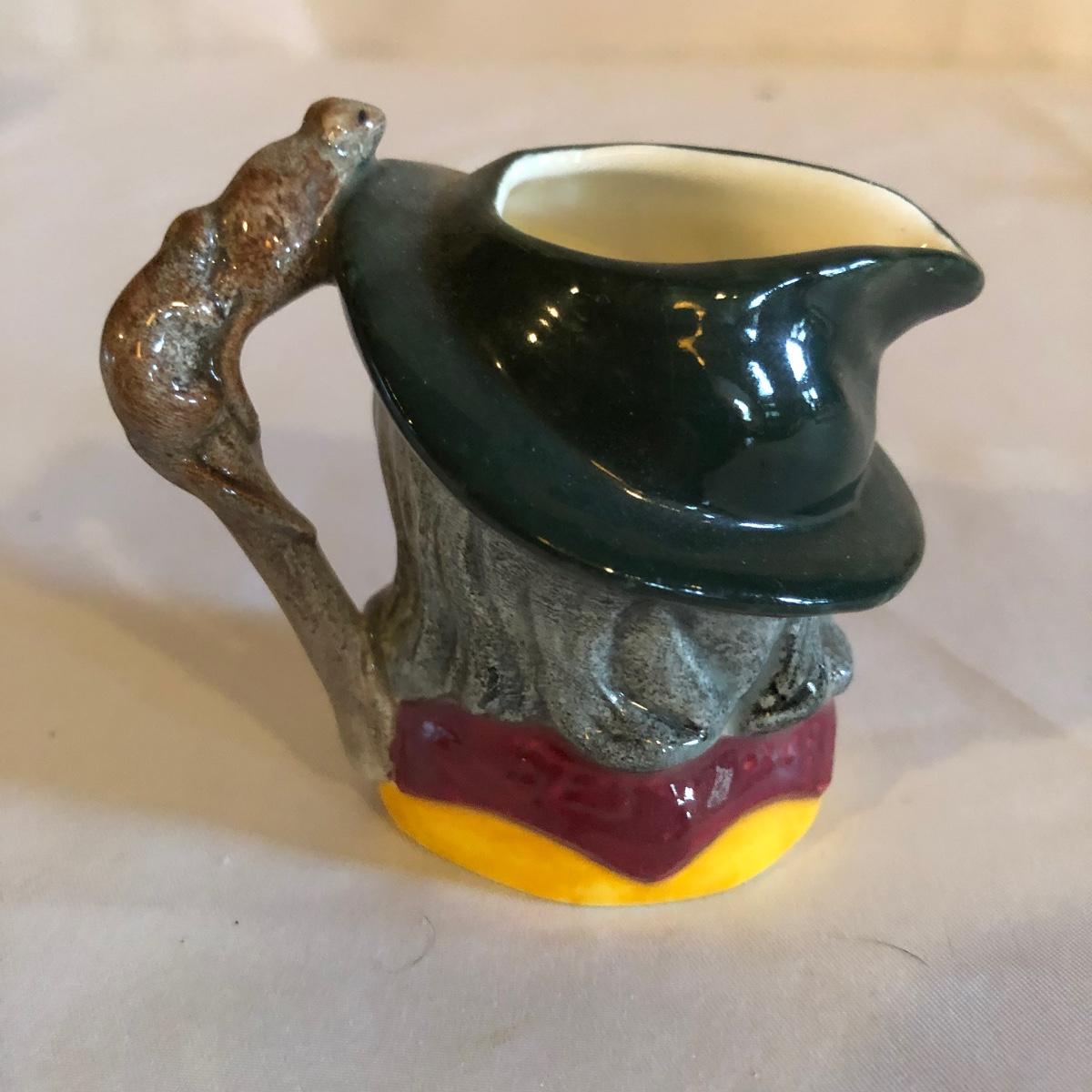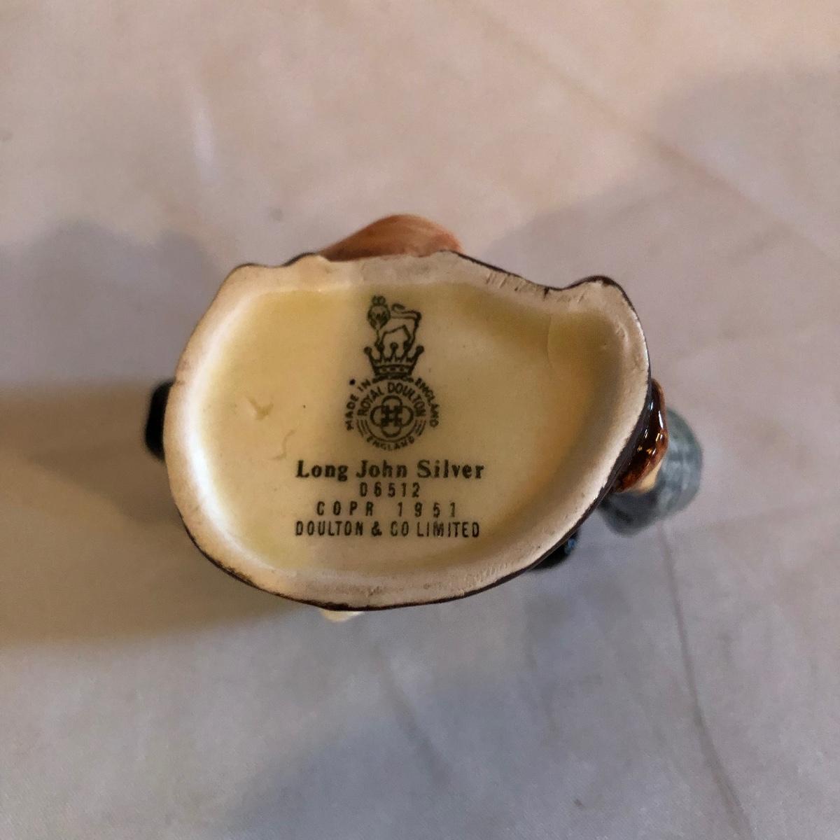 Lot includes Tony Weller mug, The Falconer mug, Pied Piper mug, Captain Ahab mug and Long John Silver Mug. All are Marked Royal Doulton. Largest mug measures 7” x 8” x 6.5”.