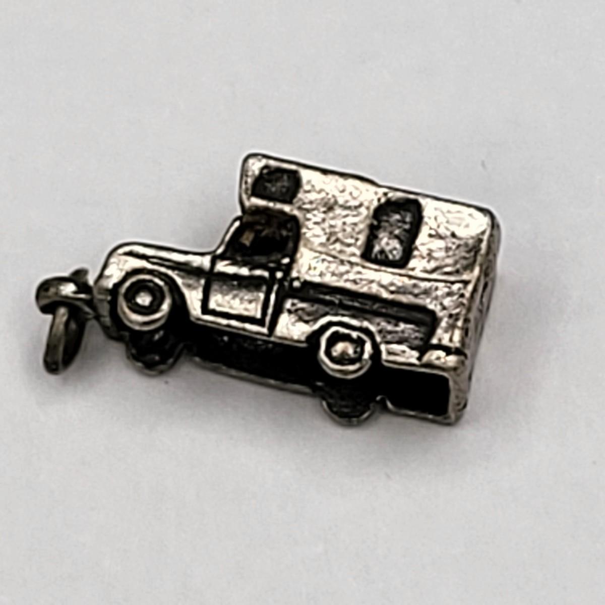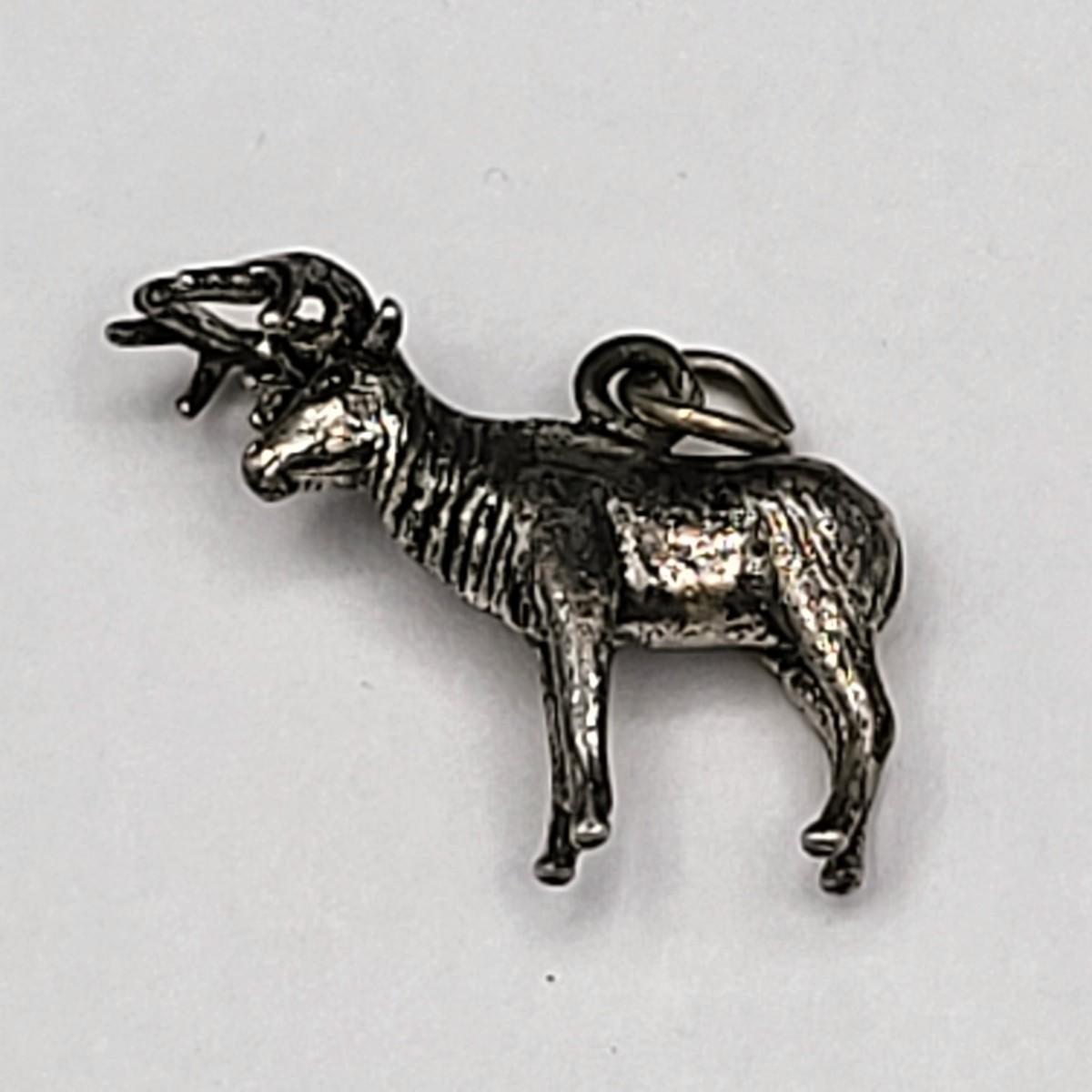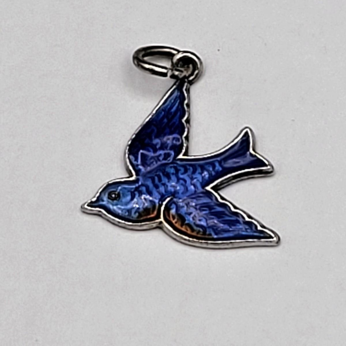Five vintage souvenir charms: Blue enameled bird, blue ebameled Montana, Glacier National Park donkey, Stag and RV Truck. Three are sterling, two are unmarked but appear to be sterling.