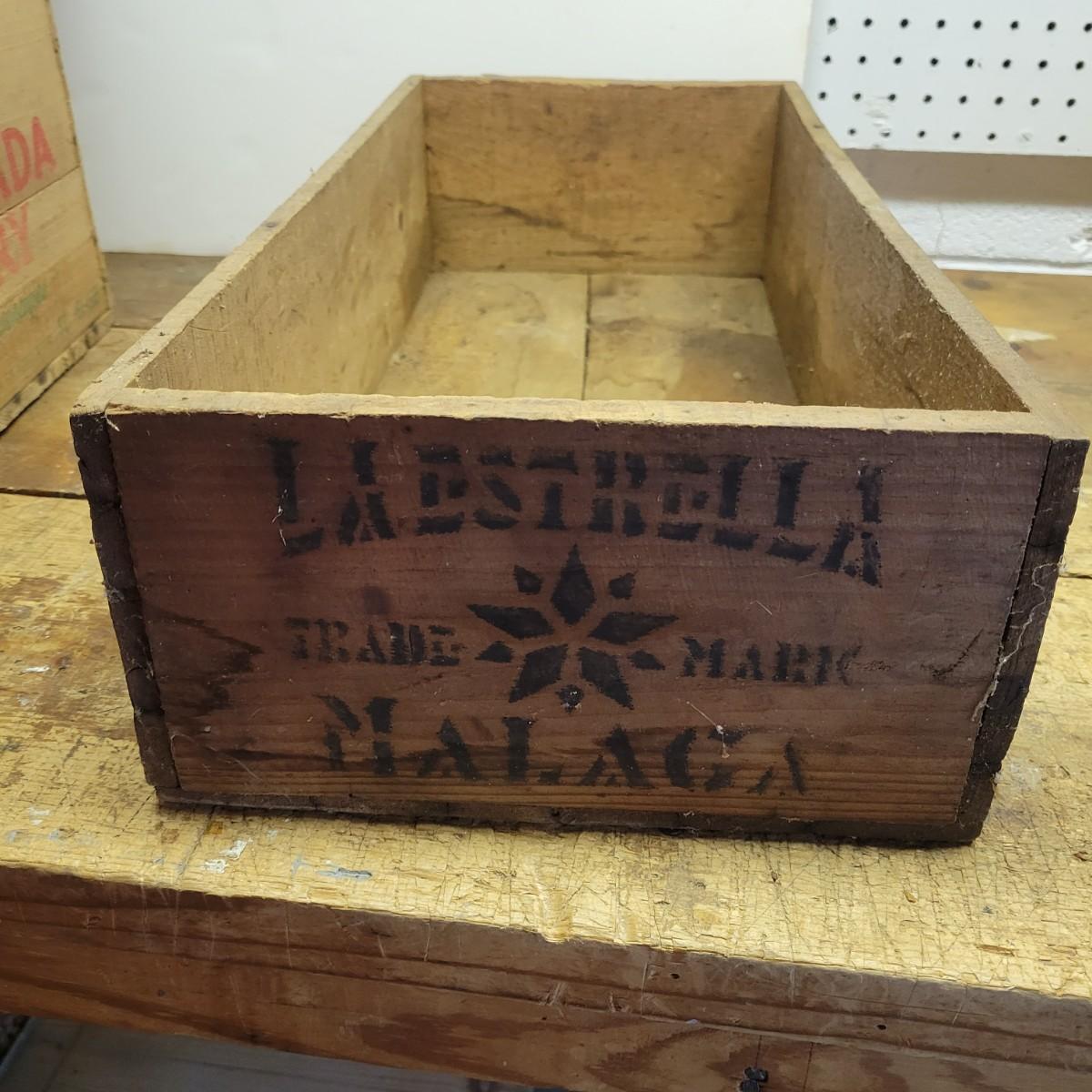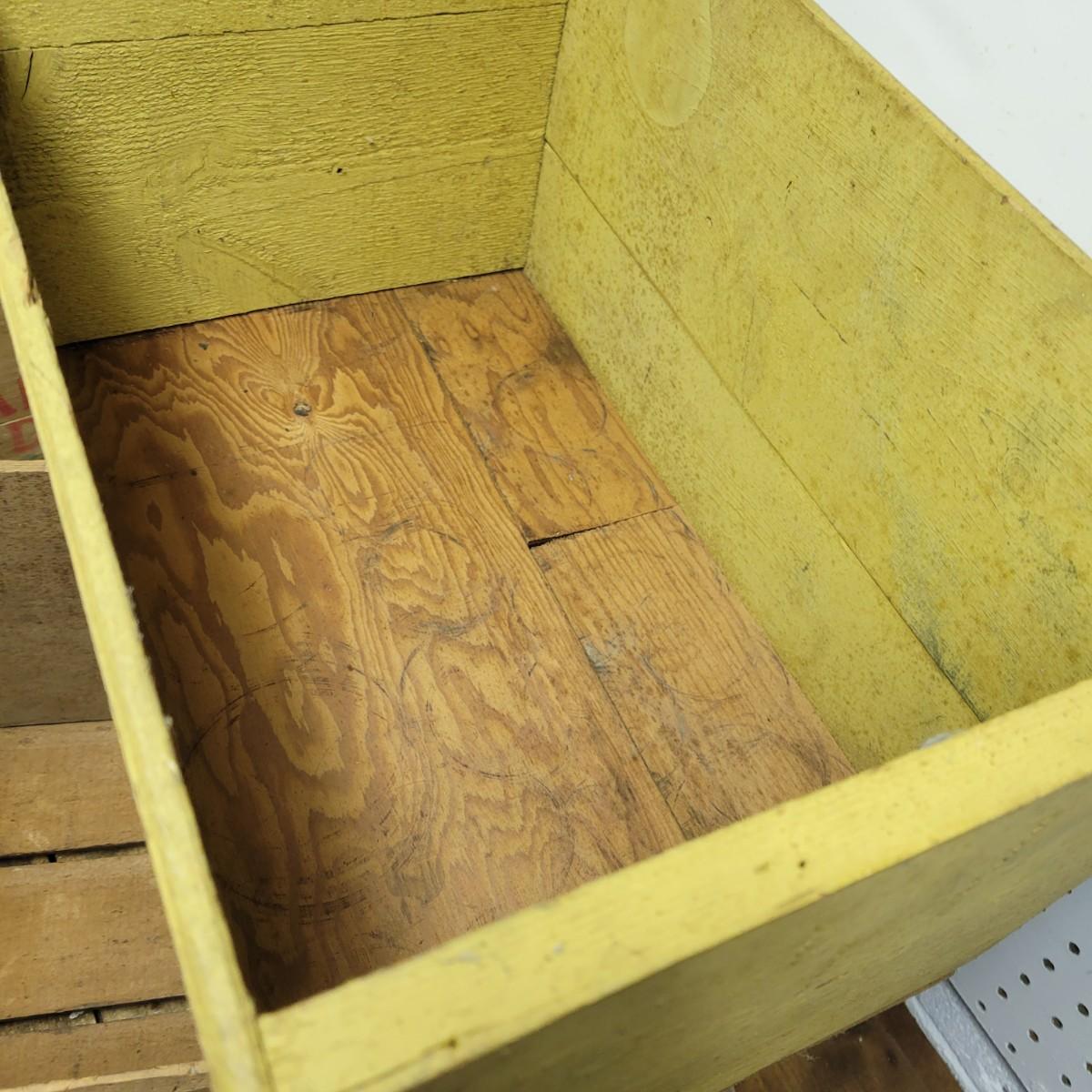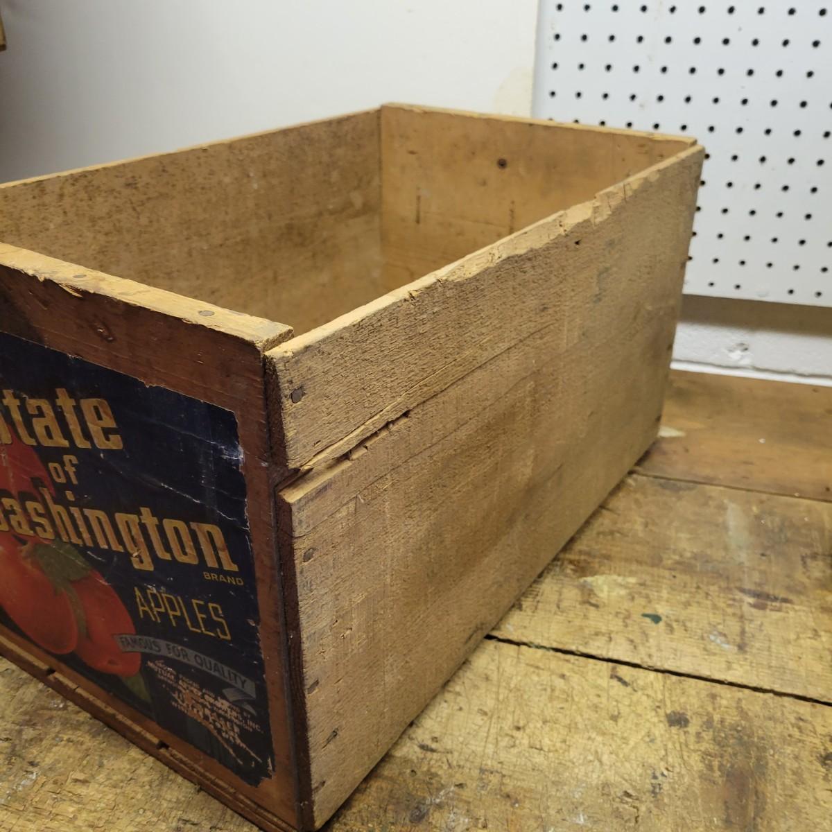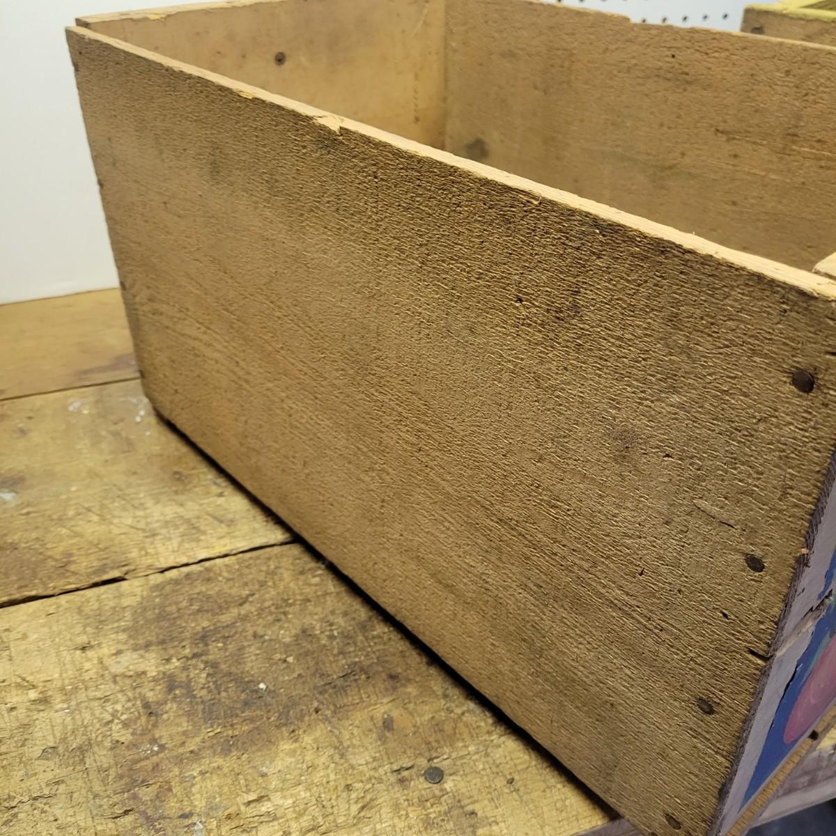 Five wooden crates in varying sizes, four appear to be vintage advertising crates. Included is a State of Washington crate, one labeled Canada Dry and another beef from Uruguay. Canada Dry crate measures approximately 16.5" x 11.5" x 12.5"H. Local pickup only