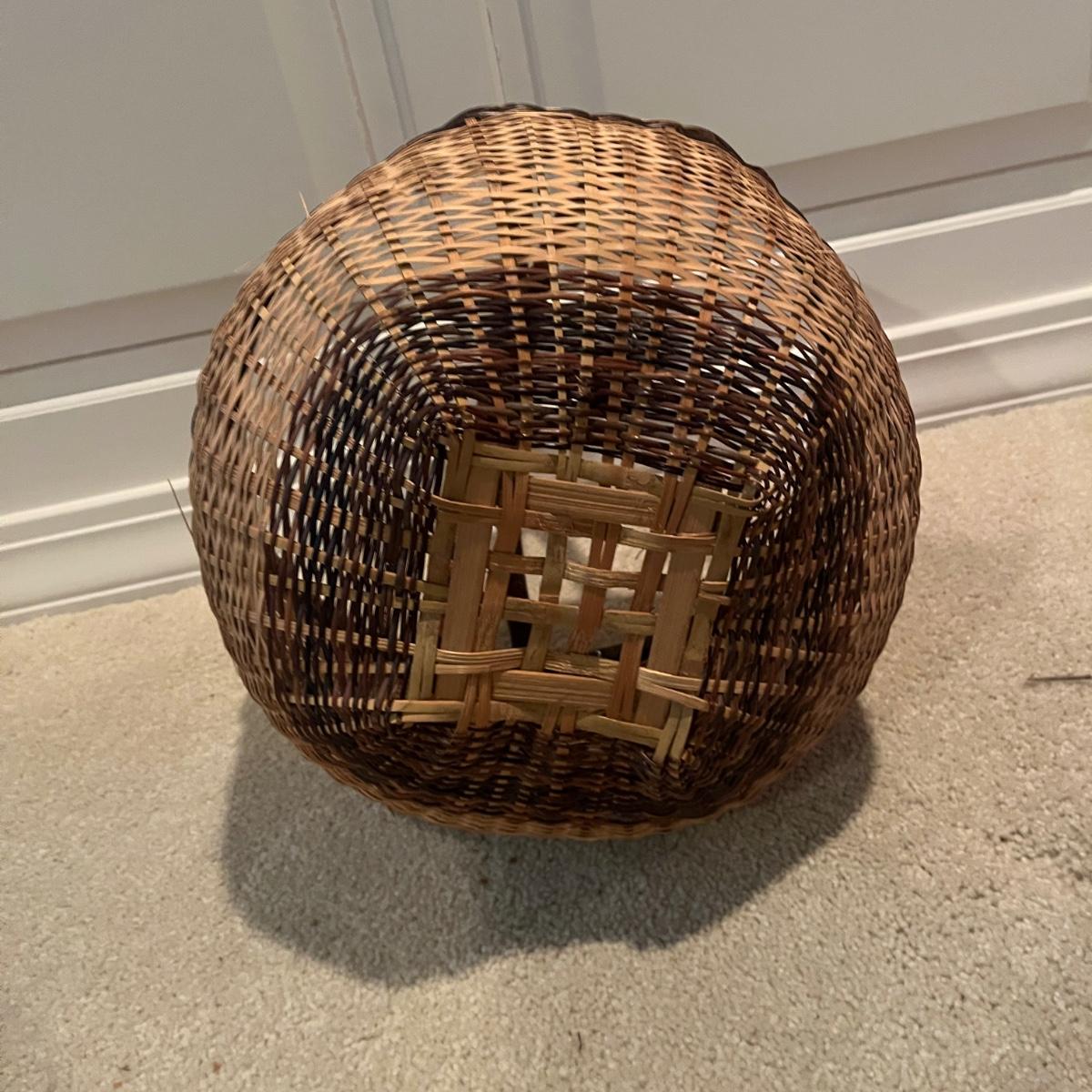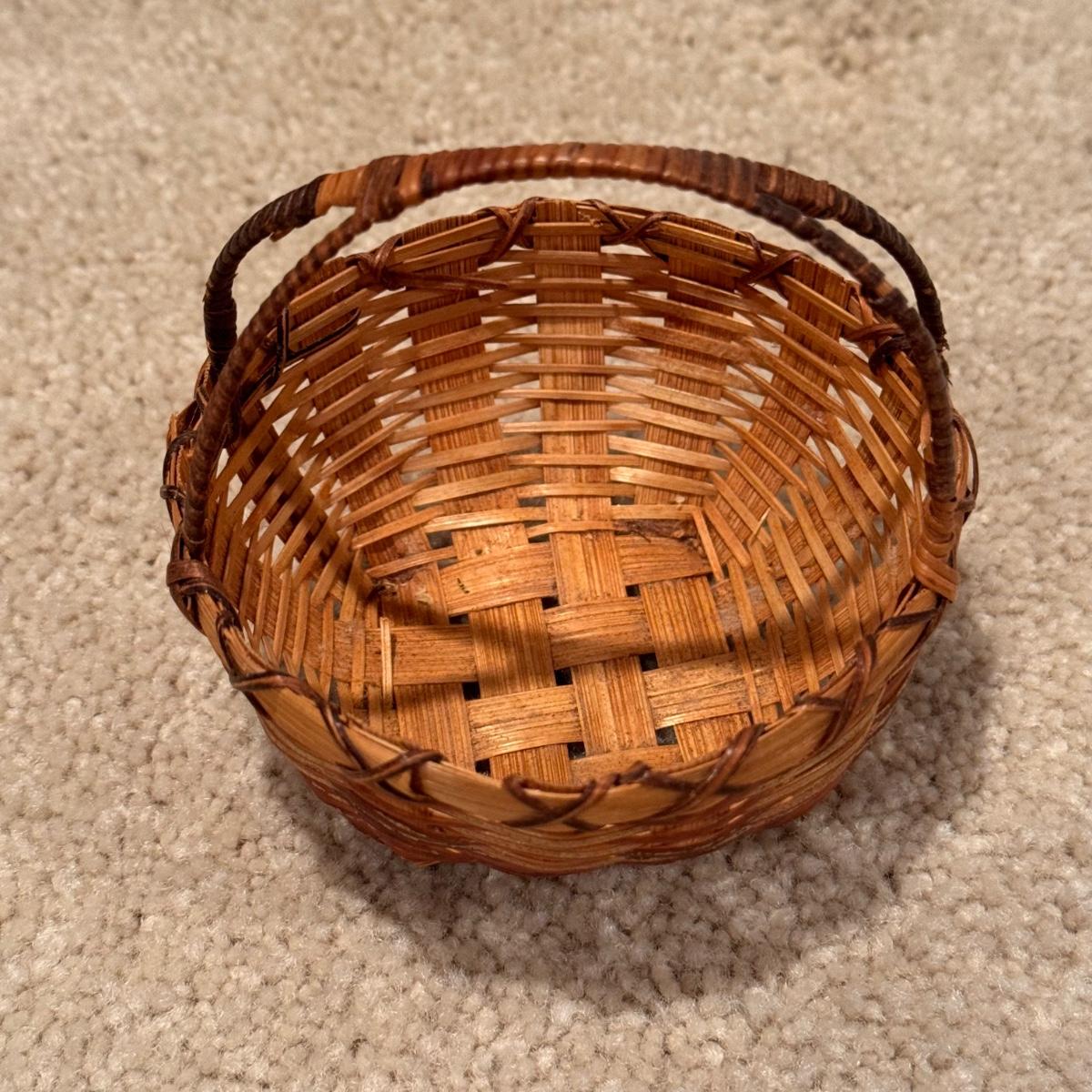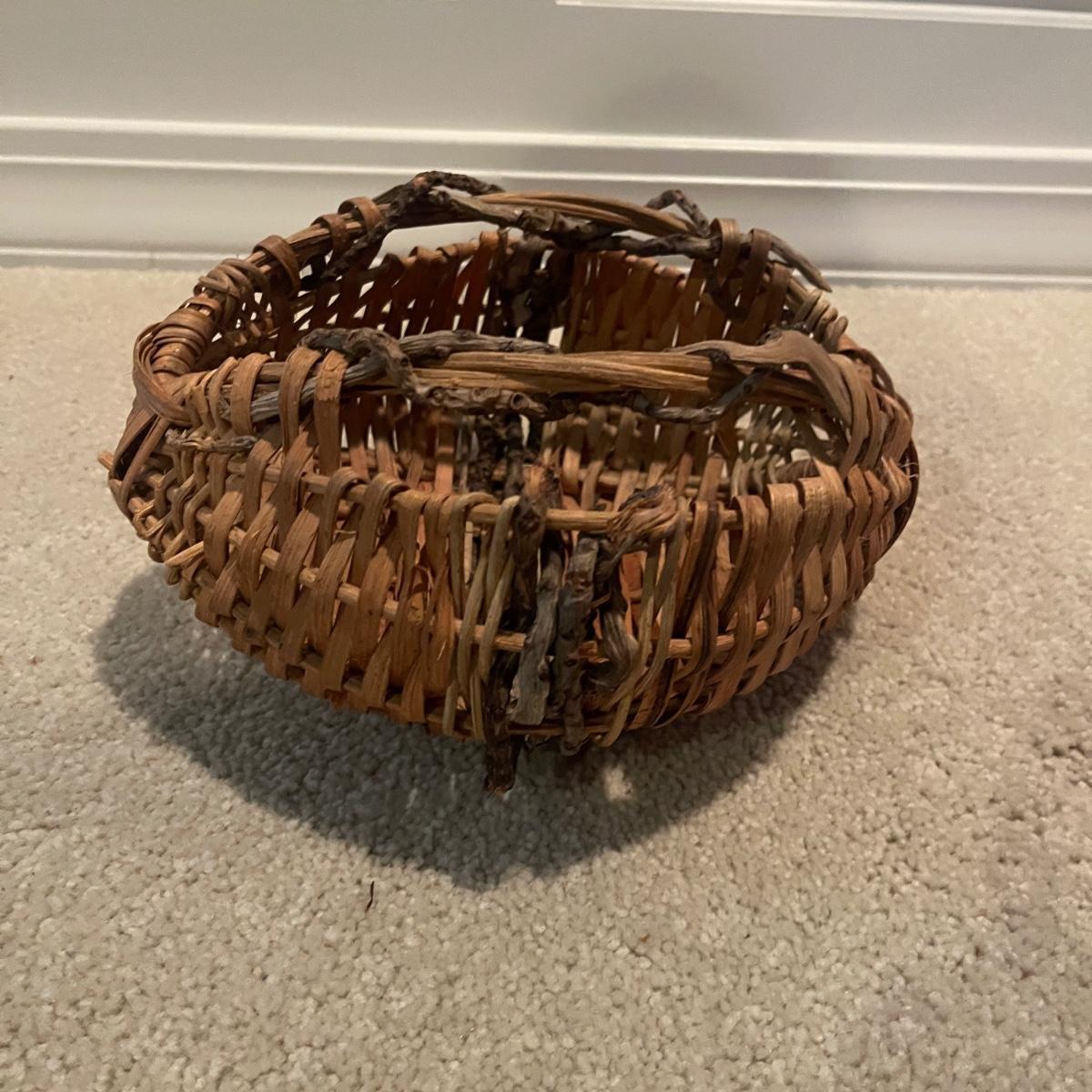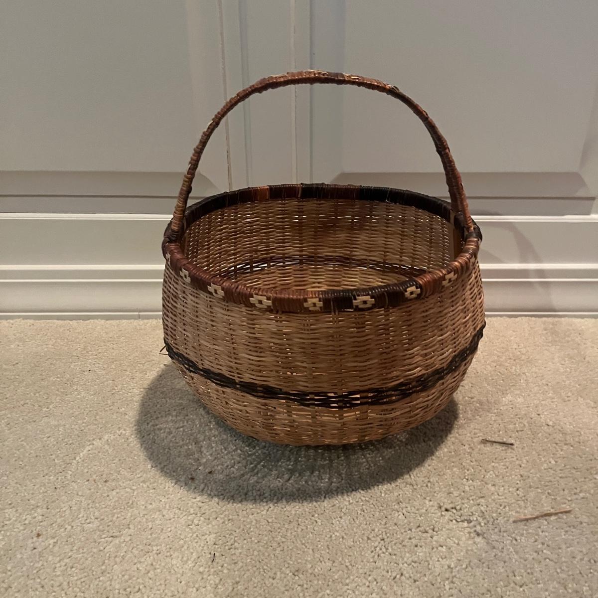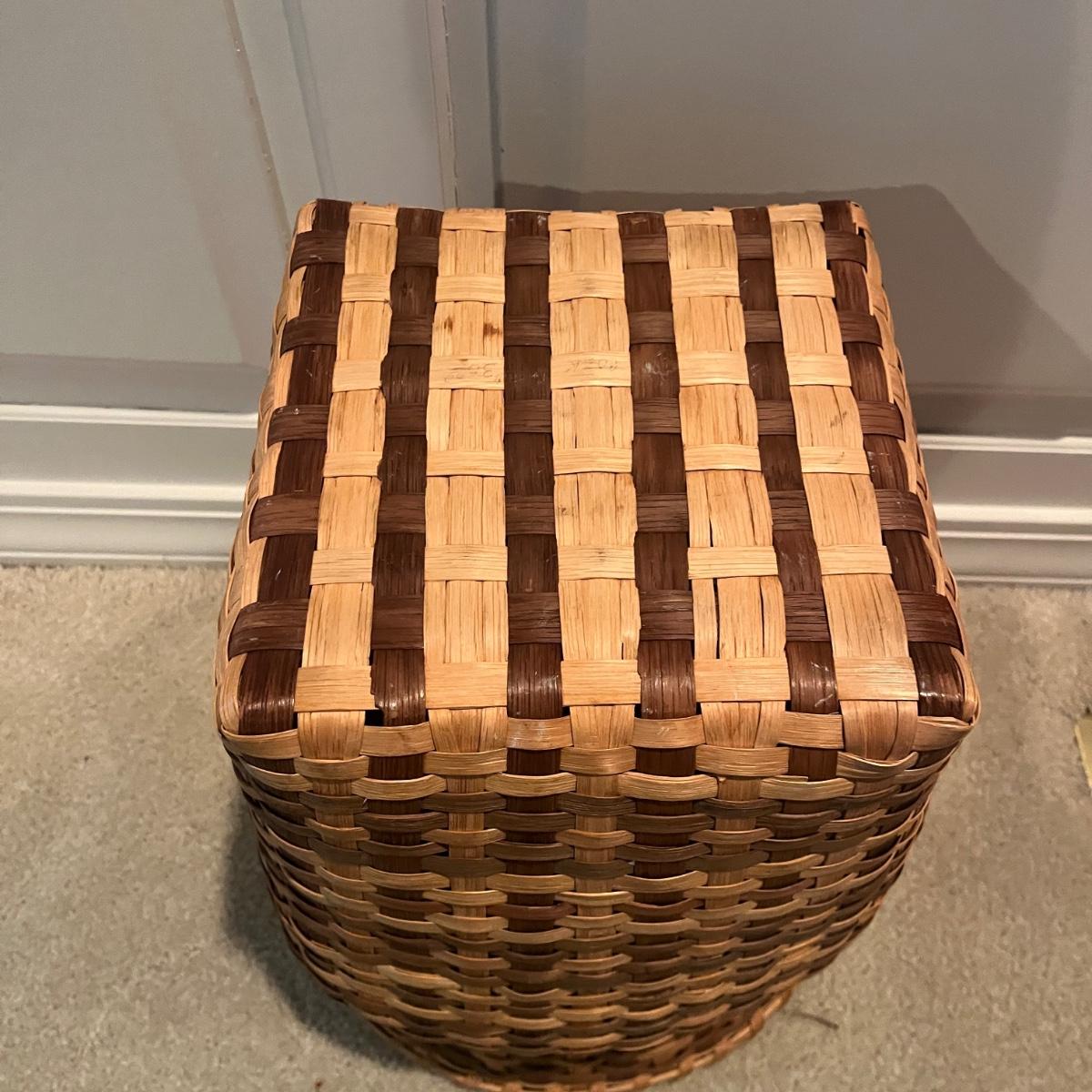 Lot includes five woven wicker baskets in a variety of sizes and shapes with the largest measuring 13”D x 16”H.
