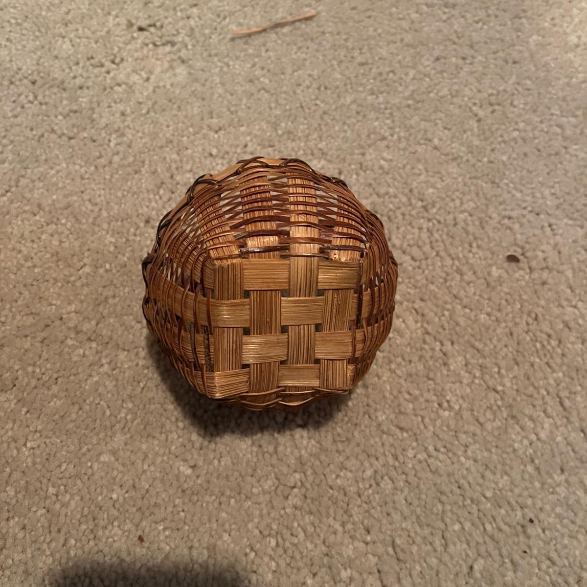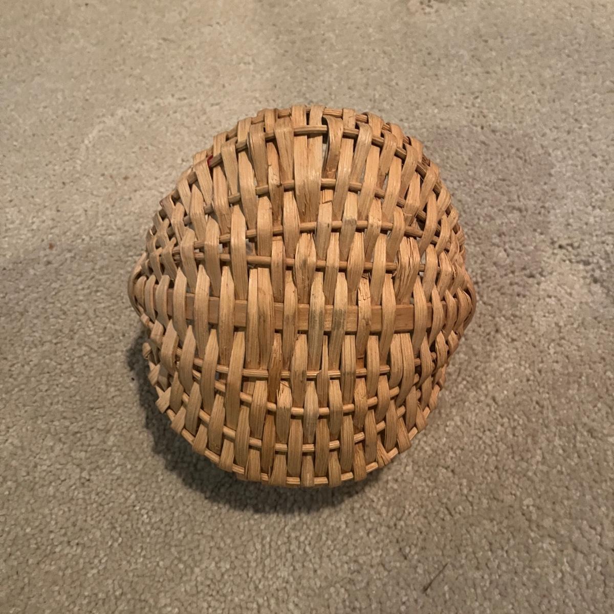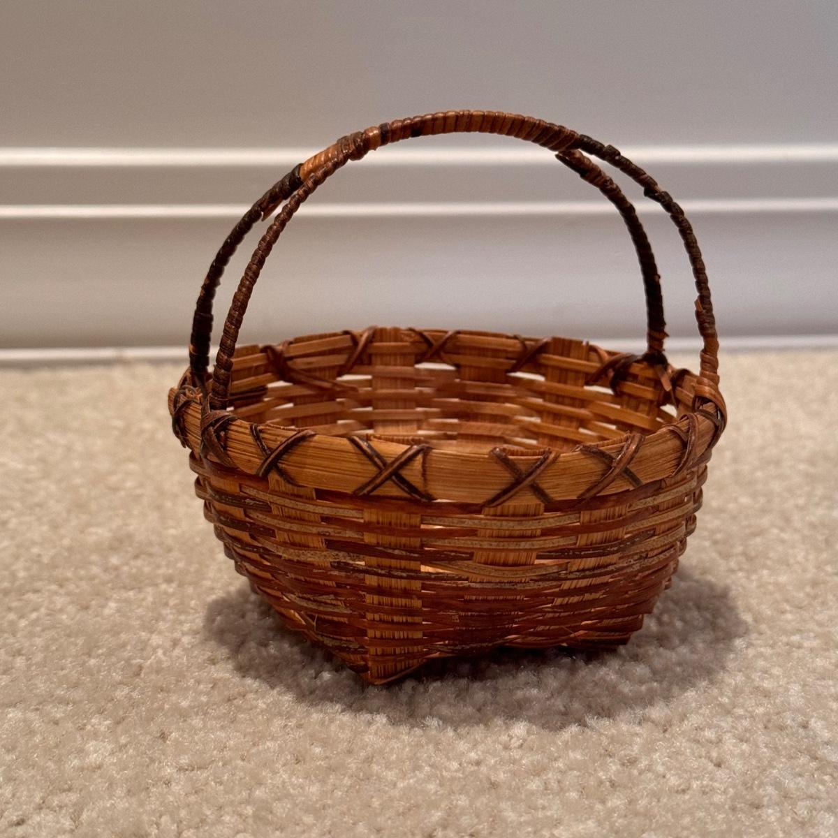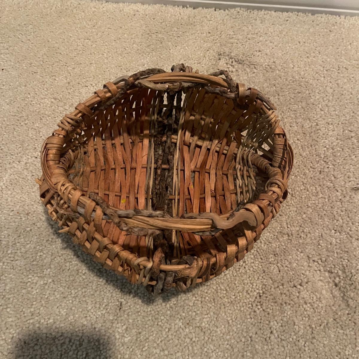 Lot includes five woven wicker baskets in a variety of sizes and shapes with the largest measuring 13”D x 16”H.