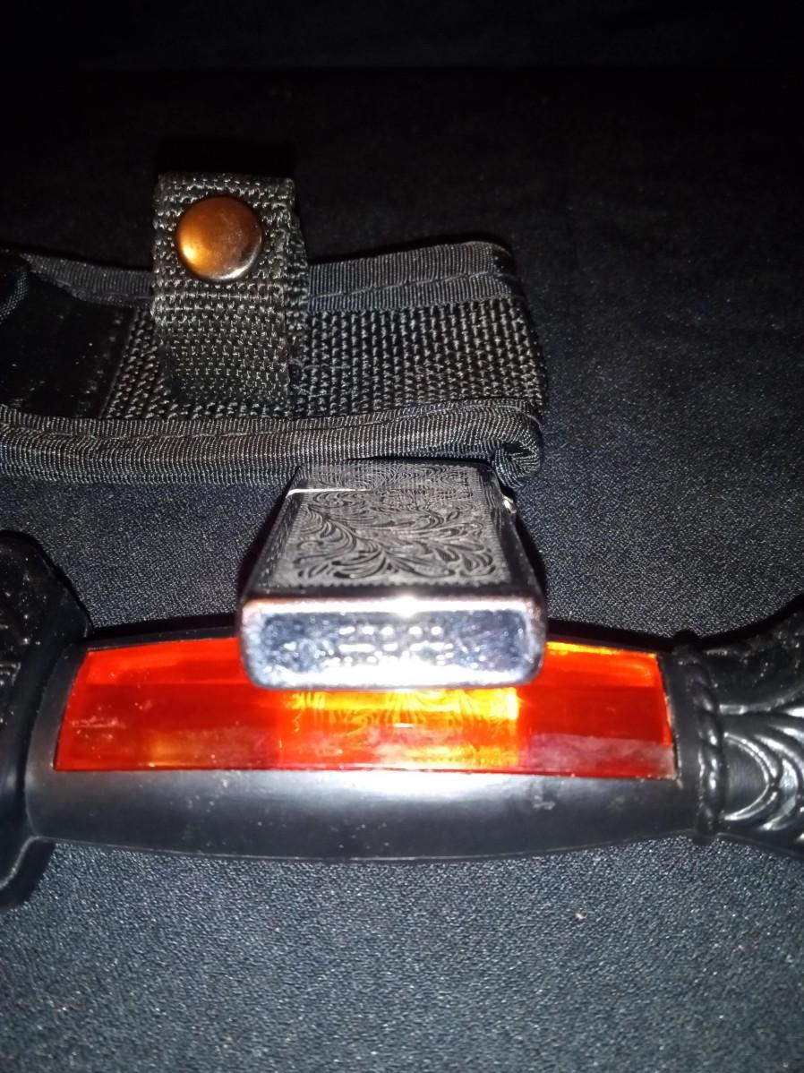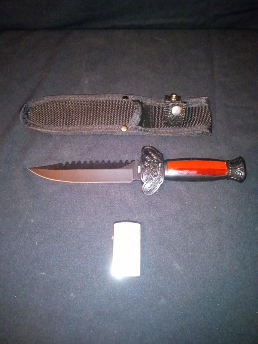 FIXED BLADE KNIFE WITH SHEATH AND A ZIPPO LIGHTER