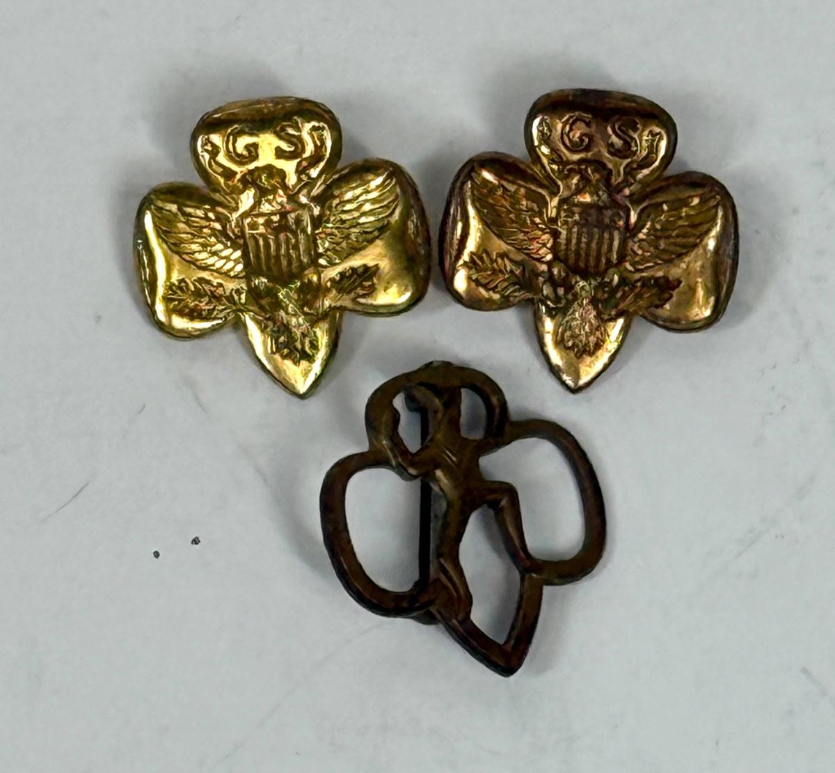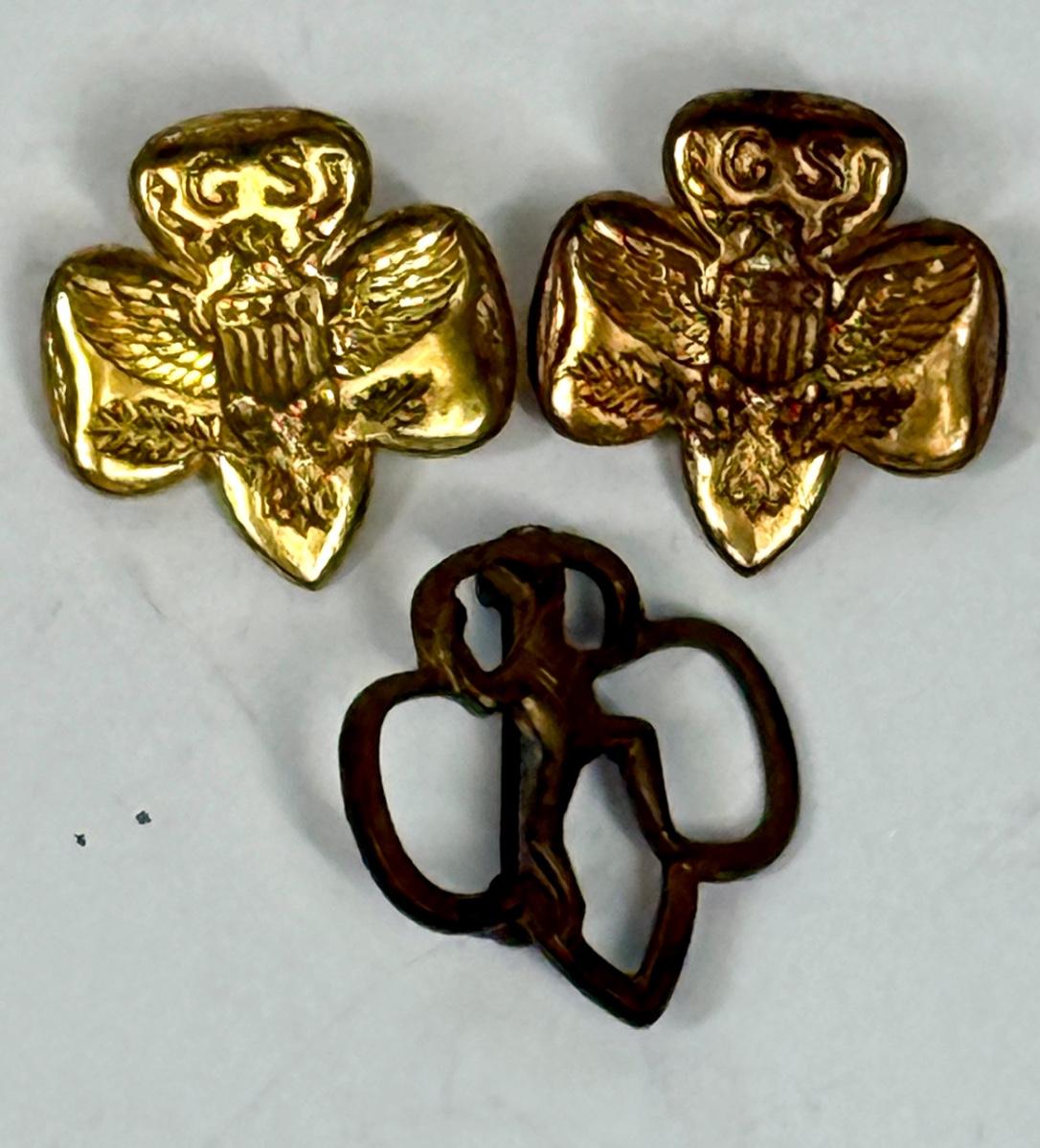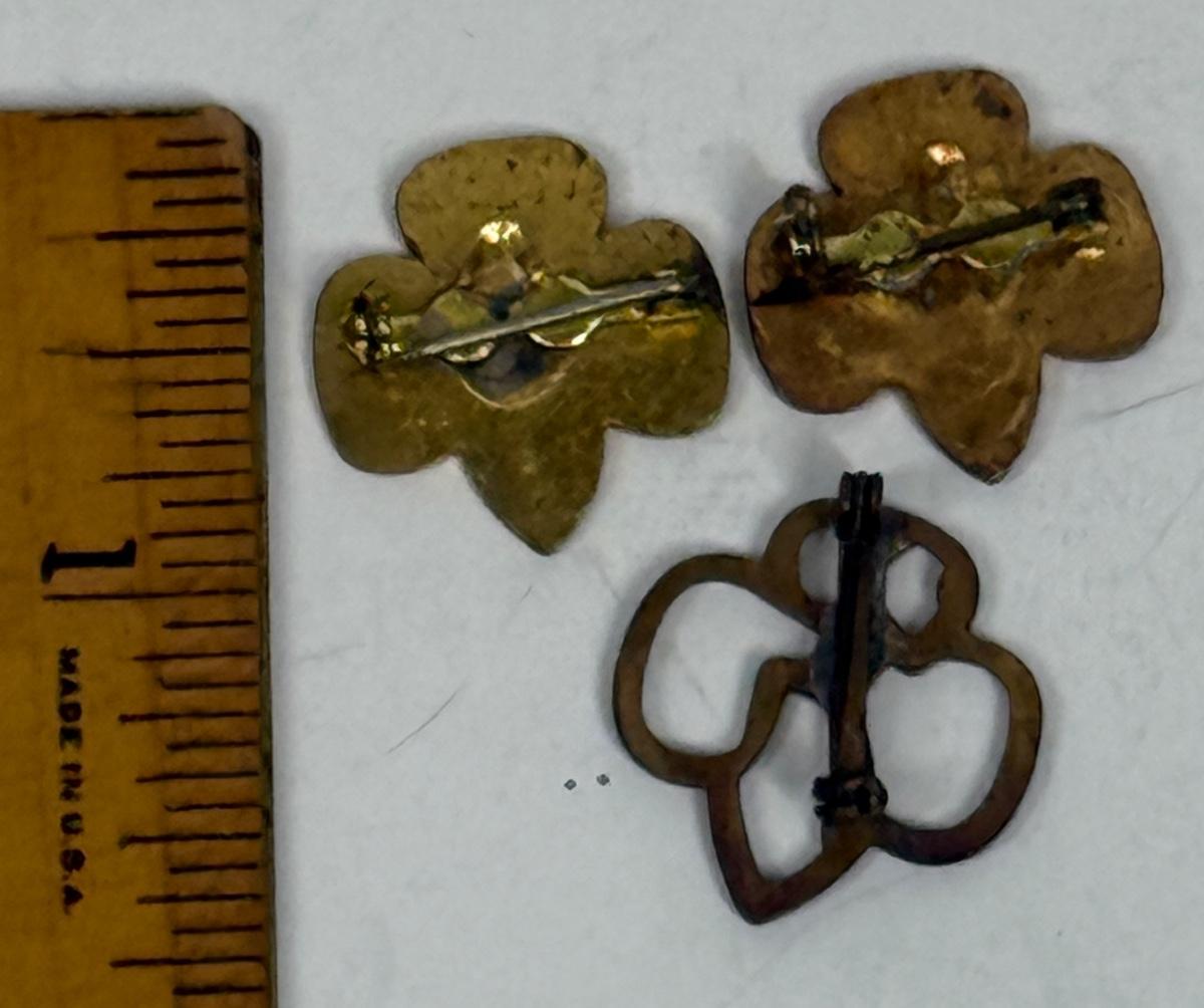 3 pc Lot Vintage Girl Scout Pins - 2 Service Pins 1 Brownie Pin
