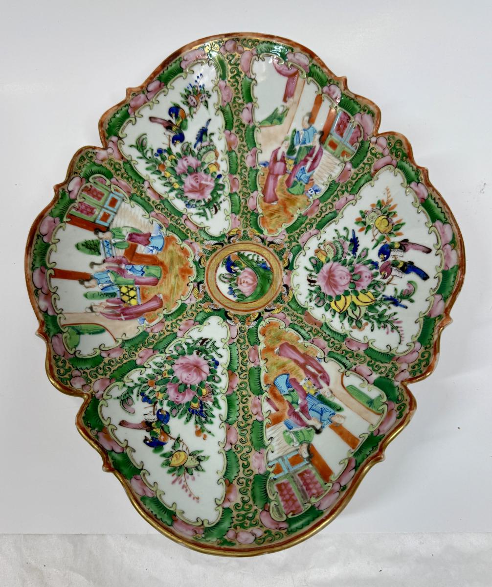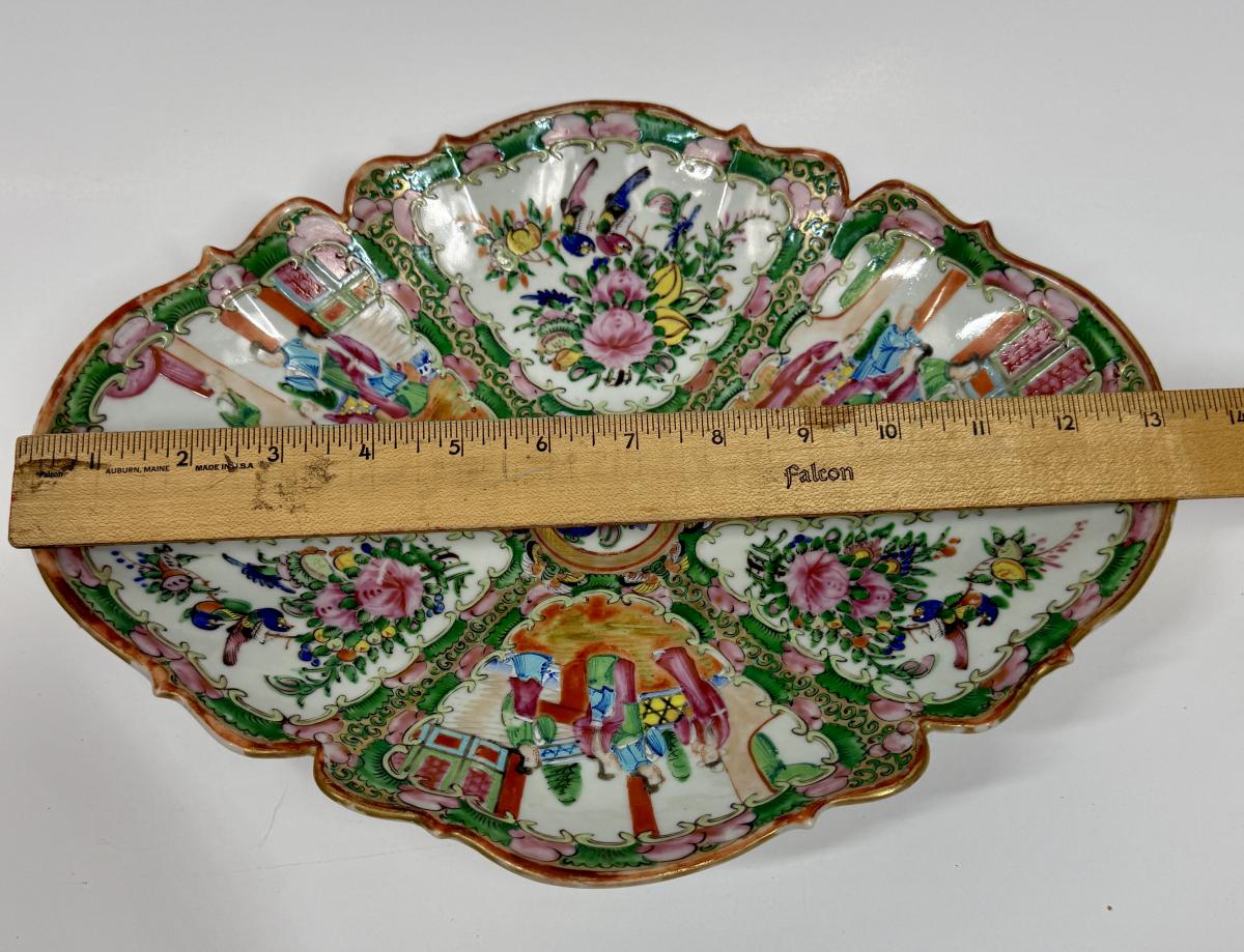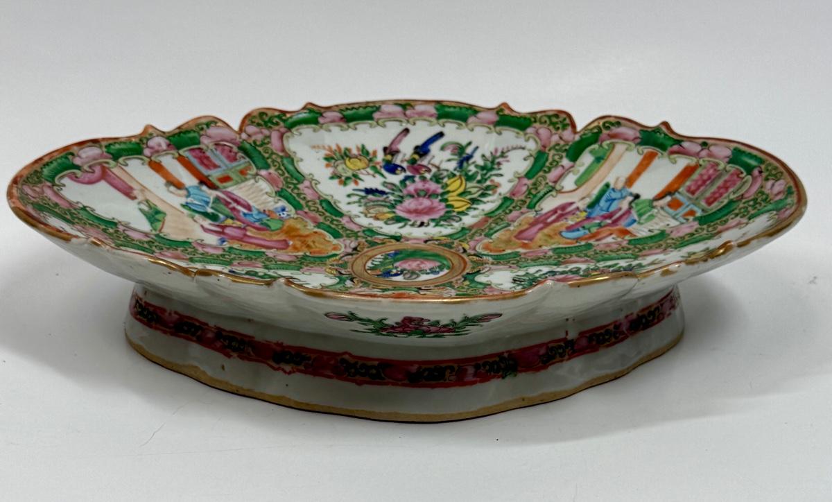 Antique c1880 Large Oval Chinese Export Rose Medallion Footed Centerpiece Bowl