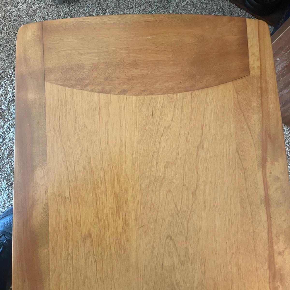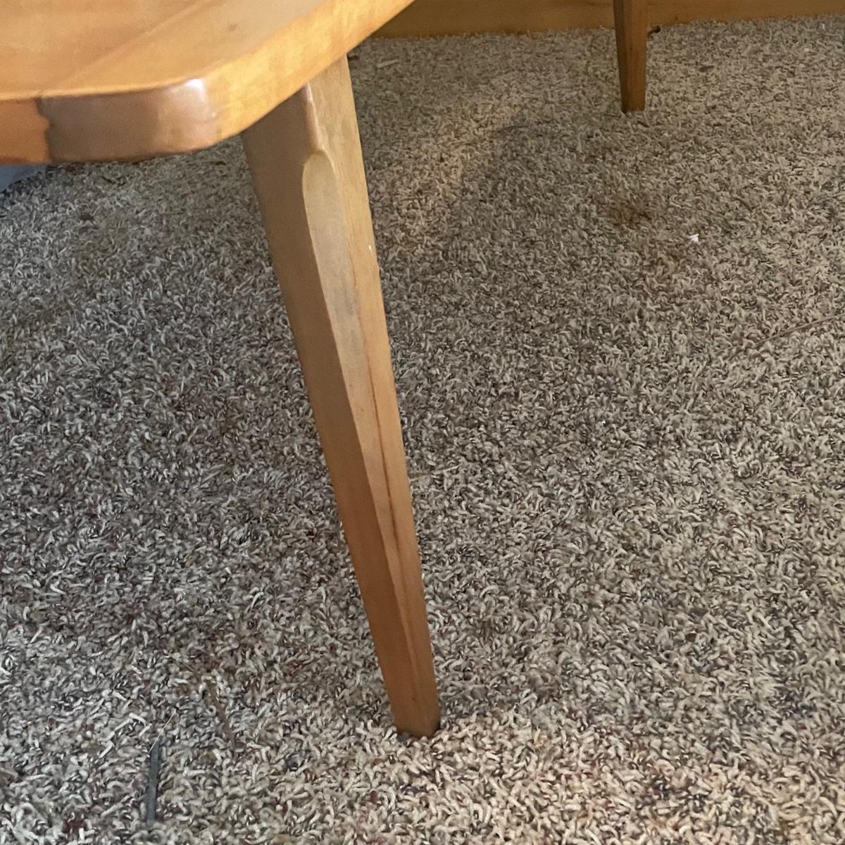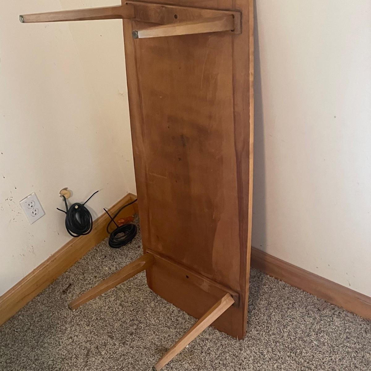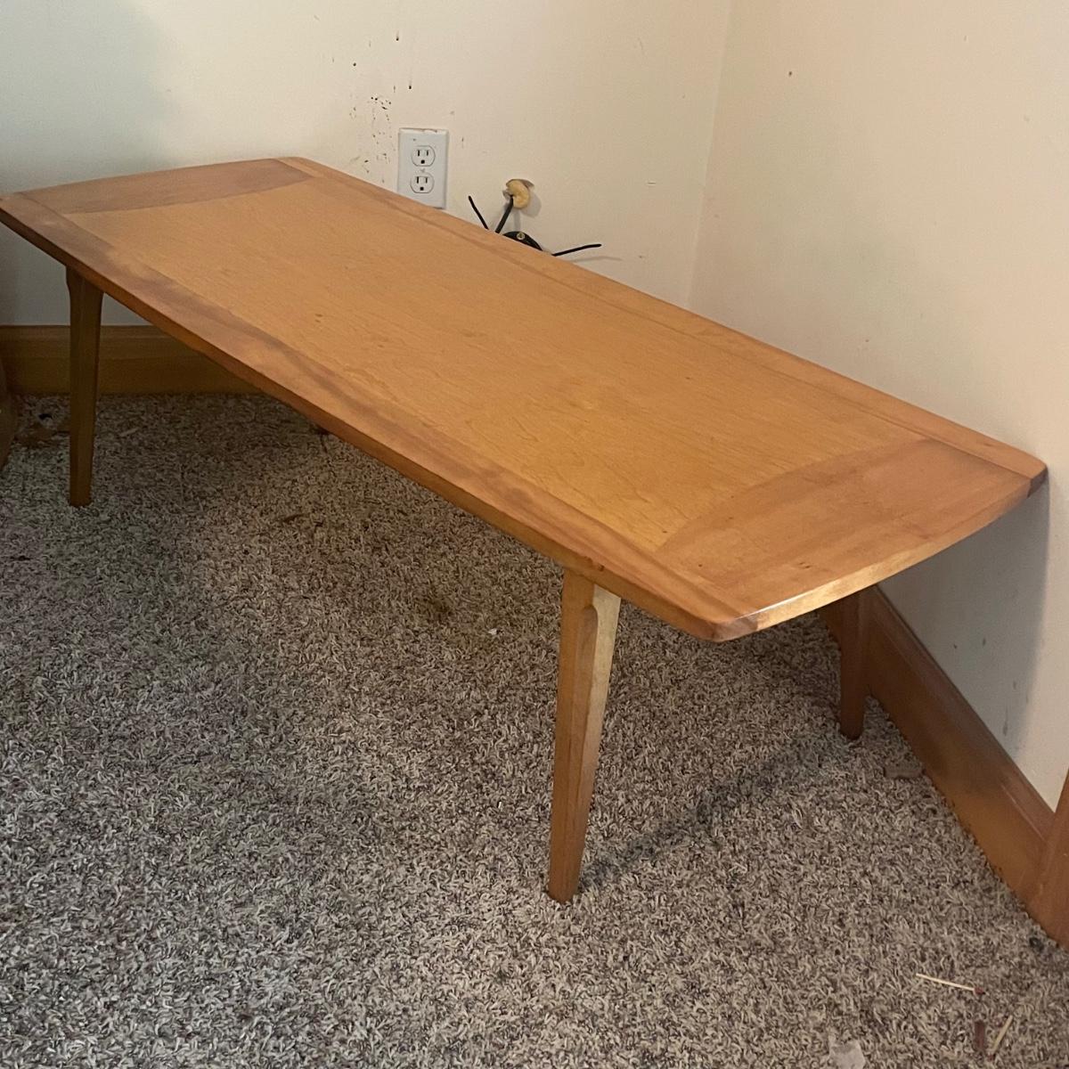 This sleek MCM solid wood table measures 19” x 48” x 14.5". Wood and finish are in good condition.