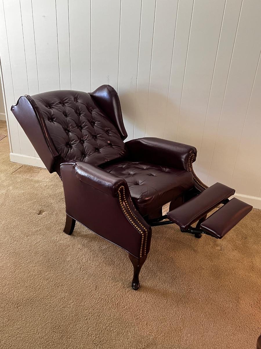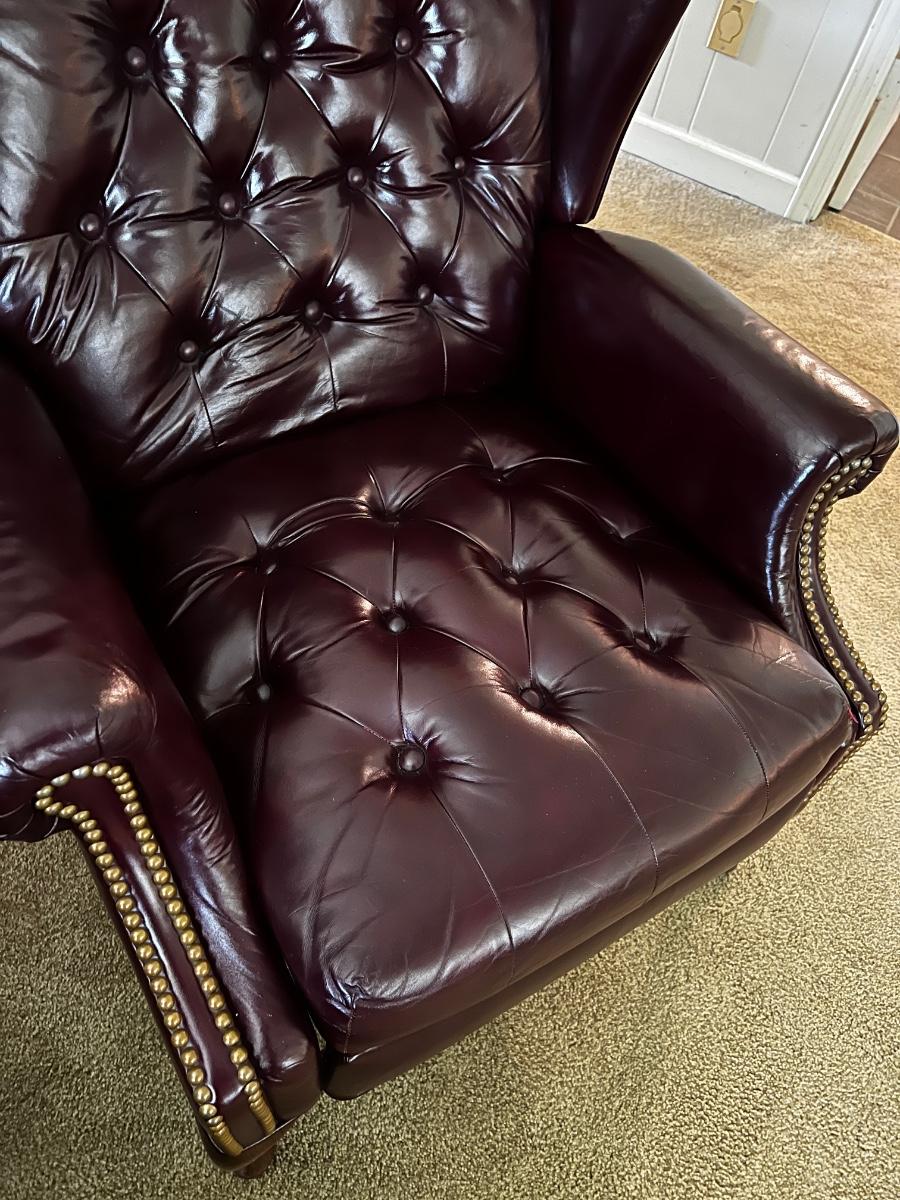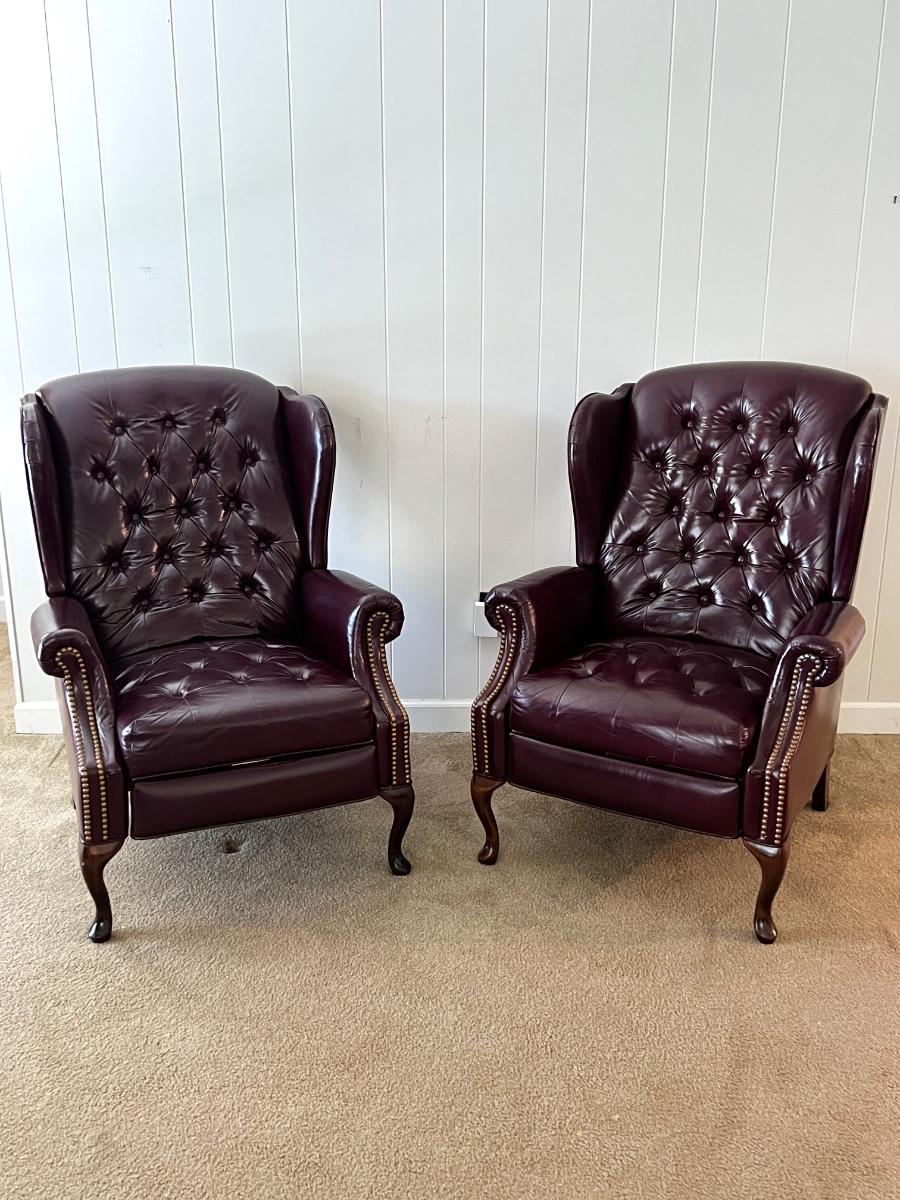 ACTION BY LANE ~ Pair Of Leather Tufted / Nail Head Wingback Reclining Chairs ~ *Read Details