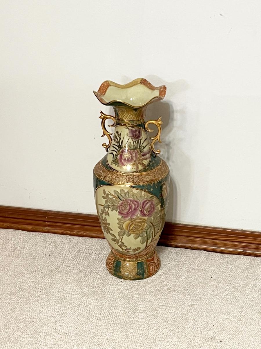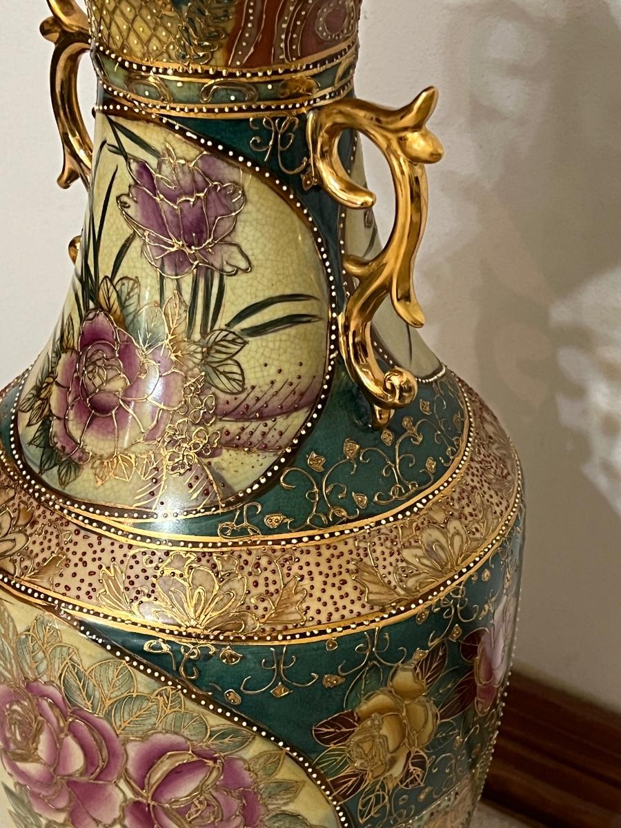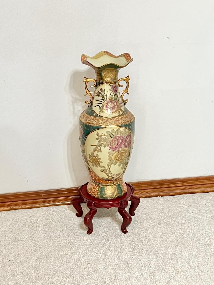 SATSUMA ~ Large 24" Porcelain Oriental Vase & Cherry Pedestal