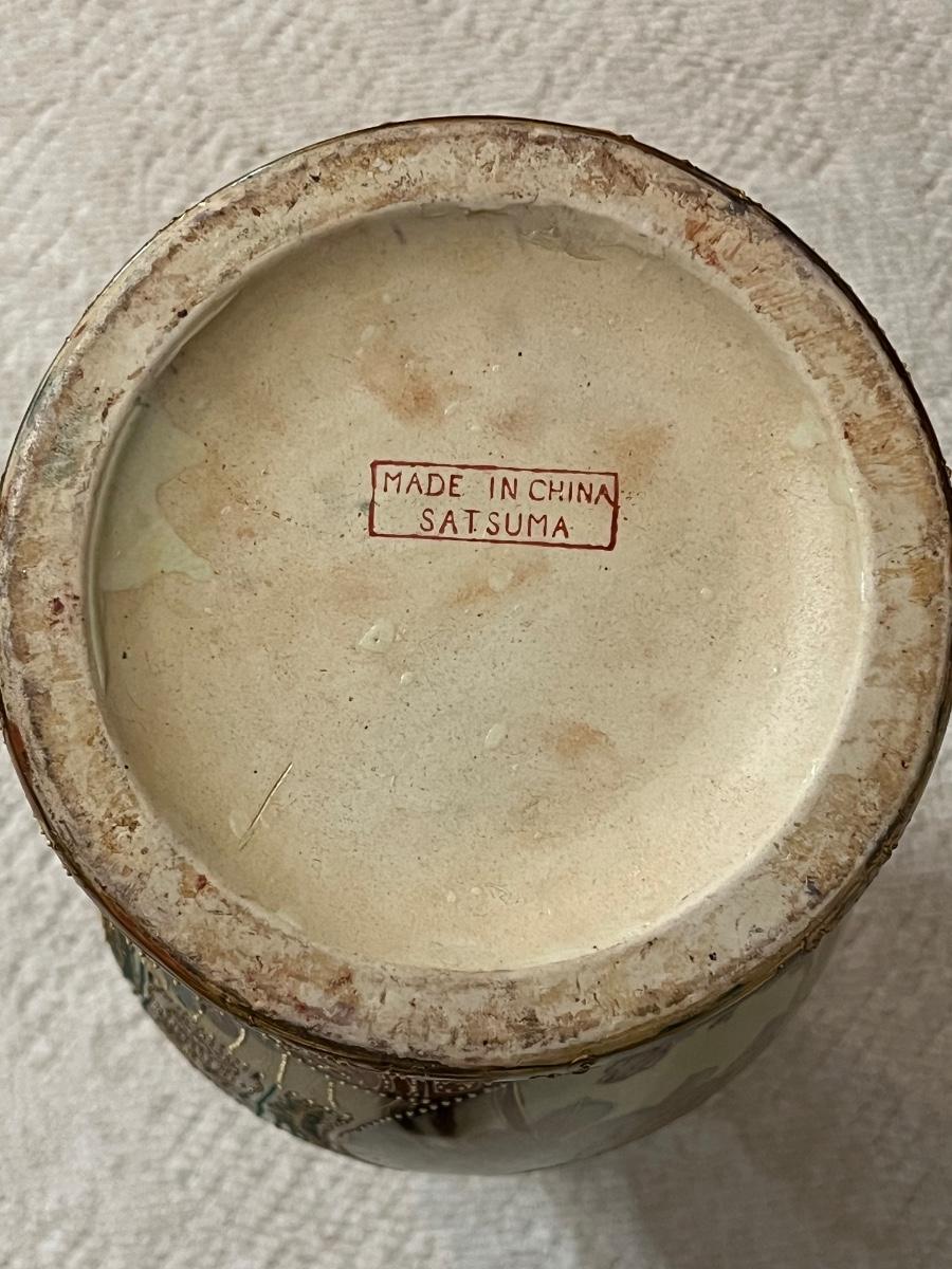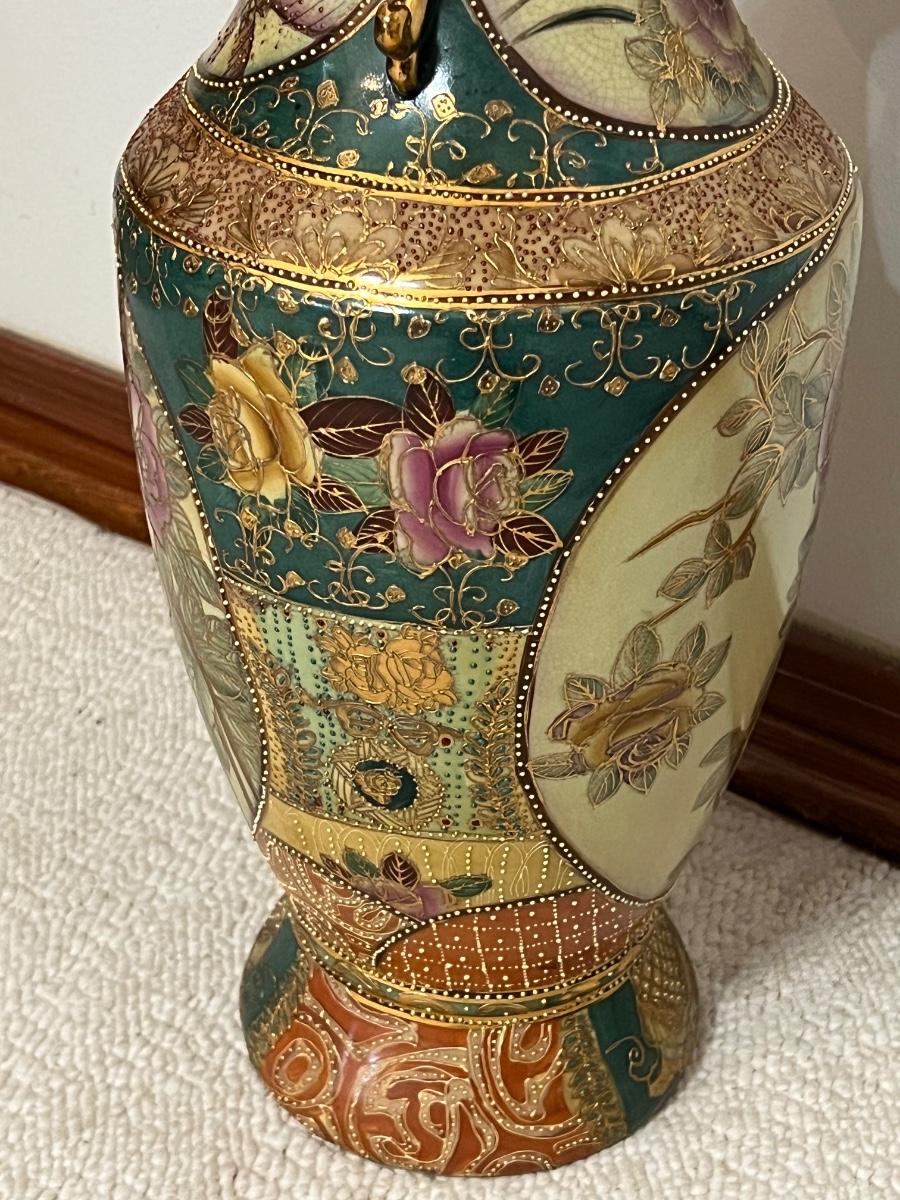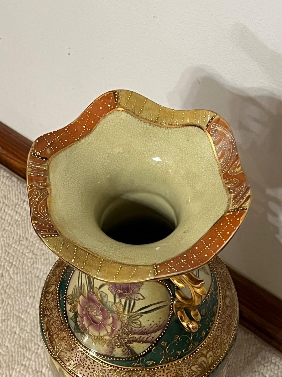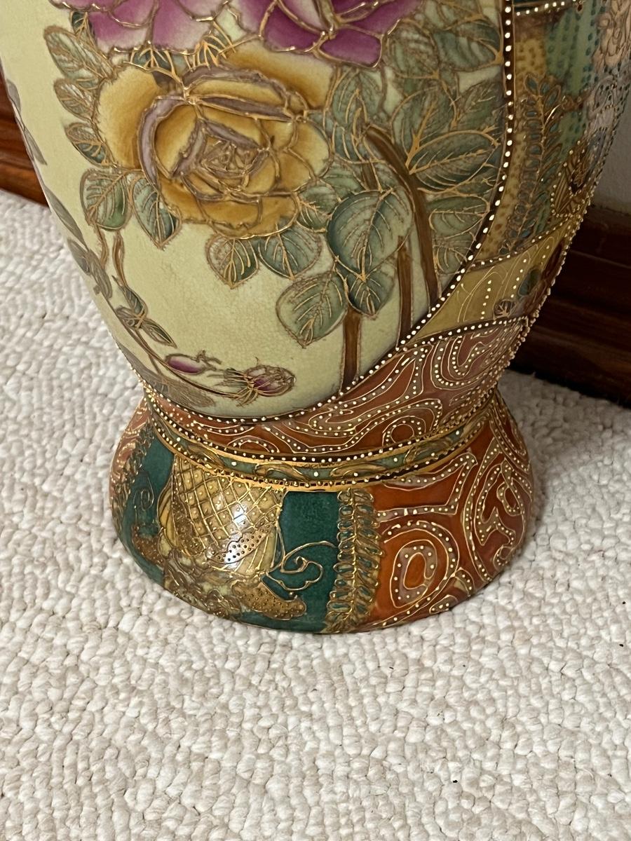 SATSUMA ~ Large 24" Porcelain Oriental Vase & Cherry Pedestal