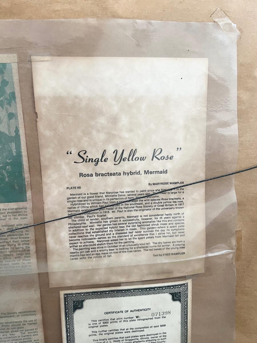 MARYROSE WAMPLER ~ “Single Yellow Rose” ~ Original Signed Framed Print ~ *Read Details