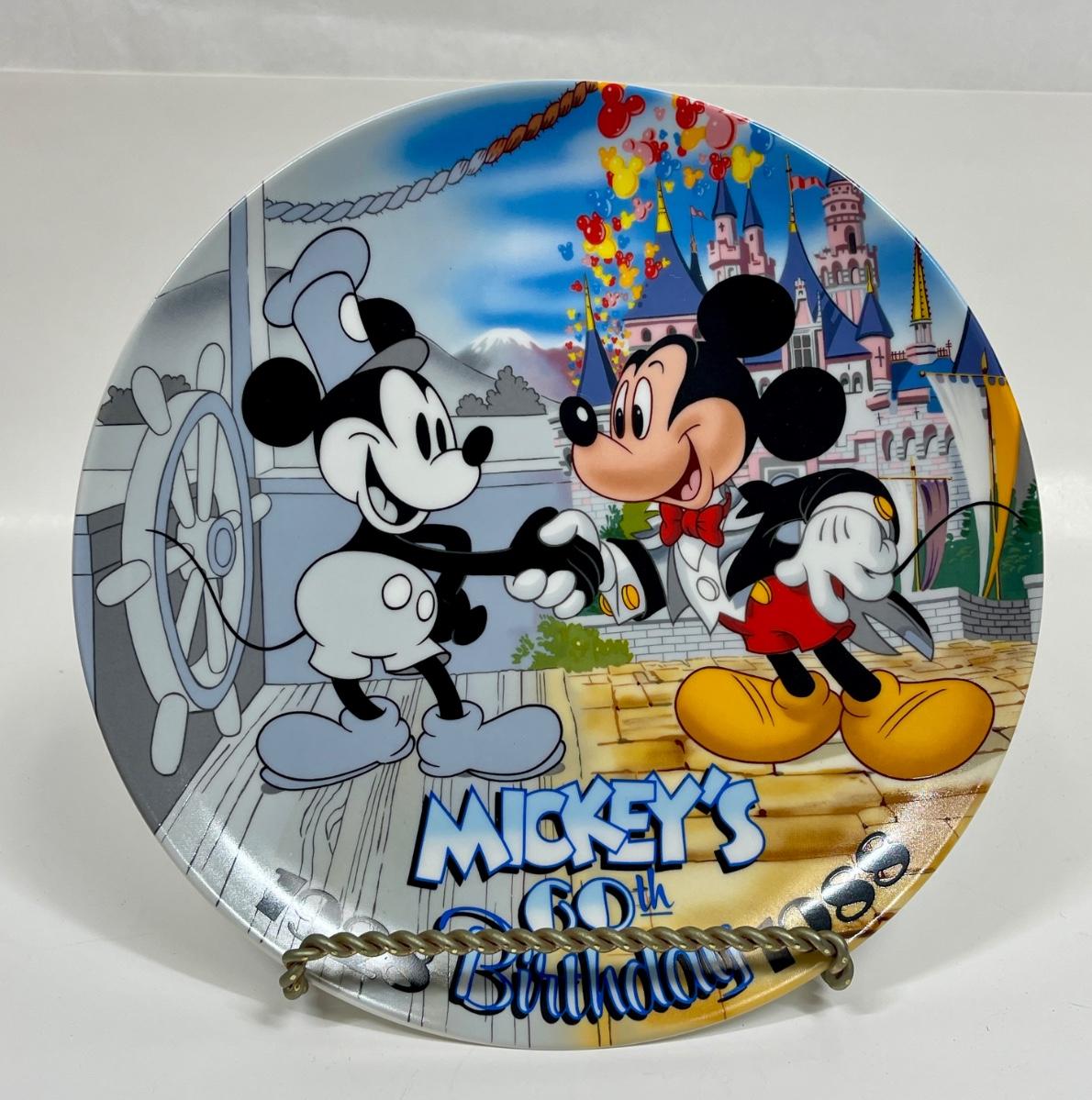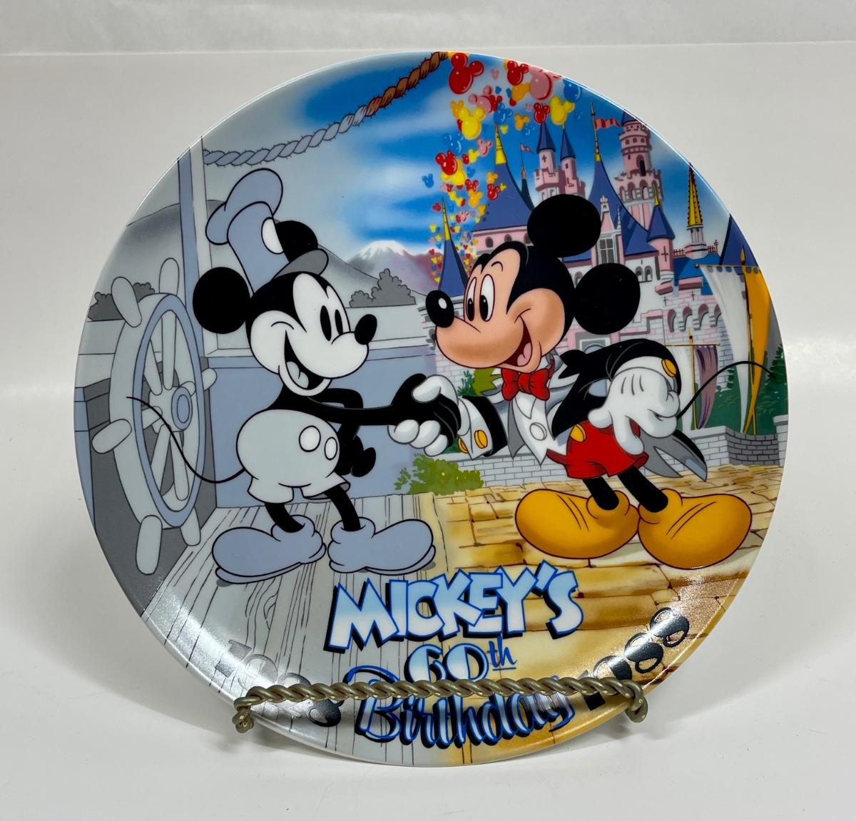Mickey's 60th Birthday Collector Plate Walt Disney Steamboat Willie Mouse Black & White Color