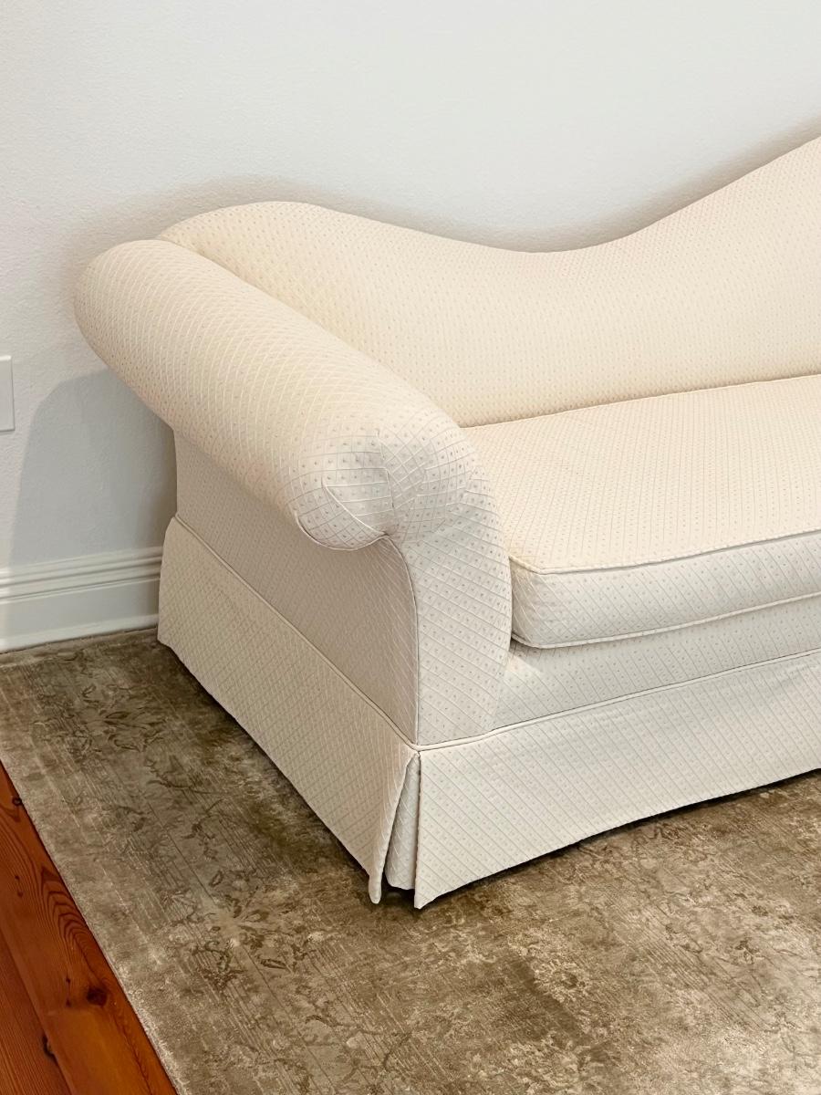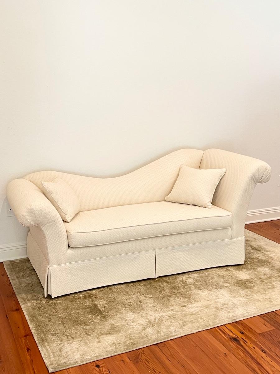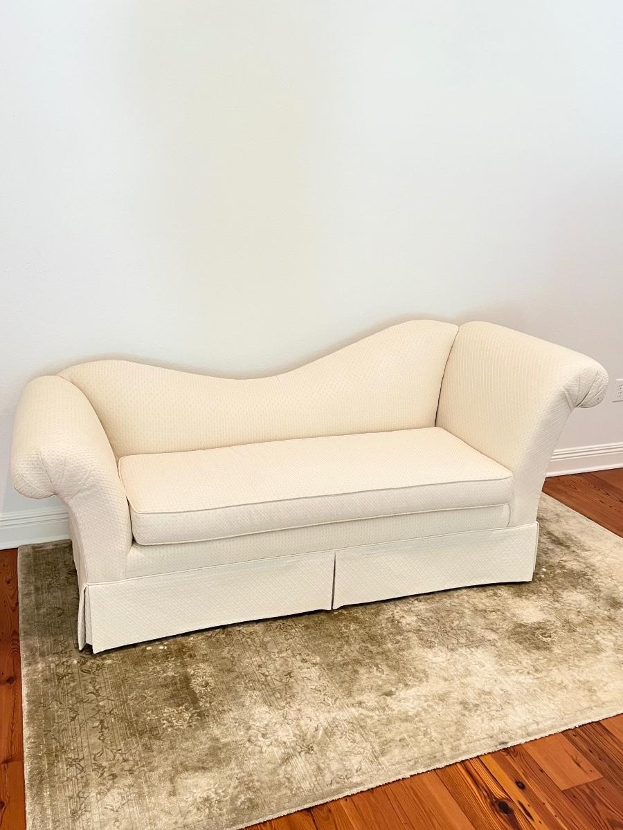 Has been disinfected, sanitized, & deodorized ~ Bottom cushion is removable ~ Has minor spot on cushion, see photo ~ 33” H x 77” W x 32” D ~ Rug sold separately