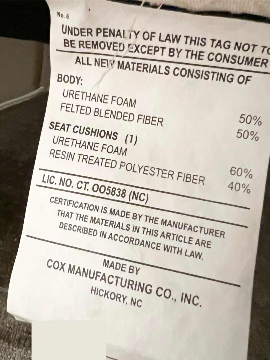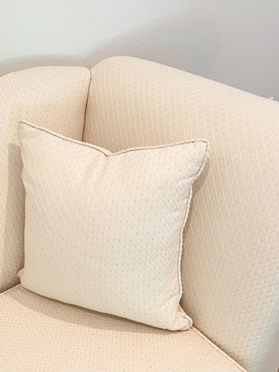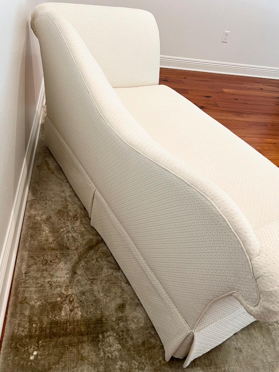 Has been disinfected, sanitized, & deodorized ~ Bottom cushion is removable ~ Has minor spot on cushion, see photo ~ 33” H x 77” W x 32” D ~ Rug sold separately
