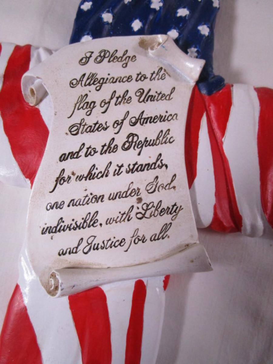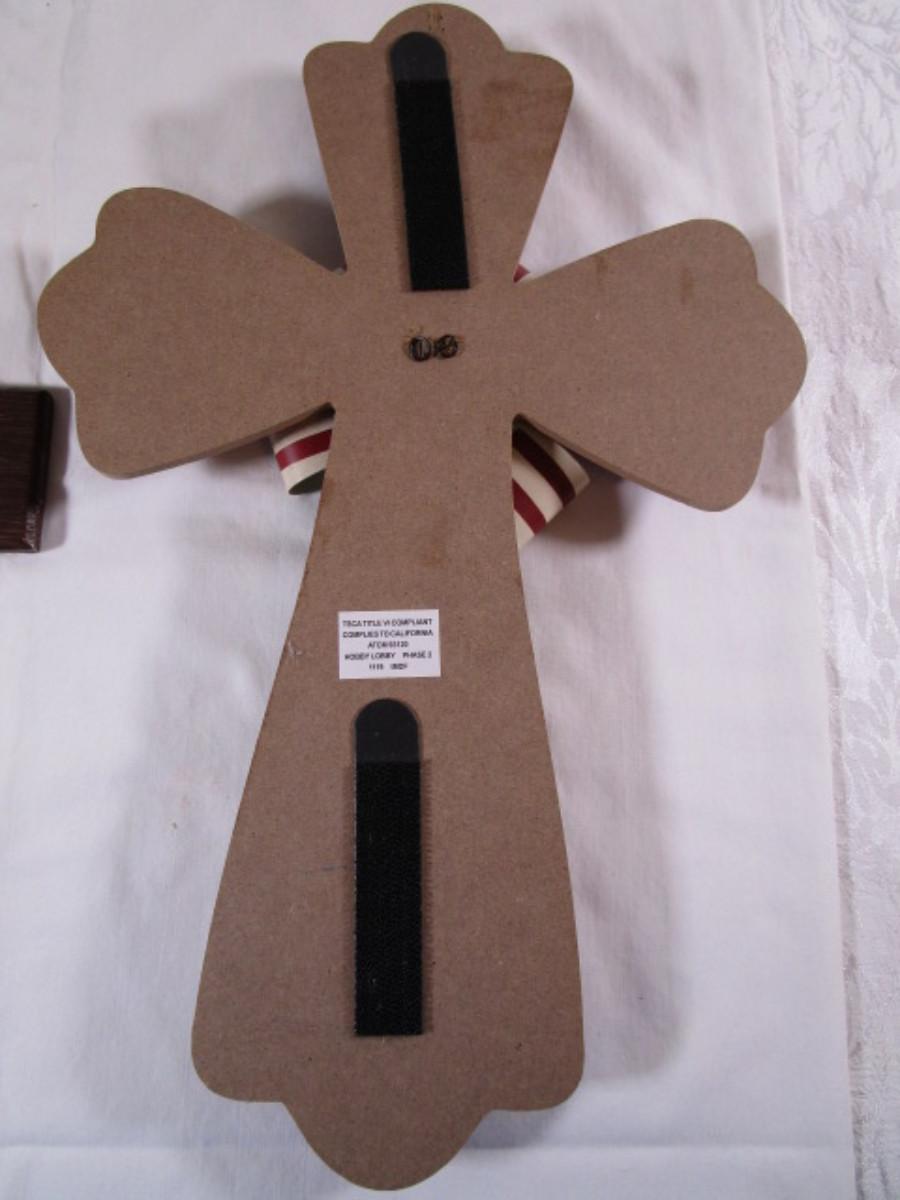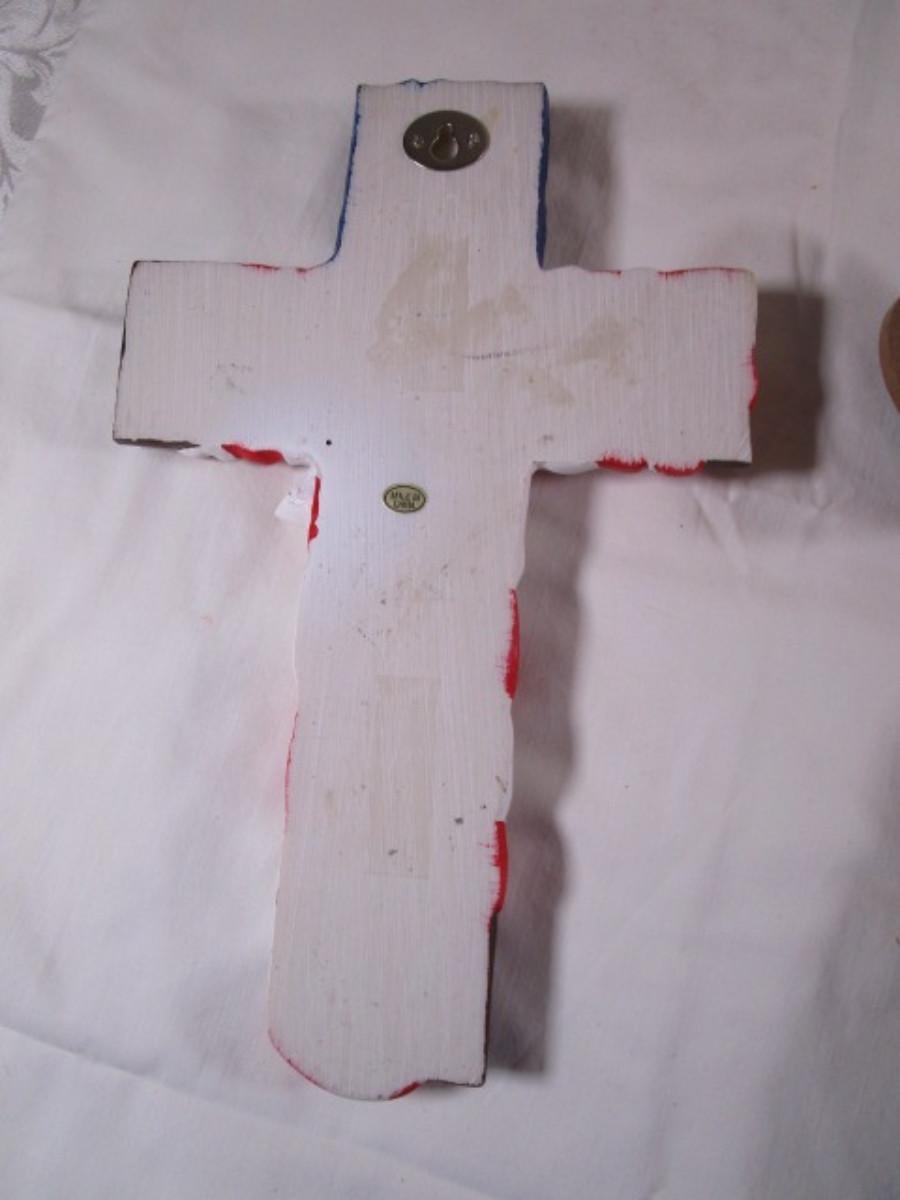 Flag cross 11-1/4" x 7-1/4" & has Pledge of Allegiance on it; Red, White & Blue Cross 14-1/2" x 9-1/2"