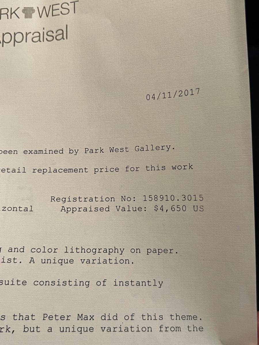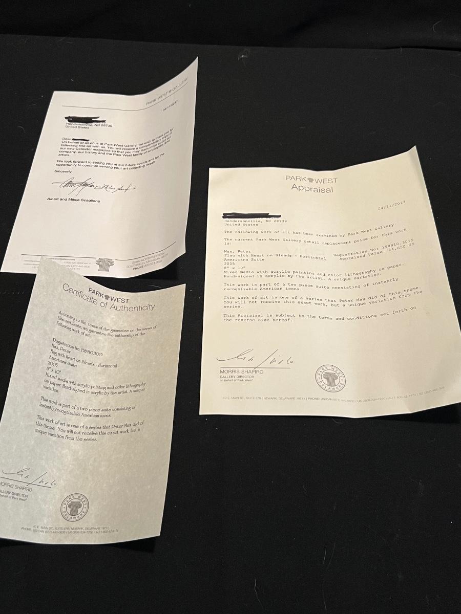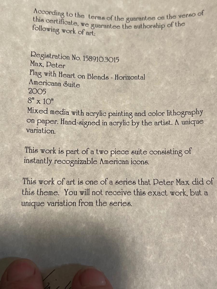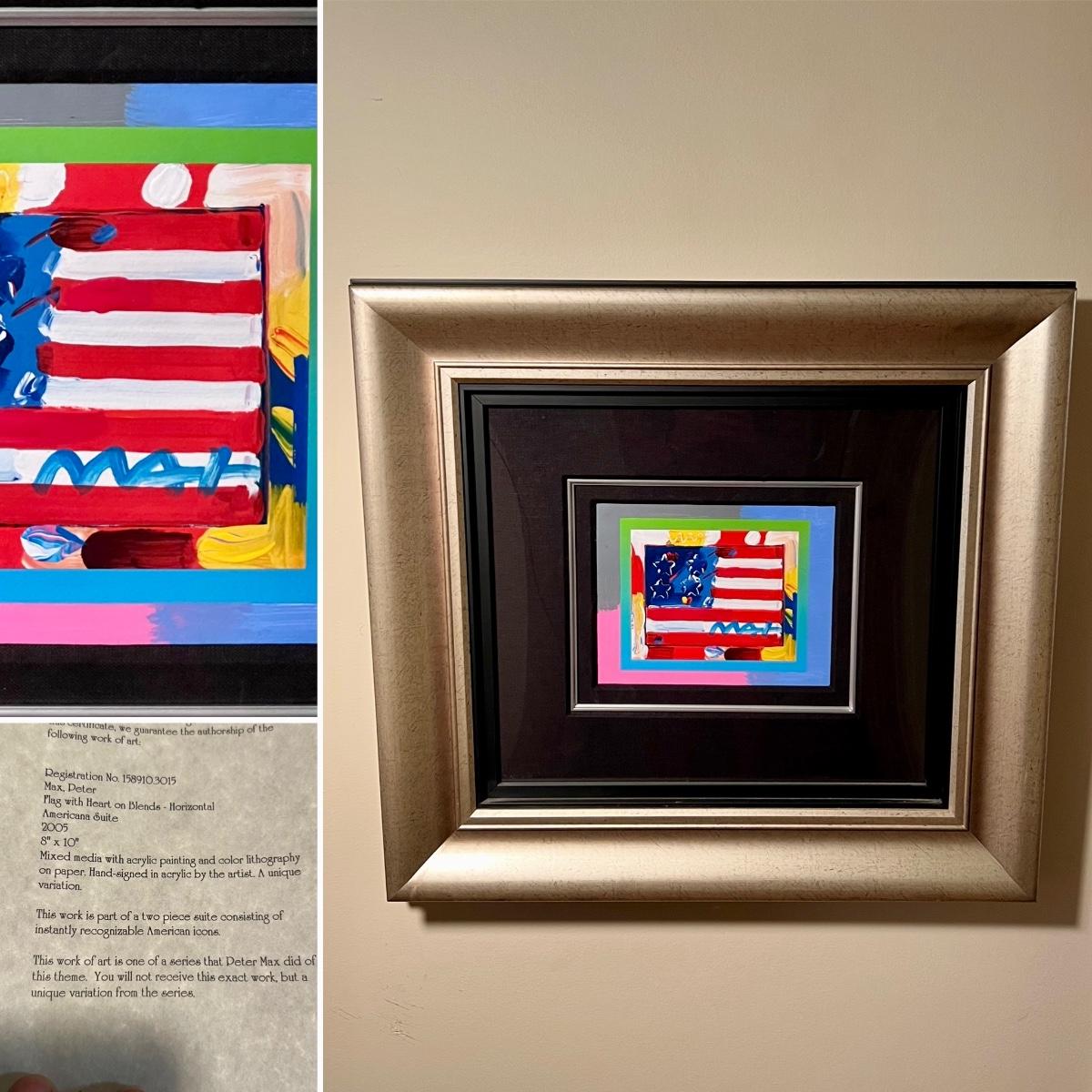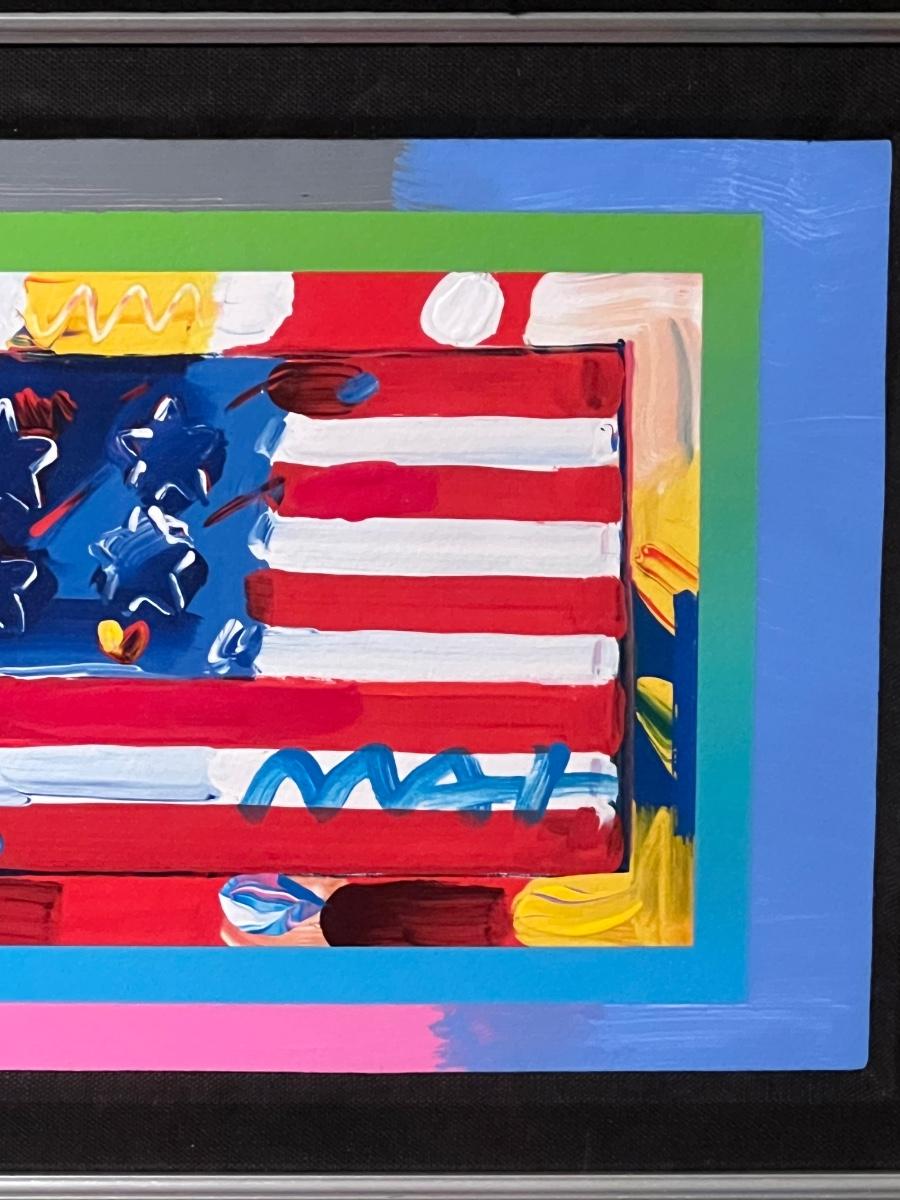 “Flag With Heart On Blends” By Peter Max - Inc. COA & Signed (H-RG)