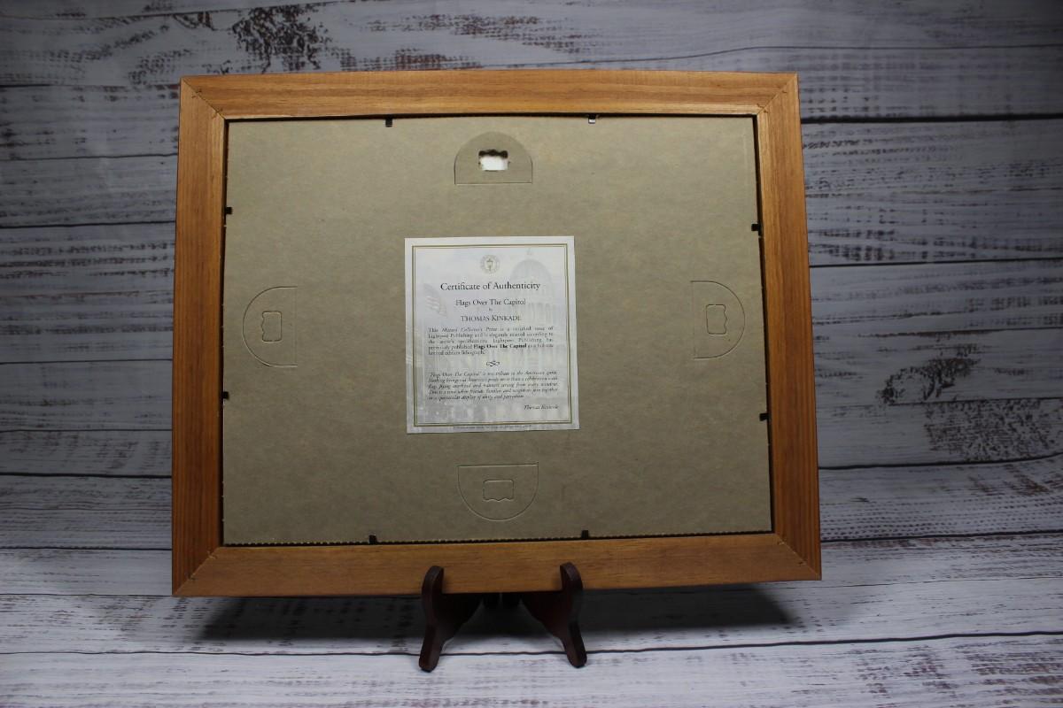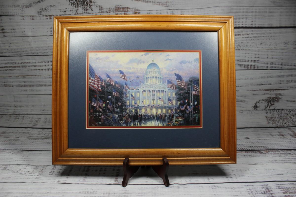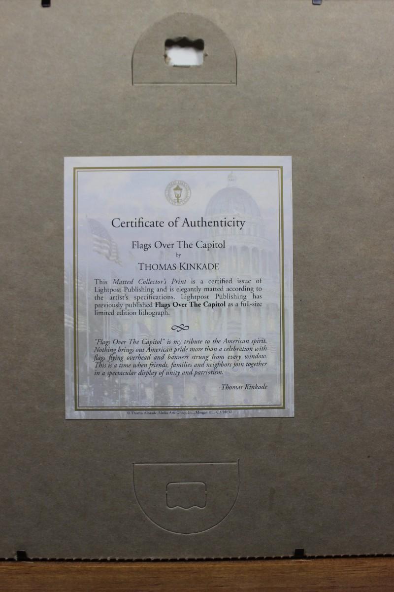 16.5 x 13.5 matted collector's of Flags Over the Captol by Thomas Kinkade. Print certified by Lightpost Publishing, there is no scratching or chipping on the glass and frame.