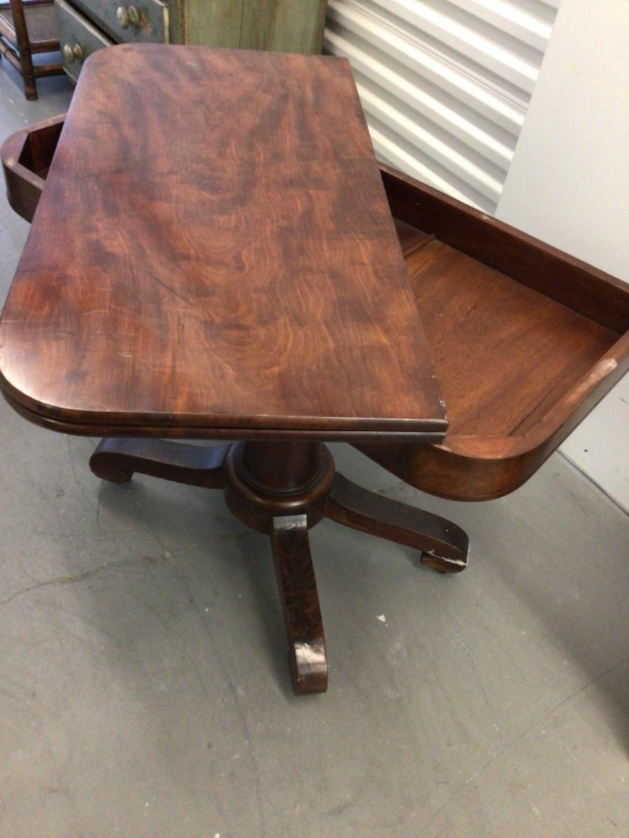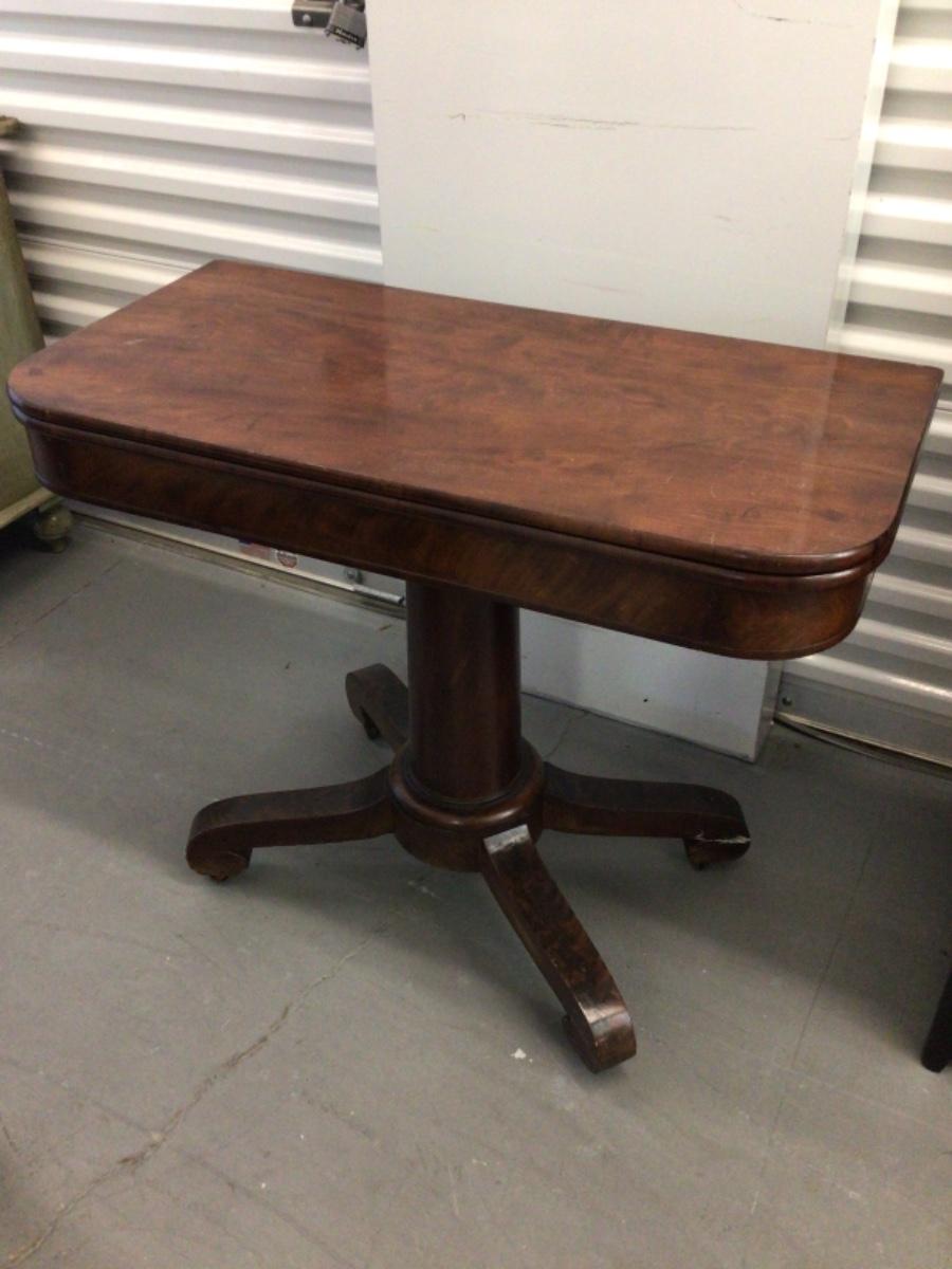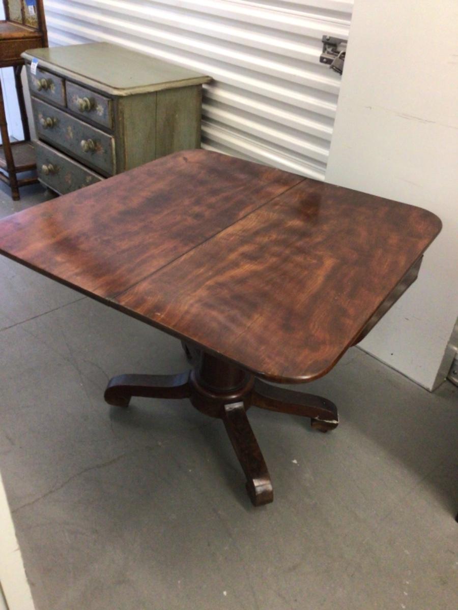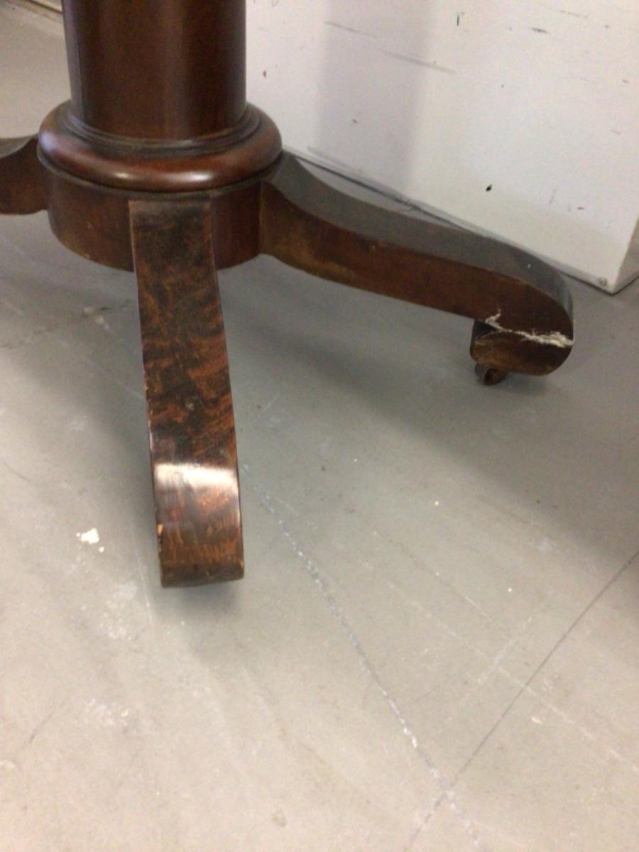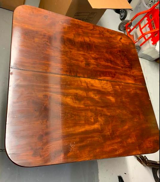 Repair to a foot (glued). Some scratches to surface. As is. 3ft wide x 18”d x 29”h when leaf is folded. Additional 18” deep when Table is fully open. This is a heavy item. You must bring help to move this item into your vehicle. Local delivery may be able available at cost to the buyer. If you need an item to be delivered then please coordinate with us once you have purchased the item. Pick Up of Purchased Items will be on Saturday the 16th at Morningstar Storage in Bluffton, SC. 1110 Fording Island Rd, Bluffton, SC 29910. At the end of the sale todayI will send out a SignUpGenius link to the winning bidder to schedule your your pick up time along with a contact phone number.