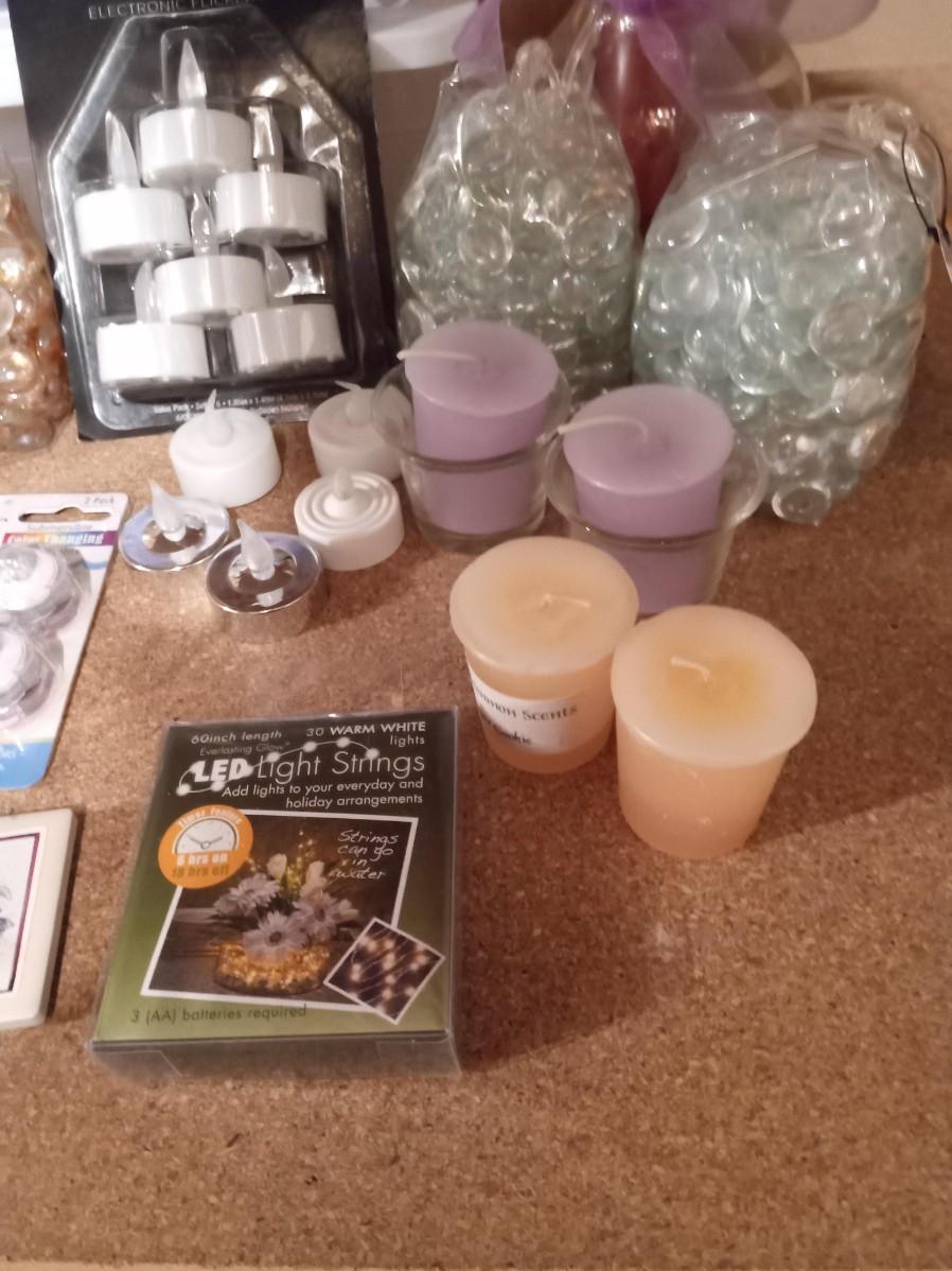 FLAMELESS AND REGULAR CANDLES, VASE MARBLES, LED PLANT LIGHTS AND MORE