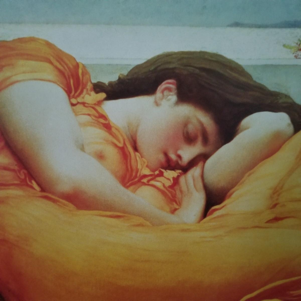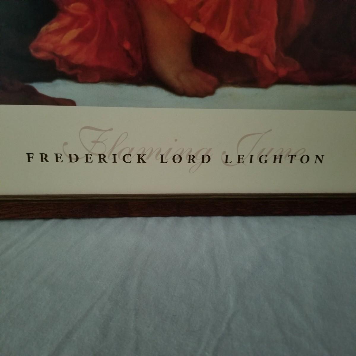 Nice litho print of lady in repose, by Frederic Lord Leighton. Art measures 28.5" x33", is in decorative wood frame. See photos for details. Shipping available. Shipping Art can be costly please call UPS store at 828-252-6930 for quote.