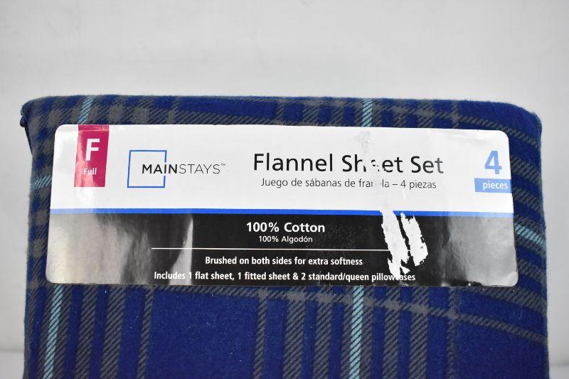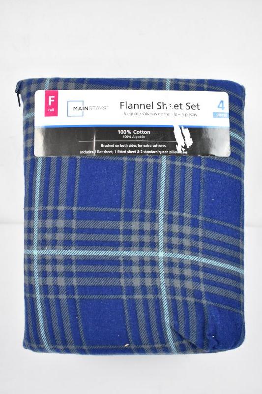 Flannel Sheet Set Full Size, 4 pieces, Navy, Gray, & Aqua - New
