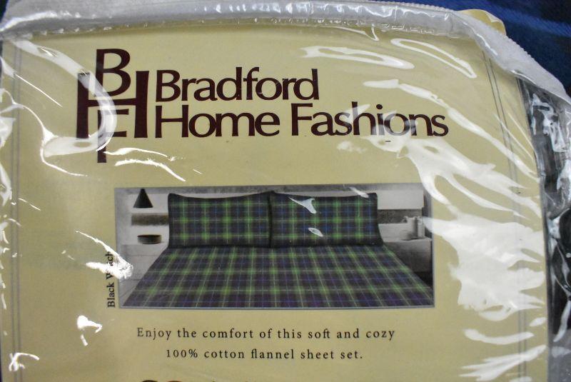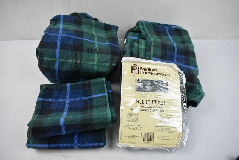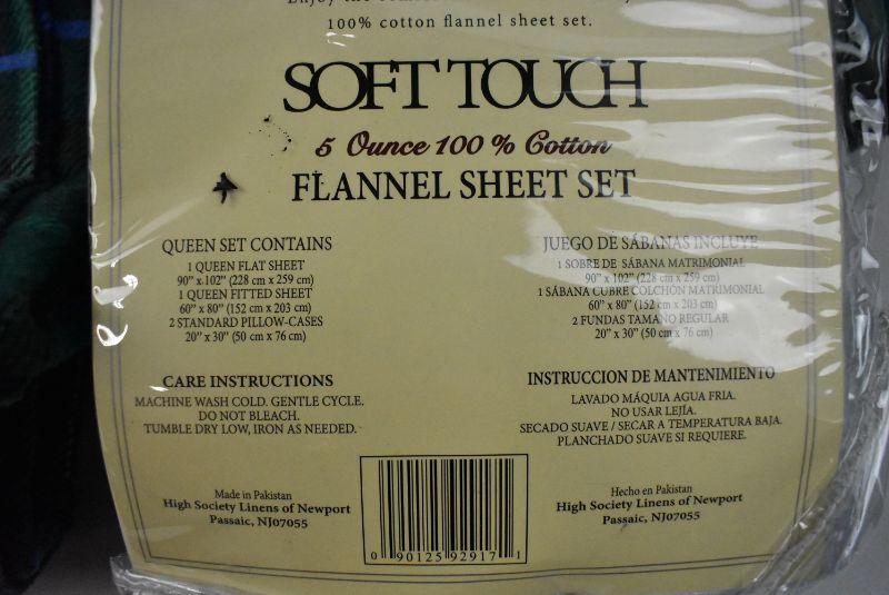 Flannel Sheet Set, Queen Size, 4 Piece, Green/Blue Plaid - Open Package