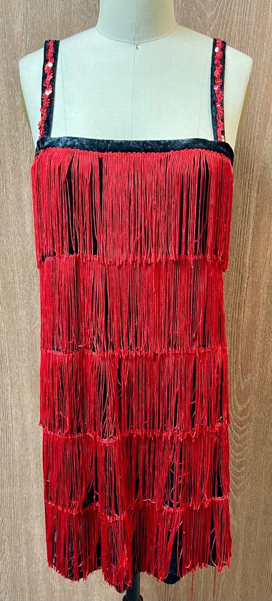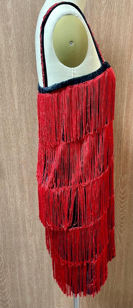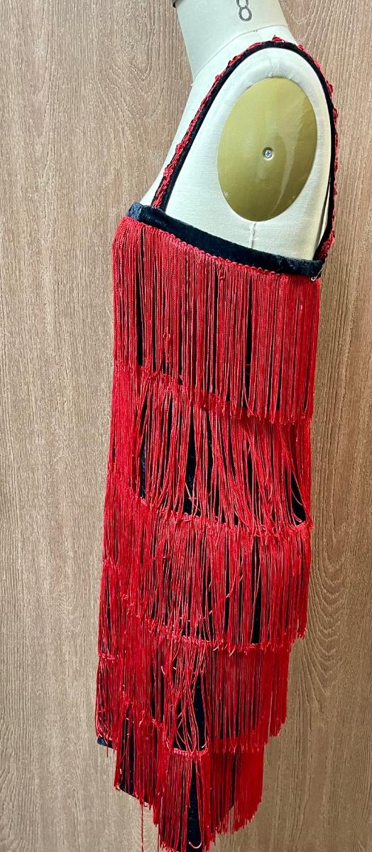 Model is a size 8 for size comparison. Dress is In fair condition. Some threads have pulled. Straps are held with safety pins.