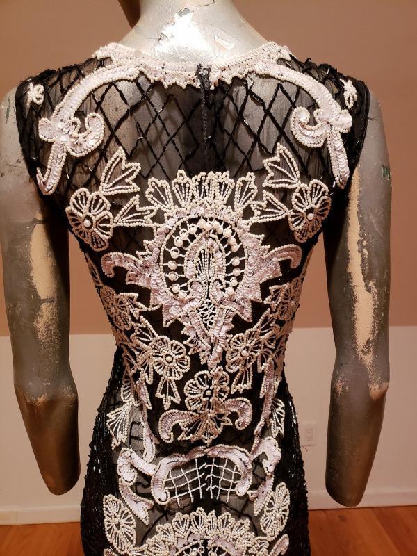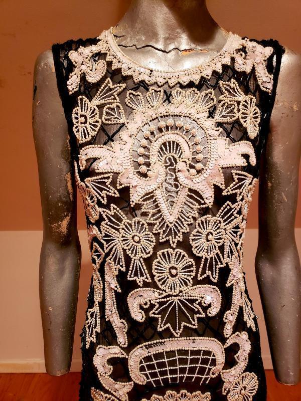 Amazing Couture beaded black and white silk Layering evening flapper dress..
