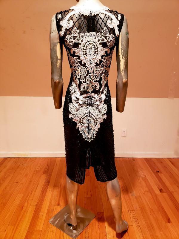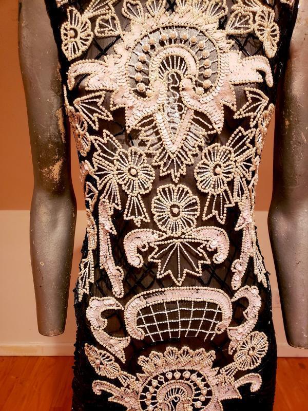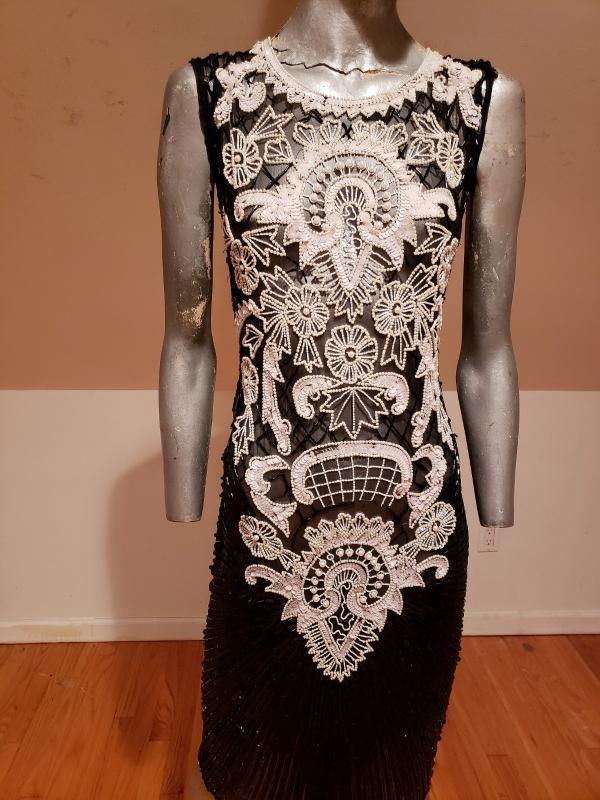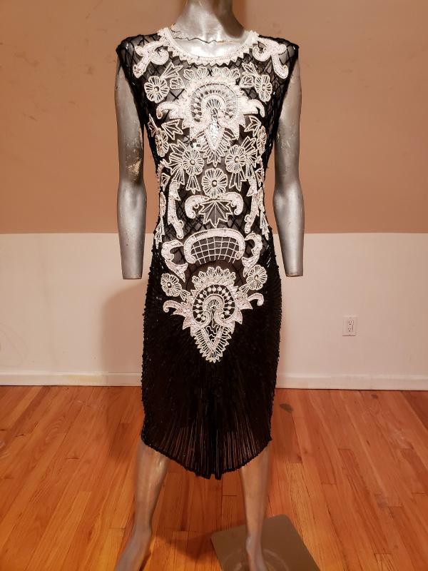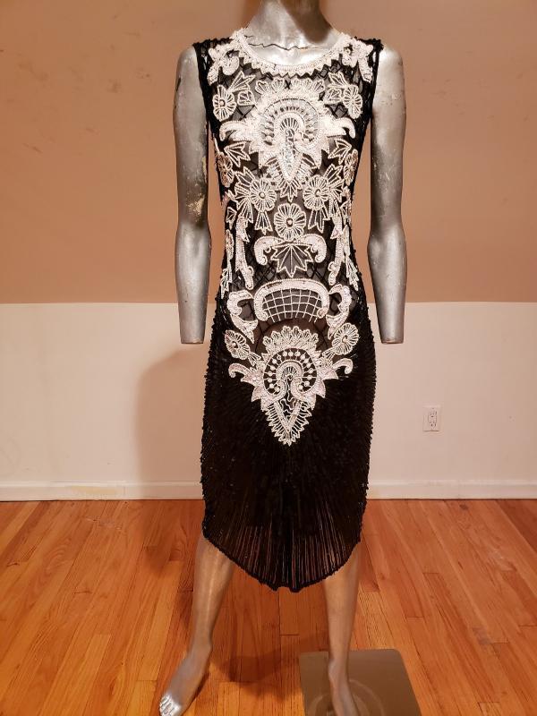 Amazing Couture beaded black and white silk Layering evening flapper dress..