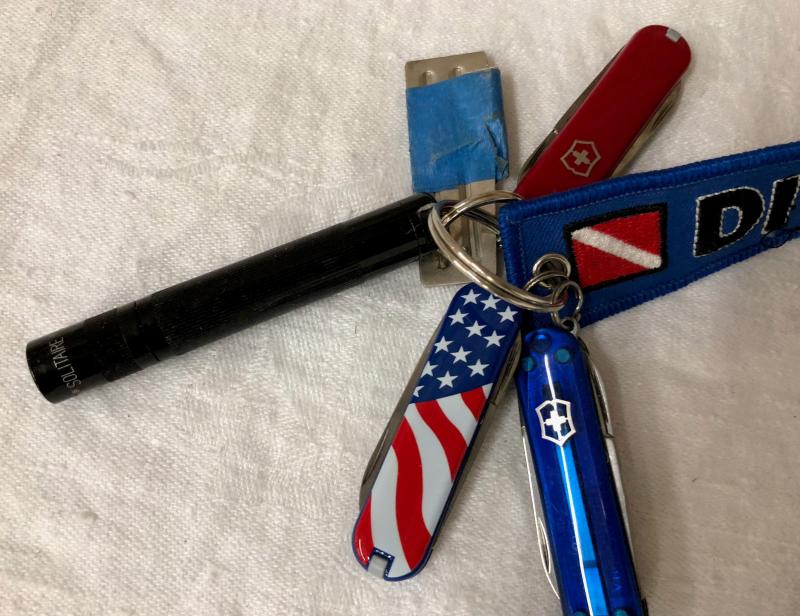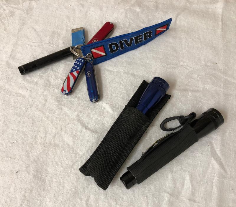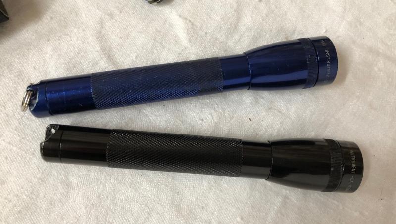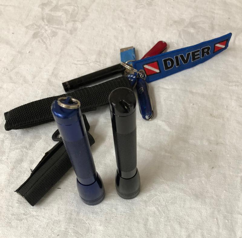 Mini Mag flashlights and Swiss Army penknives in this lot