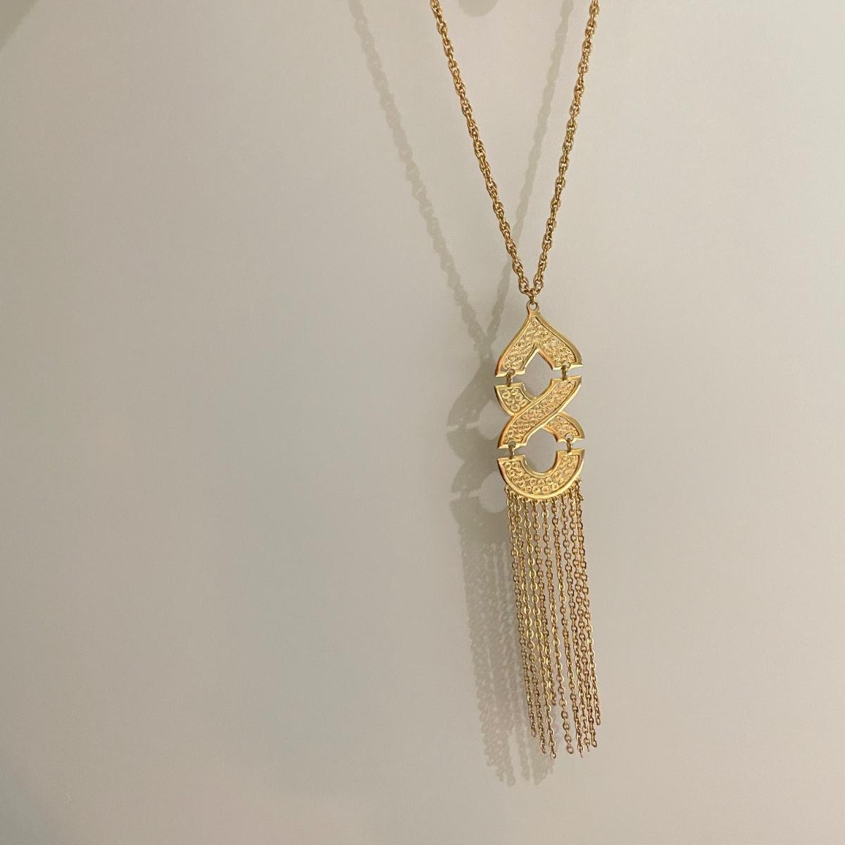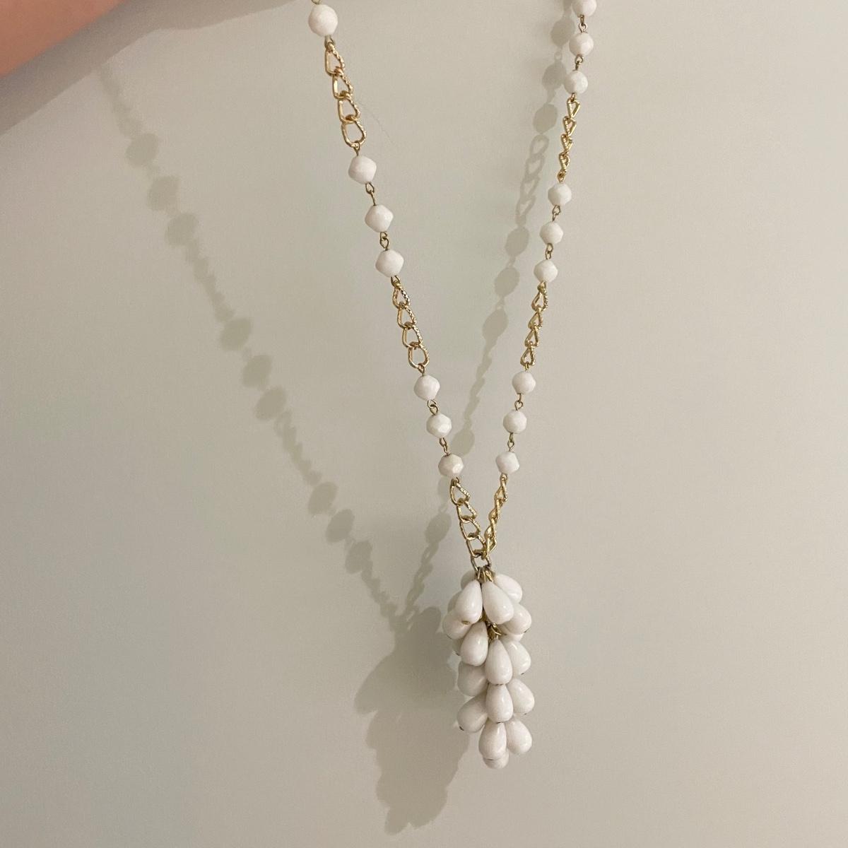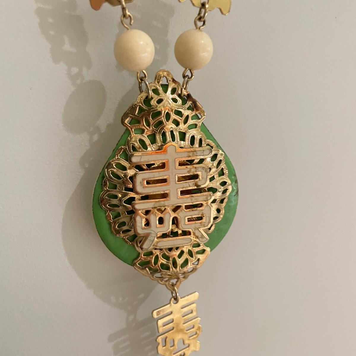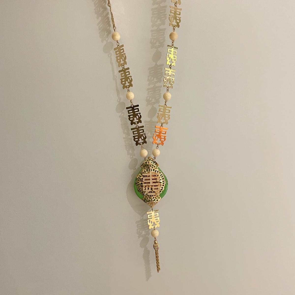 Over twenty pieces of gold fashion jewelry with beads, stones and chains. Lot includes a range of lengths in the necklaces and two bracelets. One vintage necklace with amber colored gems is missing one stone, but we’ve included a broken matching necklace to replace the missing piece. The green leafy choker appears to be made of resin. See images. Shipping available.