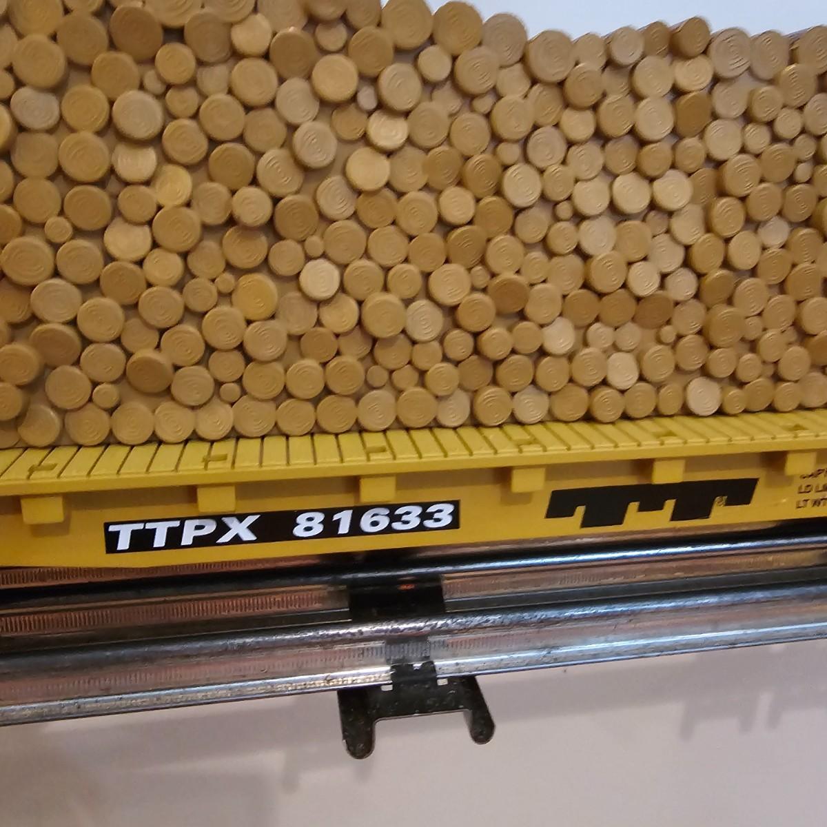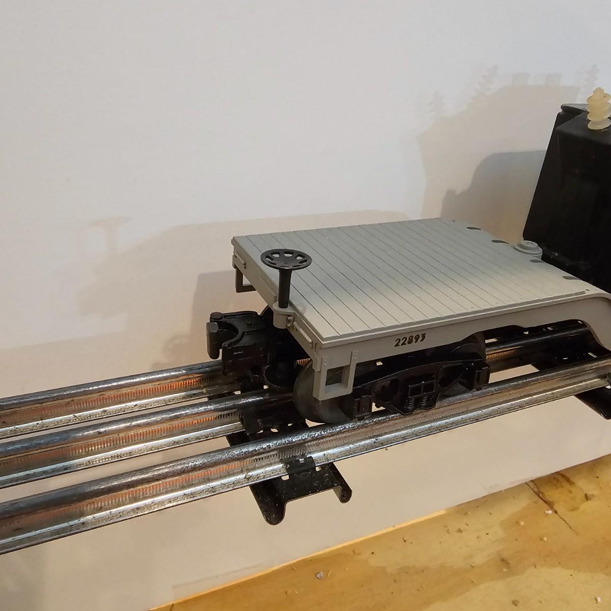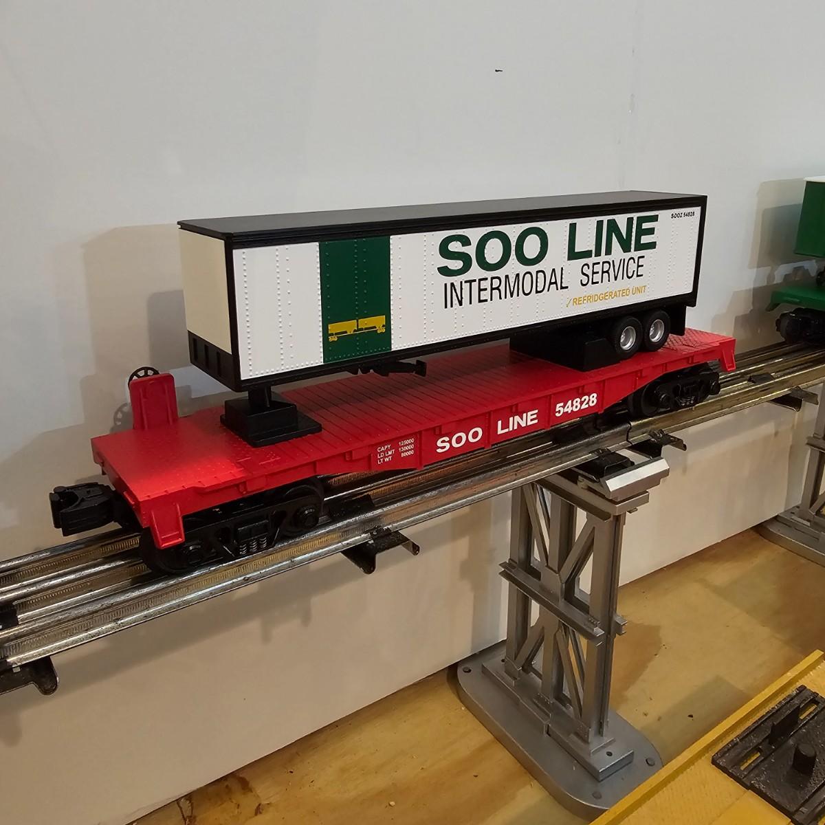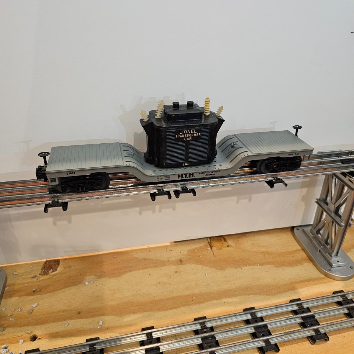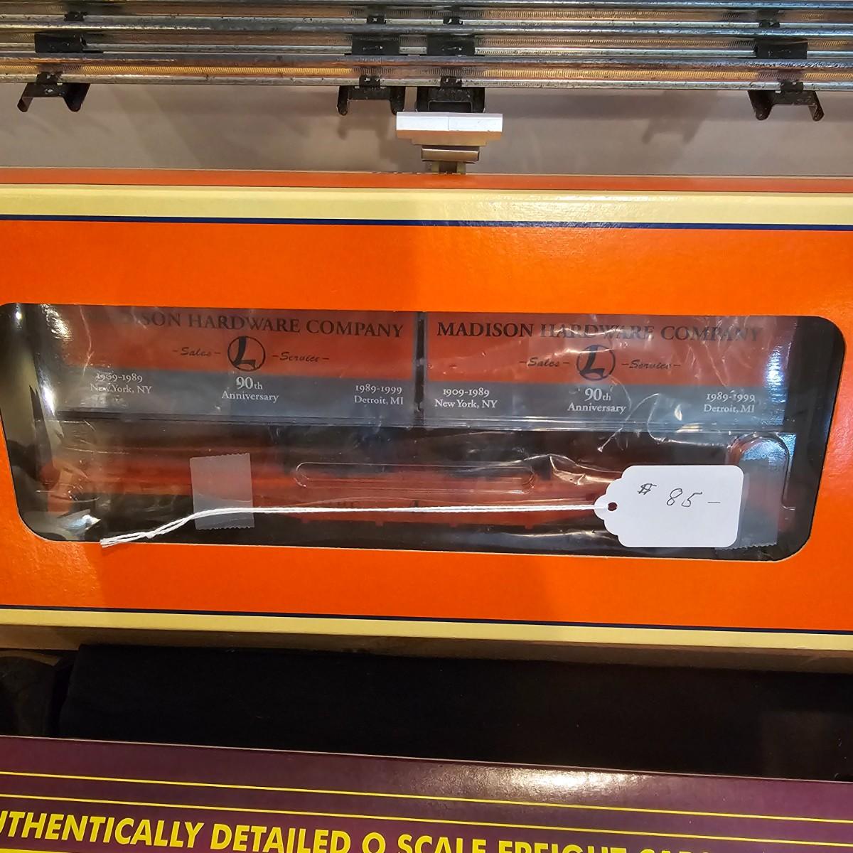 Several different styles of flatcars for specialty loads. Trailers, wood rounds, lumber, vehicles and other interesting items. Cars range from 11" to 18" in length, are all O gauge. Lionel, MTH/Rail King represented here. All but two cars have original boxes. See photos for details. Shipping available. Please note that any price tag seen on an item was not put there by Sterling Transitions and does not reflect the current value of the item. Any train tracks shown in photos are not included but are available in another lot in this sale.