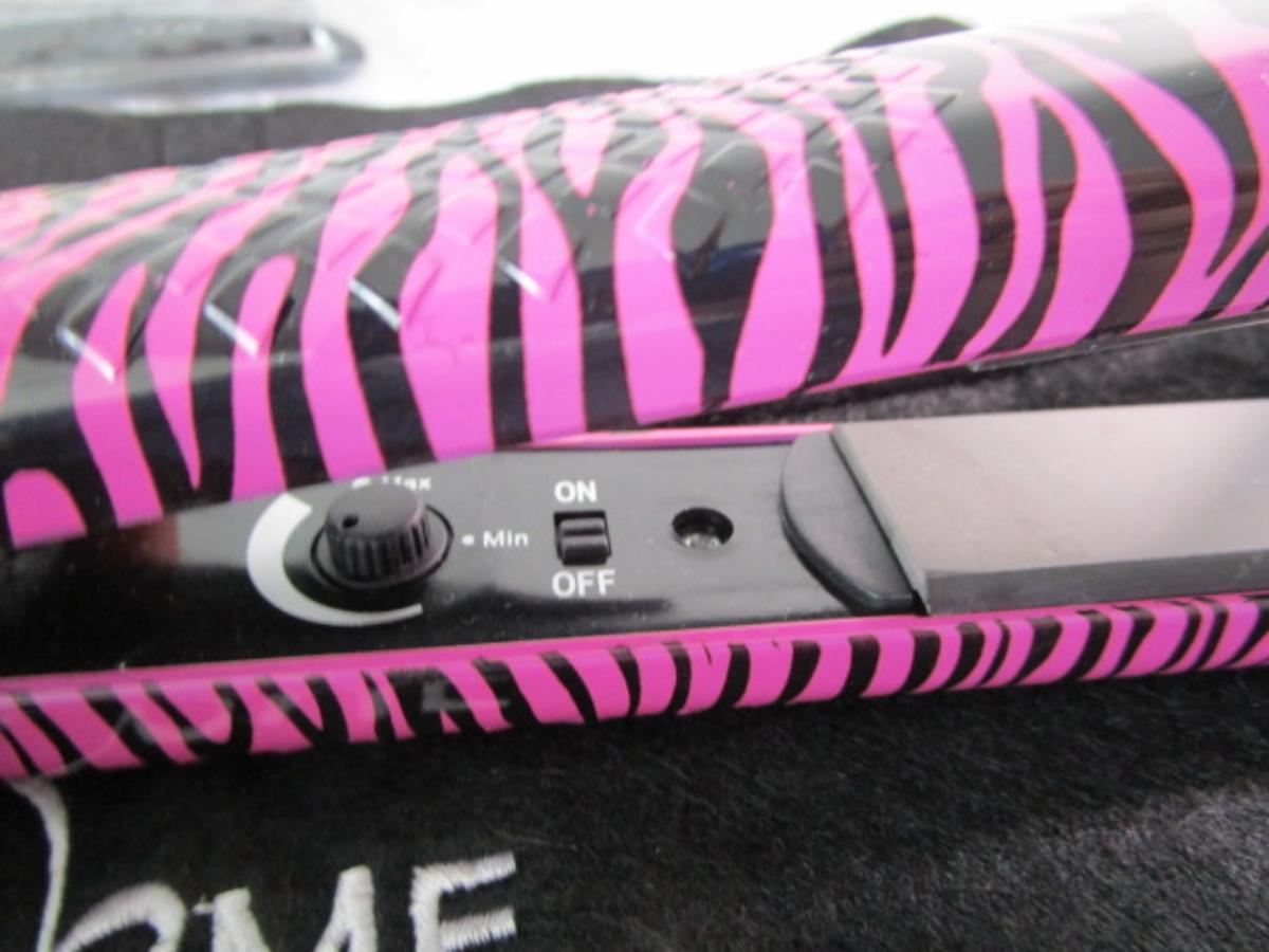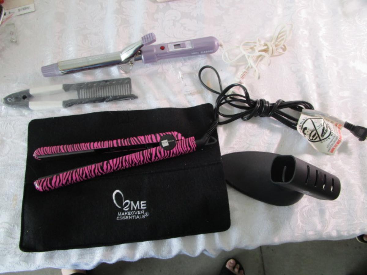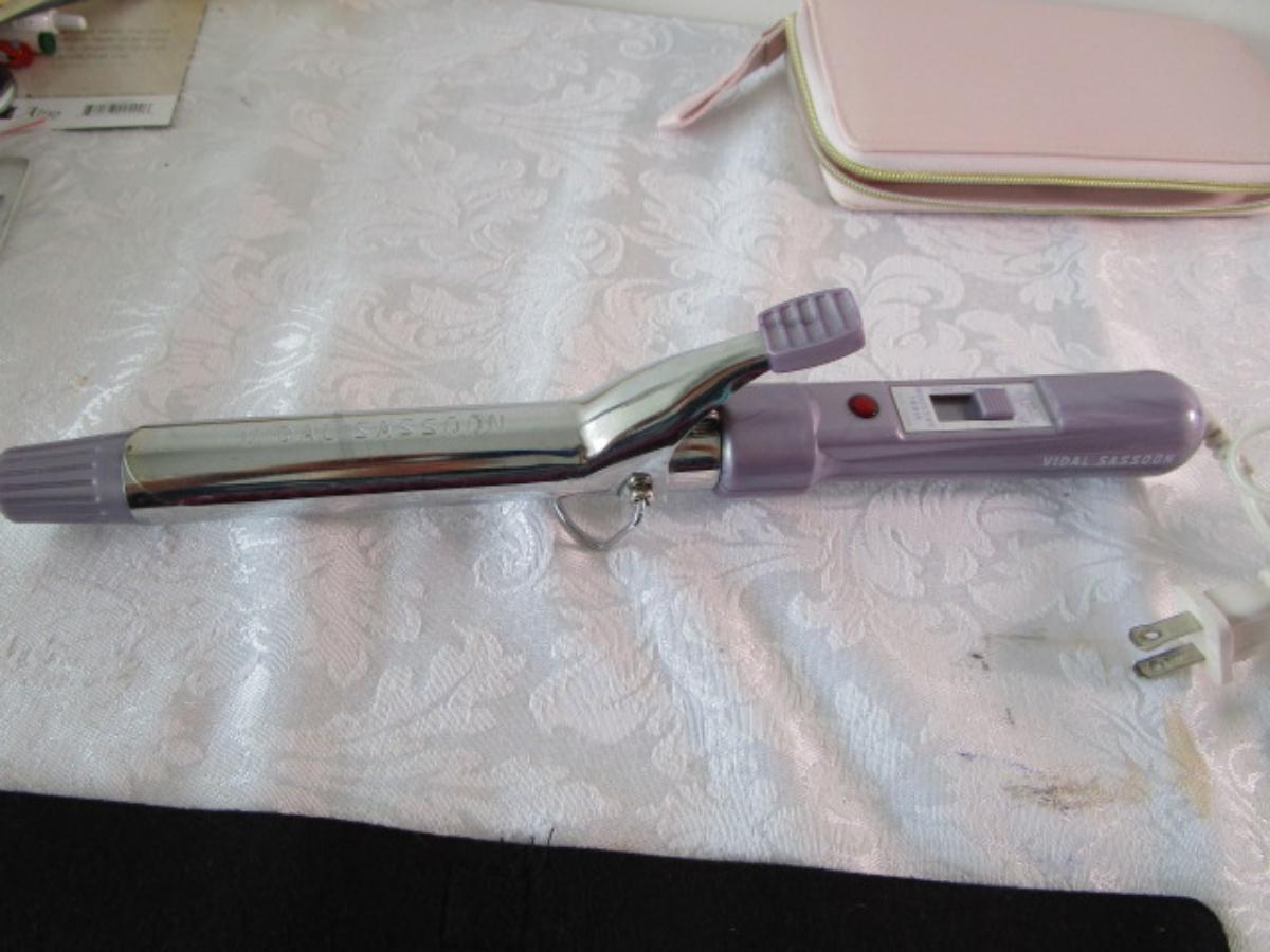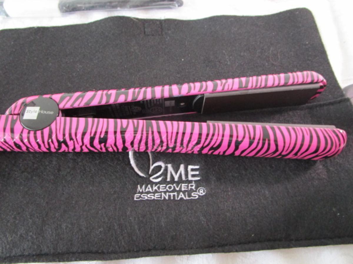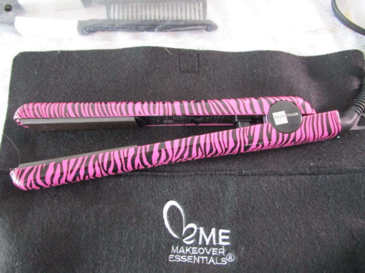 Style House flat iron Model 1645618 has pink & black tiger stripes, Vidal Sassoon curling iron Model VS122 has 1" barrel, both like new