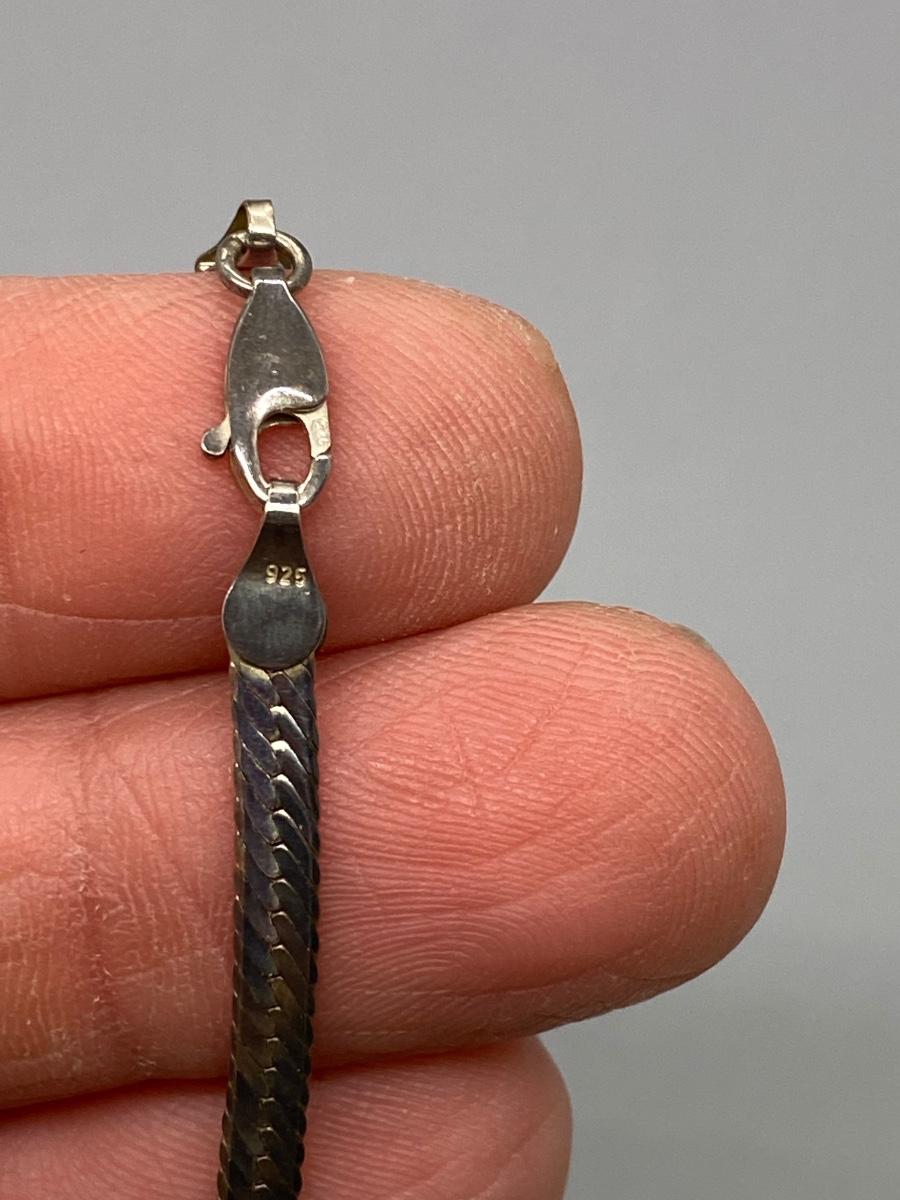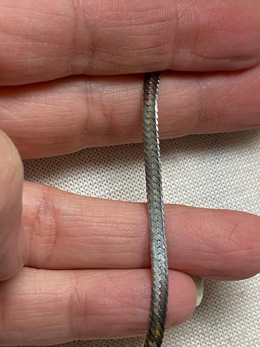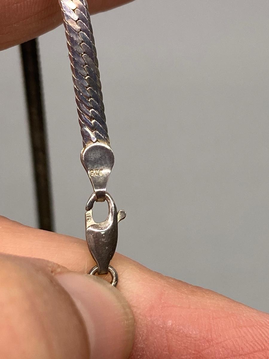 Flat link sterling silver necklace. Good condition, no kinks. About 11.5" length. Stamped 925 at the end.