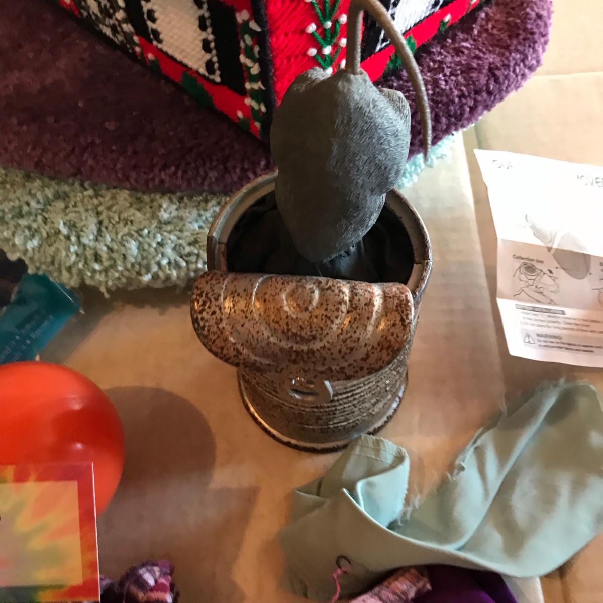 Toilet seat covers, reusable shopping bags, a toy rat in a tin can, and I cant even make the rest out!